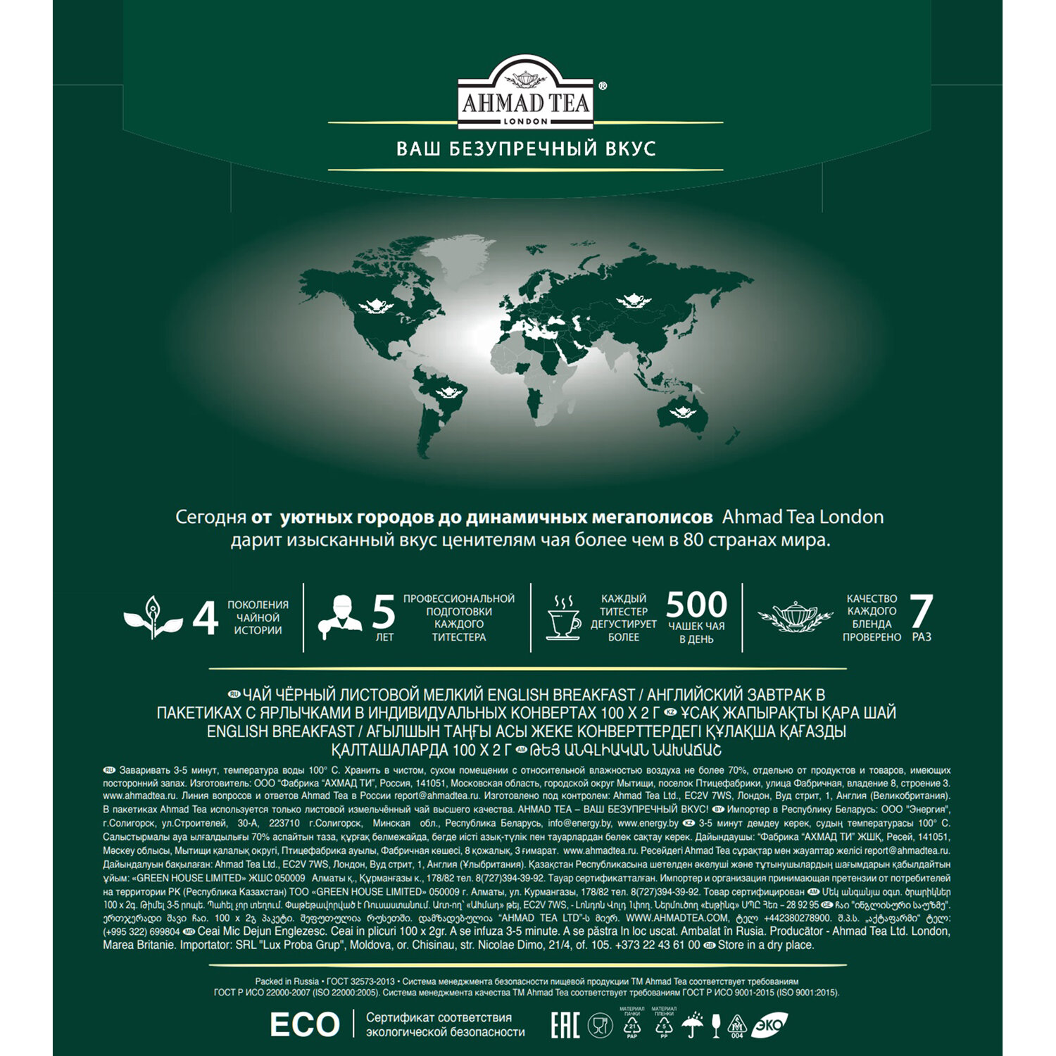 Чай AHMAD "English Breakfast" черный, 100 пакетиков в конвертах по 2 г Код товара: 620210 557,88 ₽ Купить Производитель:AHMAD Классический черный чай, отличается крепким настоем, сильным и бодрящим ароматом. Состоит из нескольких сортов чая из разных стран – ассамского, кеннийского, цейлонского. Готовый напиток хорошо сочетается с лимоном или молоком. Производство: РоссияВид чая: черныйКоличество пакетиков: 100 шт.Аромат: классическийНаличие ярлычка: даНаличие конвертика: даТип пакетика: стандартныйСерия: English BreakfastТип упаковки: картонная упаковкаСрок годности: 24 мес.Фирма-производитель: Ahmad Tea LtdСрок годности: 36 месВес: 401 грРазмер упаковки: 7.7 × 20.4 × 18.5 смОбъём: 0.0033 м3Промежуточная упаковка: 8 штТранспортная упаковка: 8 штШтрих-код: 054881006002 Файлы Сертификат-1.jpg Сертификат-2.jpg Сертификат-3.jpg Сертификат-4.jpg