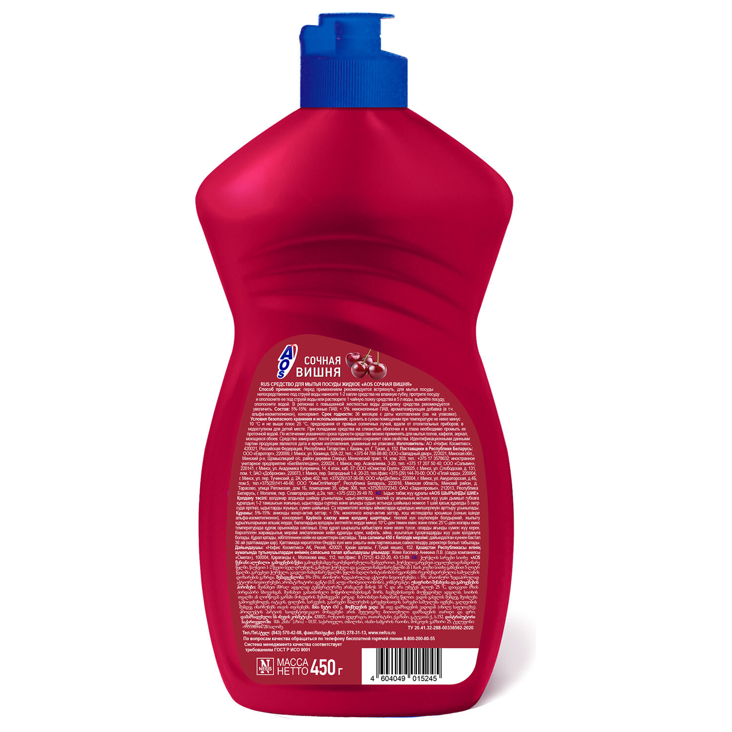 Средство для мытья посуды 450мл AOS "Сочная вишня", ш/к 15245 Код товара: 702642 130,38 ₽ Купить Производитель:AOS Средство для мытья посуды AOS Сочная вишня с алоэ вера 450 мл - отлично отмывает жир даже в холодной воде, не сушит руки. Средство для мытья посуды AOS "Сочная вишня" - современное высокоэффективное средство, которое легко справляется с жиром и сложными загрязнениями даже в холодной воде. Обновленная формула с натуральным алоэ вера и глицерином бережно заботится о коже рук, предотвращая сухость и раздражение. Эффективно отмывает жир и пригоревшие загрязнения, работает в холодной воде - экономит электроэнергию, не сушит кожу рук - содержит ухаживающие компоненты, полностью смывается с поверхности посуды, безопасный состав - не содержит хлор и агрессивные ПАВ, аромат спелой вишни - создает приятную атмосферу на кухне. Состав: 5%-15%: анионные ПАВ; < 5%: неионогенные ПАВ, ароматизирующая добавка (в т.ч. альфа-изометилионон), консервант.Производство: РоссияОбъем: 450 мл/гОтдушка: ВишняДля чувствительной кожи: даСерия: Средство для посудыОбласть применения: бытовое использованиеТип дозатора: флип-топСрок годности: 36 месВес: 484 грРазмер упаковки: 21 × 9.2 × 4.9 смОбъём: 0.001 м3Промежуточная упаковка: 20 штТранспортная упаковка: 20 штШтрих-код: 4604049015245