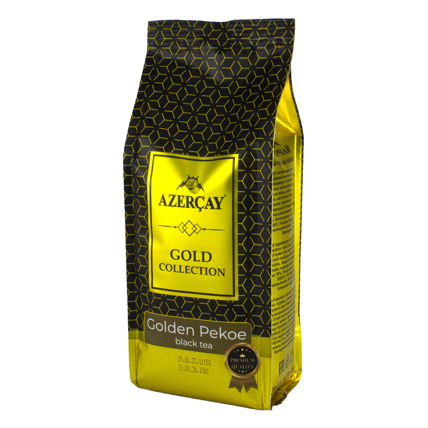 Чай листовой АЗЕРЧАЙ "Gold collection GOLDEN PEKOE" черный, 250 г Код товара: 624515 479,66 ₽ Купить Производитель:АЗЕРЧАЙ Чай черный среднелистовой АЗЕРЧАЙ "Gold collection GOLDEN PEKOE". Чай черный среднелистовой. Pekoe (английский вариант китайского слова пак хоа — молодые листья) – образец черного листового чая для европейцев. Чем меньше размер чайных листочков, тем лучше и быстрее чай заваривается, а это значит, что напиток будет крепче, напиток темнее, кофеина больше. АЗЕРЧАЙ "Gold collection" – лучшие купажи классического чая для правильного, душевного чаепития. Невозможно представить себе чайную культуру Востока без крепкого черного чая, бергамота и чабреца, без зеленого чая в летнюю жару, без аромата жасмина и обжигающей строгости имбиря. Способ приготовления: в сухой разогретый чайник насыпать чай из расчета 2 чайные ложки на 200 мл воды, залить свежим кипятком и дать настояться 5-6 минут. Хранить в сухом помещении отдельно от пахучих веществ при относительной влажности воздуха не более 70%.Производство: РоссияВид чая: листовойСерия: Золотая коллекцияАромат: классическийМасса нетто: 250 гУпаковка: мягкая упаковкаСрок годности: 36 мес.Фирма-производитель: Кубань-ТиСрок годности: 36 месВес: 269 грРазмер упаковки: 6.2 × 18.5 × 9.2 смОбъём: 0.0011 м3Промежуточная упаковка: 24 штТранспортная упаковка: 24 штШтрих-код: 4610092761602 Файлы Сертификат-1.jpg Сертификат-2.jpg Сертификат-3.jpg Сертификат-4.jpg