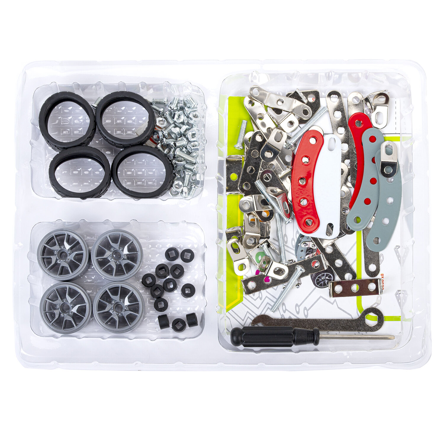 Конструктор металлический "Гоночный болид", с подвижными деталями, 146 элементов, BAMBOX (БАМБОКС) Код товара: 666365 442,43 ₽ Купить Производитель:BAMBOX Металлический конструктор BAMBOX "Гоночный болид" – развивающая игрушка для детей старше 8 лет. Конструктор идеально подходит для занятий на уроках труда и комплексного развития ребёнка. Каждый элемент металлического конструктора BAMBOX "Гоночный болид" продуман до мелочей. Круглые отверстия упрощают соединение деталей, а набор инструментов позволяет надежно закрепить их винтами и гайками. С помощью этого набора юный конструктор сможет не только собрать модель гоночного болида, но и начать постигать основы механики и техники. Это отличный способ развить креативность и научиться решать задачи, требующие логического мышления. Комплектация набора: 146 деталей, гаечный ключ, отвертка, пошаговая инструкция по сборке. Конструктор предназначен для детей старше 8 лет.Производство: КитайТип товара: конструкторСерия: Для уроков трудаМатериал: металл, пластикНаличие подвижных деталей: даУровень сложности сборки: среднийРекомендуемый возраст: от 8 летТип деталей: разные формыСюжет: ТранспортКоличество элементов: 146 шт.Количество моделей для сборки: 1Комплектация: 1 отвертка, инструкция по сборкеЦвет: разноцветныйУпаковка: картонная коробкаВес: 322 грРазмер упаковки: 4.1 × 24.8 × 18.3 смОбъём: 0.0021 м3Промежуточная упаковка: 36 штТранспортная упаковка: 36 штШтрих-код: 4606224509617 Сертификат-1.jpg Сертификат-2.jpg