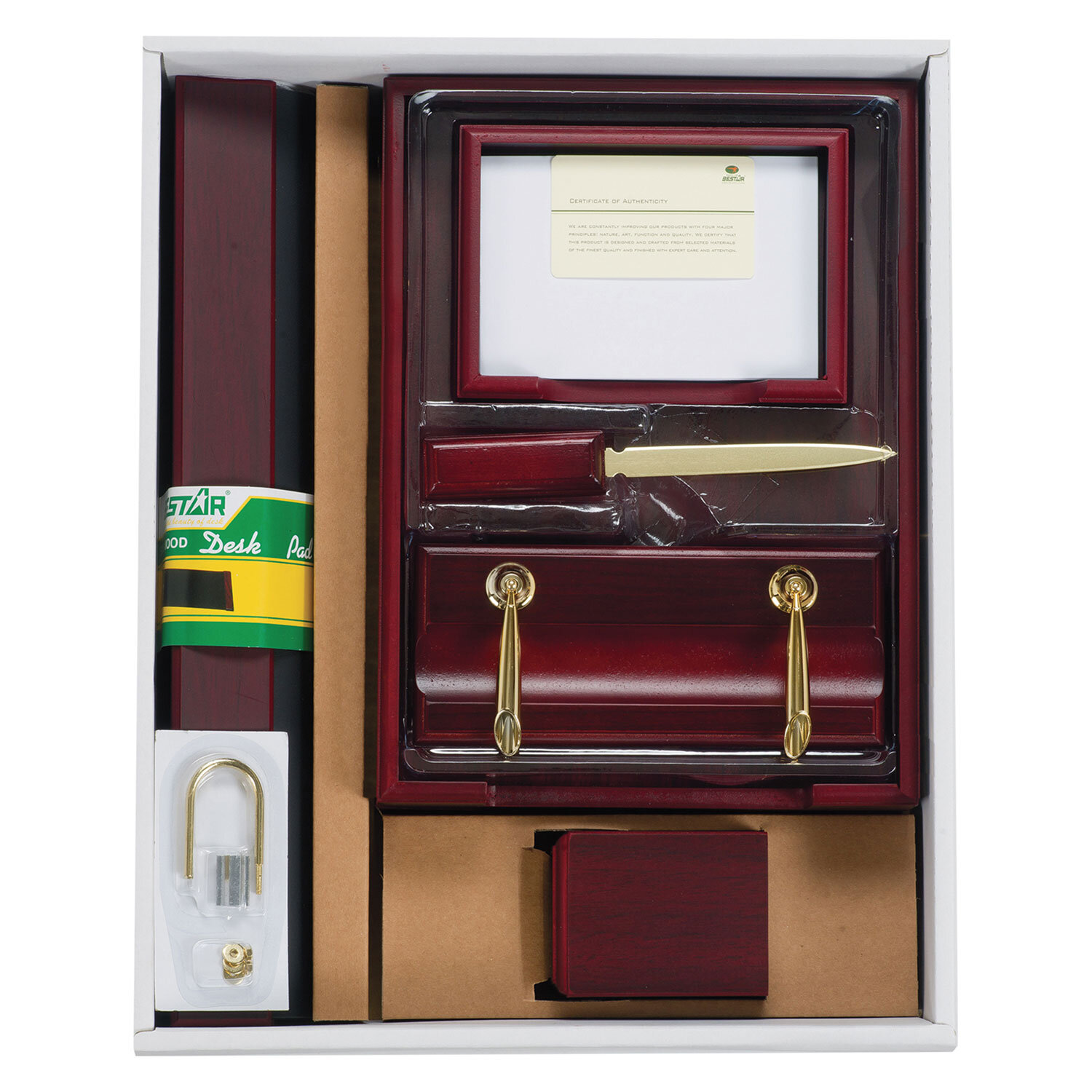 Набор подарочный настольный BESTAR "Ares" из дерева, 7 предметов, цвет "красное дерево" Код товара: 236355 14 068,1 ₽ Купить Производитель:BESTAR Настольный набор премиум-класса BESTAR "Ares" – оригинальный подарок, отличающийся утонченным стилем и совершенством деталей. Набор состоит из 7 универсальных предметов: - коврик для письма (размер – 60х42 см) - двойной лоток (для бумаг формата А4); - подставка для ручек (2 шариковые ручки в комплекте); - стакан-подставка для письменных принадлежностей и канцелярских мелочей; - нож для вскрытия конвертов; - подставка под листы для записей (листы в комплекте); - подставка для перекидного календаря. Все предметы изготовлены из дерева в красном цвете с золотистой фурнитурой. Набор упакован в подарочную коробку, а также дополнительно в защитный гофрокорб для транспортировки. Представленный комплект относится к премиальному ценовому сегменту.Производство: Тайвань (Китай)Серия: AresЦвет: красное деревоКоличество предметов: 7 шт.Тип лотка: двойнойМатериал: МДФФирменная подарочная коробка: даСрок годности: 60 месВес: 4,06 кгРазмер упаковки: 13.1 × 50.8 × 38.4 смОбъём: 0.0285 м3Промежуточная упаковка: 4 штТранспортная упаковка: 4 штШтрих-код: 4710899272599 Файлы Сертификат-1.jpg Сертификат-2.jpg Сертификат-3.jpg Сертификат-4.jpg Сертификат-5.jpg Сертификат-6.jpg Сертификат-7.jpg Сертификат-8.jpg Сертификат-9.jpg Сертификат-10.jpg Сертификат-11.jpg Сертификат-12.jpg Сертификат-13.jpg Сертификат-14.jpg Сертификат-15.jpg Сертификат-16.jpg Сертификат-17.jpg Сертификат-18.jpg Сертификат-19.jpg Сертификат-20.jpg