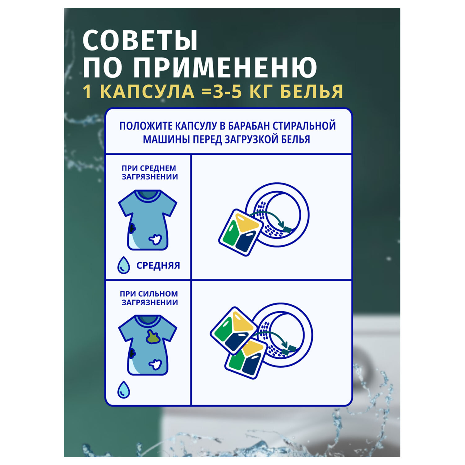 Капсулы для стирки белья 12шт BIMAX ЭКО "100 пятен" бумажная коробка, ш/к 03768 Код товара: 702638 315,62 ₽ Купить Производитель:BIMAX Средство для стирки BIMAX ЭКО "100 пятен" для белого и цветного белья отлично удаляет пятна, сохраняя яркость вещей и свежесть надолго. Для безупречного результата стирки. Капсулы для стирки BiMax Эко 100 пятен 156 г (12 штук в упаковке). Назначение: предназначены для стирки белых и цветных изделий из хлопчатобумажных, льняных и синтетических тканей, а так же тканей смешанных волокон в стиральных машинах любого типа. Не предназначено для изделий из шерсти и натурального шелка. Способ применения: положите капсулу на дно барабана стиральной машины. Положите одежду. Меры предосторожности: не глотать. При попадании в глаза немедленно промыть проточной водой. При повышенной чувствительности и повреждениях кожи избегать длительного контакта со средством. Состав: 15% или более, но менее 30%: анионные ПАВ, неионогенные ПАВ; 5% или более, но менее 15%: мыло (соли жирных кислот); менее 5%: ароматизирующая добавка (в т. ч. гераниол, линалоол, гексилциннамаль, лимонен, бутилфенил метилпропиональ), энзимы, фосфонаты, оптический отбеливатель, консервант, красители.Производство: РоссияТип: автоматВес/Объем: 156 г/млВид средства: капсулыНазначение : для всех видов тканей, кроме шерсти и шелкаОтдушка: СвежестьКоличество капсул/стиков: 12 шт.Количество бункеров: 3 шт.Серия: CAPSВид упаковки: бумажная коробкаСрок годности: 36 месВес: 221 грРазмер упаковки: 11 × 19.5 × 9 смОбъём: 0.0026 м3Промежуточная упаковка: 4 штТранспортная упаковка: 4 штШтрих-код: 4604049103768