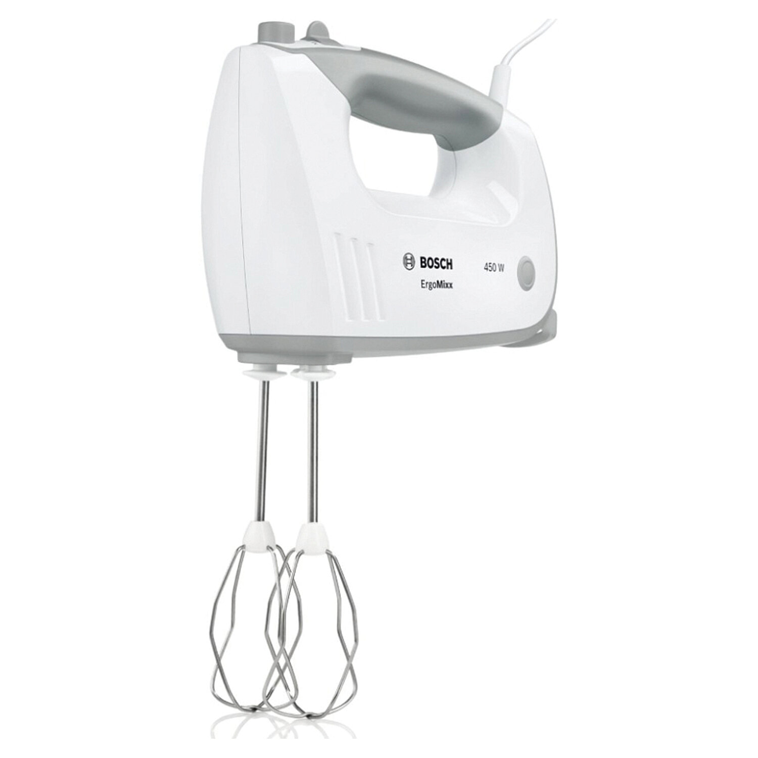 Миксер BOSCH MFQ 36480, 450 Вт, 5 скоростей, 6 насадок, стакан, белый Код товара: 458583 9 600 ₽ Купить Производитель:BOSCH Создайте идеальные условия для кулинарного творчества с миксером BOSCH MFQ 36480 – мощным, эргономичным и многофункциональным помощником на вашей кухне! Эта модель из серии ErgoMixx оснащена 5 скоростями вращения, турборежимом и комплектом из 6 насадок, что делает её универсальным решением для взбивания, замеса теста и измельчения продуктов. Миксер легко справляется с задачами любой сложности: - 2 венчика – для воздушных кремов, белковых масс и соусов; - 2 крюка для теста подходят для замешивания как жидкого, так и плотного теста; - погружной блендер с ножкой из нержавеющей стали справится с овощами, фруктами и даже льдом; - измельчитель с мерным стаканом позволяет готовить пюре, коктейли и другие смеси с точными пропорциями. Устройство имеет эргономичную форму с покрытием Soft-Touch, что обеспечивает комфортный хват и устойчивость при работе. Управление осуществляется через кнопку выбора скорости и удобную систему отсоединения насадок, а благодаря шнуру длиной 1,3 м, вы сможете свободно перемещаться по кухне. Корпус выполнен из прочного пластика, а все детали рассчитаны на долгий срок службы. Габариты устройства: 20,8х7.4х15,4 см, вес – 1,6 кг, что делает его удобным в использовании и хранении. Мощность 450 Вт обеспечивает стабильную работу даже с плотными смесями. Производитель оставляет за собой право без предварительного уведомления вносить изменения в технические характеристики, комплектацию и конструкцию, не ухудшающие эксплуатационные характеристики изделия.Производство: СловенияТип миксера: ручнойМощность: 450 ВтКоличество скоростей: 5Импульсный режим: даТурборежим: даКоличество насадок: 6 шт.Серия: ErgoMixxКомплектация: венчики, крюки для теста, кувшин-измельчитель, мерный стакан, насадка для замеса густого теста, насадка-измельчительМатериал чаши: пластикМатериал корпуса: пластикЦвет корпуса: белый/серыйДлина шнура: 1.3 мВысота: 15.4 смШирина: 7.4 смГлубина: 20.8 смВес: 1.6 кгРазмер упаковки: 17.4 × 31.5 × 23.8 смОбъём: 0.013 м3Промежуточная упаковка: 1 штТранспортная упаковка: 1 штШтрих-код: 4242005171699 Приложение-1.pdf Сертификат-1.jpg Сертификат-2.jpg
