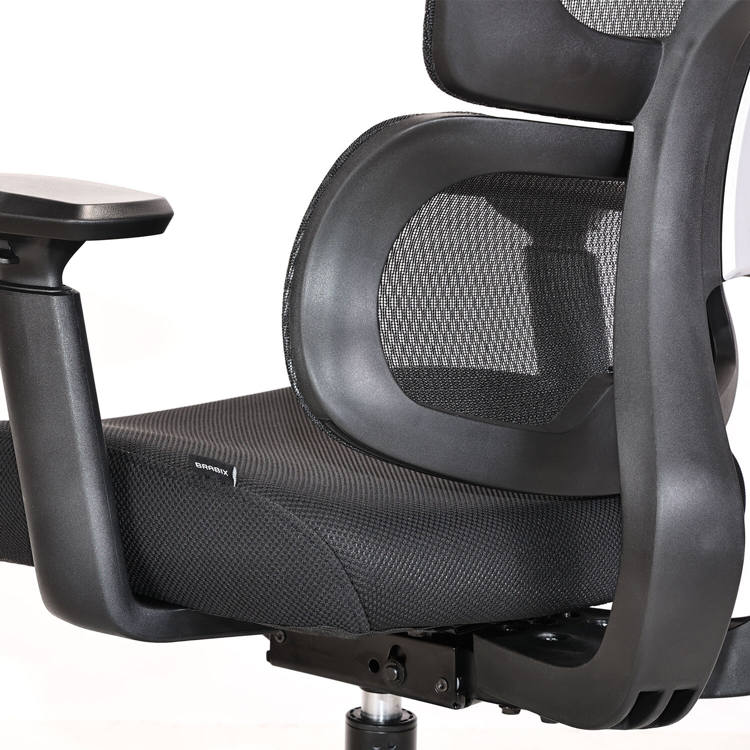 Кресло BRABIX PREMIUM "Veyron ER-703", адаптивный механизм, регулируемый подголовник, сетка/ткань, черное Код товара: 532966 17 289 ₽ Купить Производитель:BRABIX Кресло компьютерное BRABIX PREMIUM "Veyron ER-70" – идеальный выбор для ценителей комфорта и стиля. Современный дизайн гармонично вписывается в любое пространство. Использование материалов высокого качества обеспечивает долговечность и надежность изделия. Кресло выполнено из материалов высокого качества. Обивка спинки и подголовника изготовлена из сверхпрочной сетки, которая легко чистится и долго сохраняет привлекательный внешний вид. Обивка сиденья из ткани приятна на ощупь и устойчива к износу. Эргономичный дизайн разработан с заботой о вашем здоровье. Регулируемые подголовник и подвижная поясничная поддержка обеспечат оптимальное положение корпуса, способствуя снижению напряжения в области шеи и спины. В основании – надежное пластиковое пятилучие и газлифт 3 класса. Максимальная нагрузка – 125 кг.Производство: КитайМатериал обивки: сетка/тканьМаксимальная нагрузка: 125 кгЦвет обивки: черныйТип механизма кресла: "Synchro" - синхронное отклонение сиденья и спинки в соотношении 1:3, фиксация в нескольких положенияхСетчатая спинка: даКрестовина (пятилучие): пластик черныйПодлокотники: пластик черныйМинимальная высота кресла: 1170 ммМаксимальная высота кресла: 1270 ммШирина кресла: 700 ммМинимальная высота до сиденья: 440 ммМаксимальная высота до сиденья: 540 ммСиденье ширина: 500 ммСиденье глубина: 430 ммСпинка ширина: 500 ммСпинка высота: 570 ммСерия: VeyronСоответствует требованиям ГОСТа: нетПоставляется в разобранном виде: даВес: 18,16 кгРазмер упаковки: 65.9 × 76.3 × 41.4 смОбъём: 0.2082 м3Промежуточная упаковка: 1 штТранспортная упаковка: 1 штШтрих-код: 4606224449494 Файлы Приложение-1.pdf Сертификат-1.jpg Сертификат-2.jpg Сертификат-3.jpg Сертификат-4.jpg