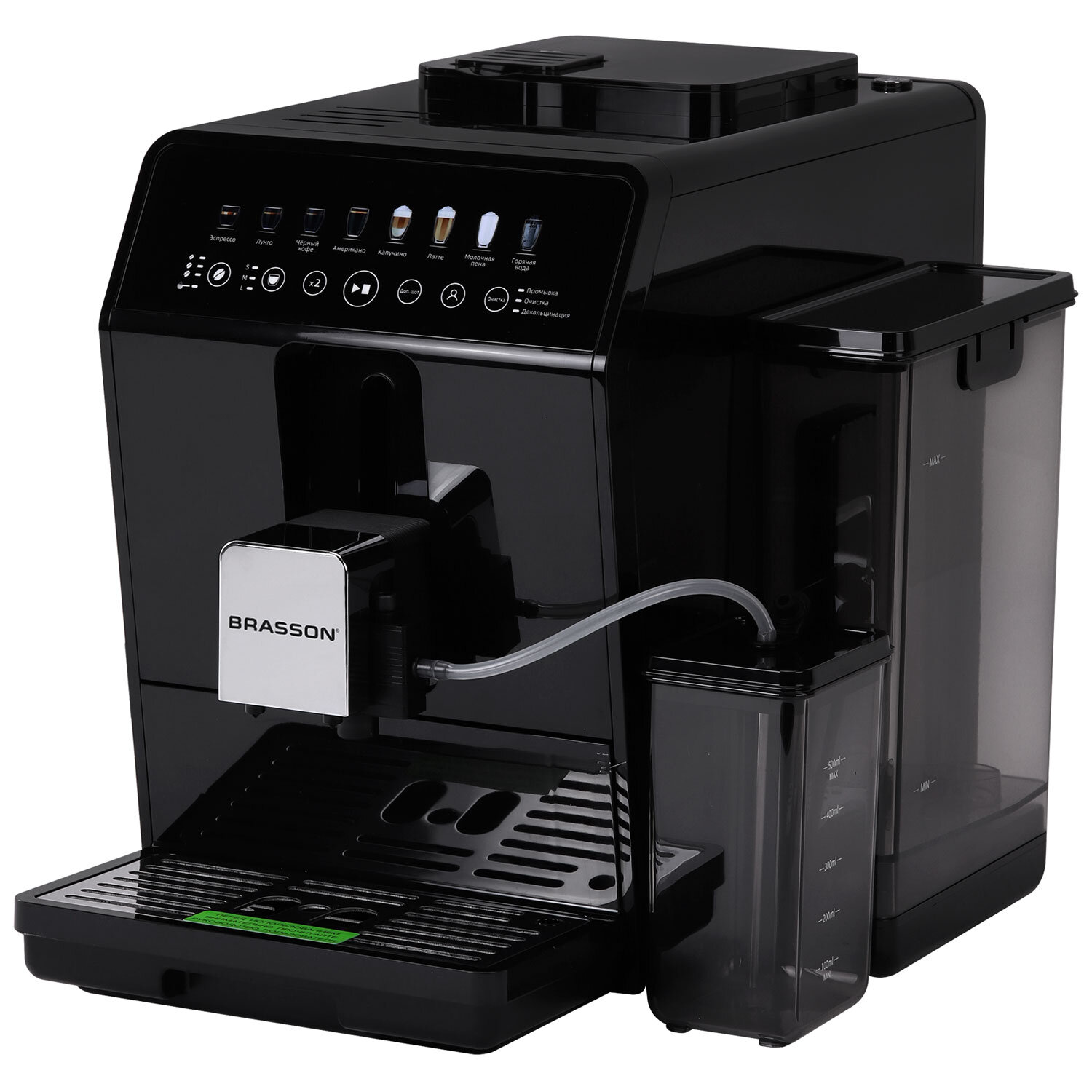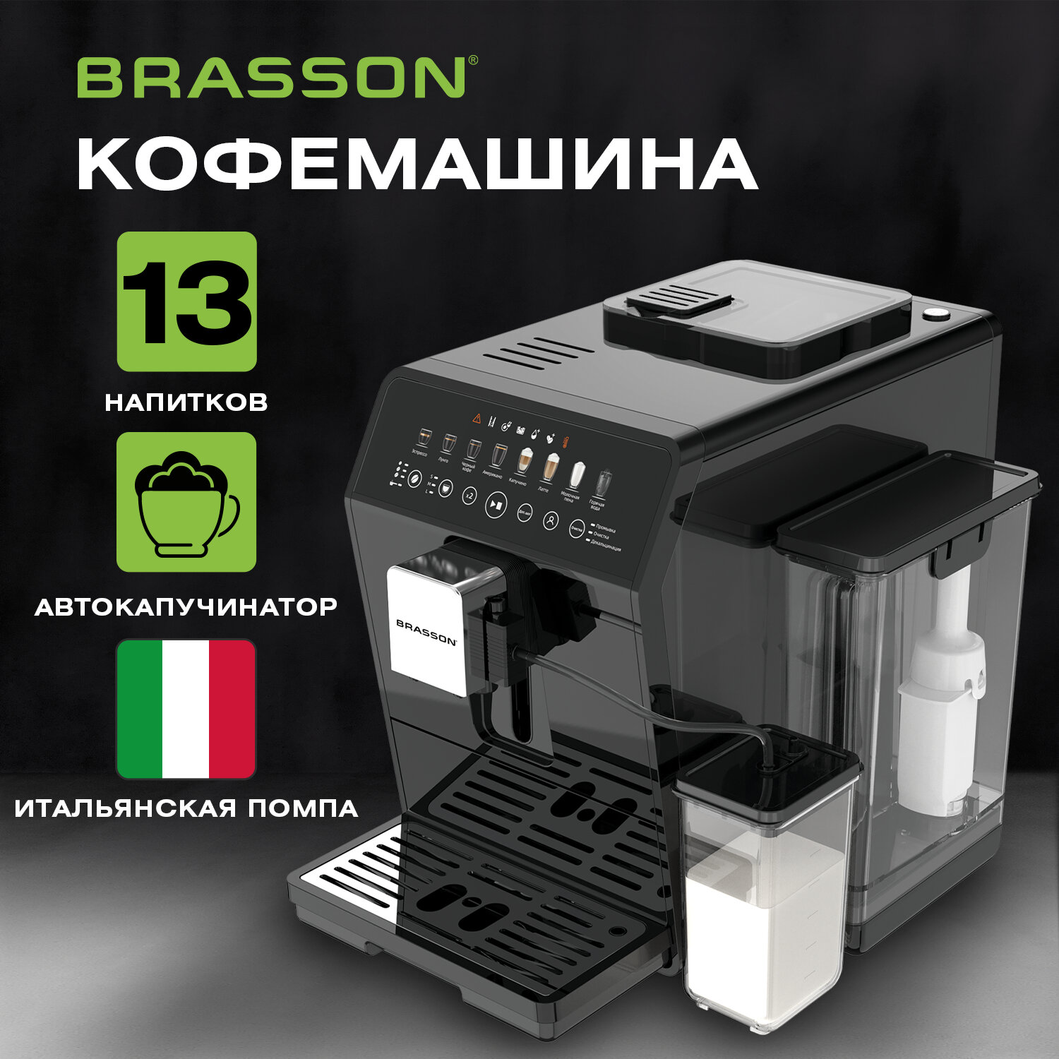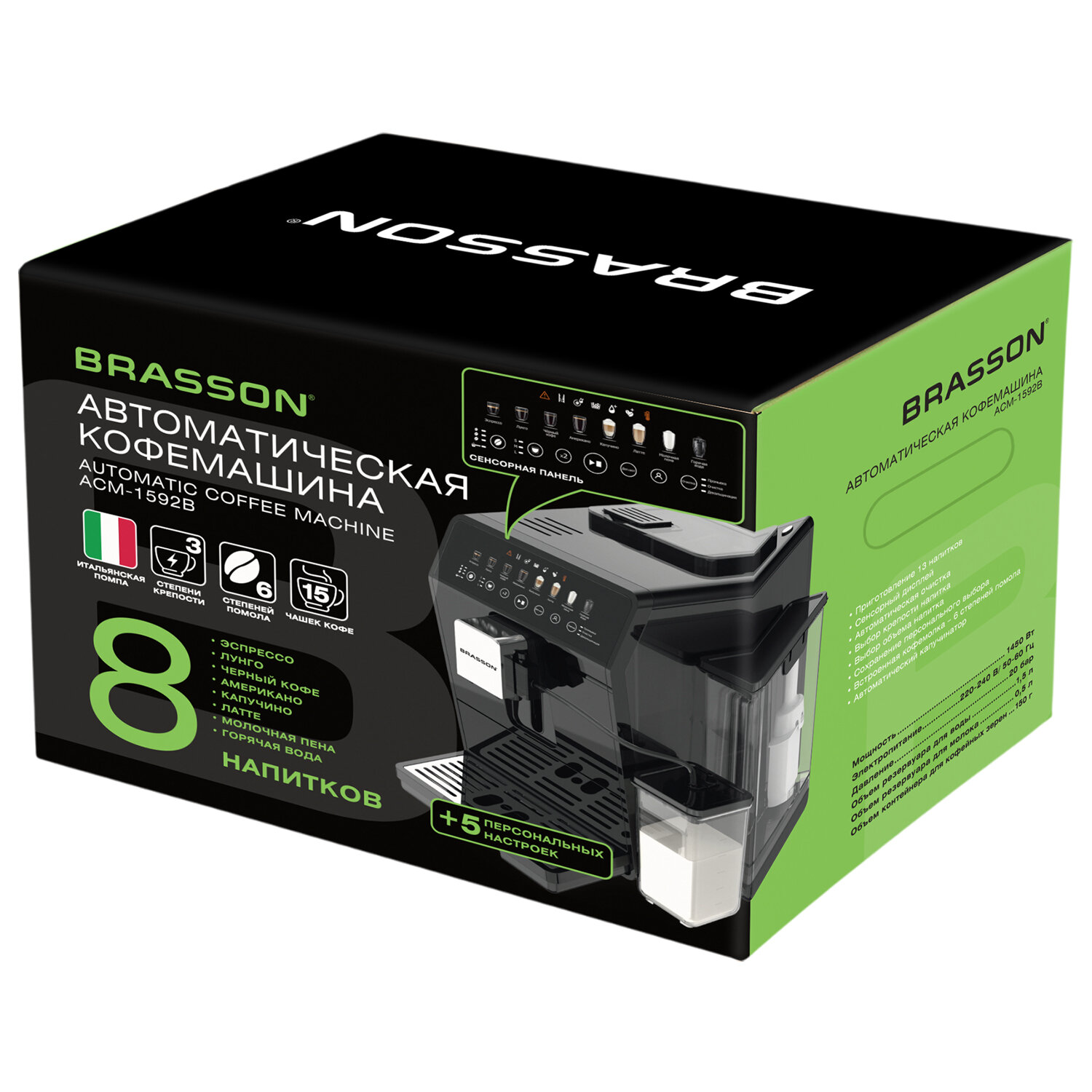 Кофемашина автоматическая BRASSON (БРАССОН) ACM-1592B, дисплей, капучинатор, 13 напитков, 1450 Вт, 20 бар Код товара: 457887 32 275,84 ₽ Купить Производитель:BRASSON Кофемашина BRASSON ACM-1592B превращает процесс приготовления идеального напитка в простое и приятное занятие. Представьте себе профессиональную кофейню прямо у вас дома, где каждое утро начинается с чашки свежесваренного кофе. С помощью нашей кофемашины вы можете приготовить 8 напитков: эспрессо, американо, латте, капучино, лунго, черный кофе, молочную пену и горячую воду. Также вы можете сохранить 5 персональных напитков в зависимости от сохраненных настроек. В кофемашине есть выбор крепости и объема напитка, а также вы можете добавлять дополнительный шот в напитки с молоком или готовить двойной эспрессо. Мощность 1450 Вт является оптимальным показателем для современной автоматической кофемашины. Благодаря этому кофемашина обеспечивает быстрый нагрев воды, стабильное давление в системе и качественное приготовление кофе. Давление 20 бар является идеальным для приготовления эспрессо, обеспечивает интенсивную экстракцию кофе. Качественная итальянская помпа помогает достичь насыщенного аромата и вкуса кофе, густой и стойкой пены, а также улучшенную текстуру напитка. Кофемашина имеет встроенную жерновую кофемолку с 6 степенями помола, с помощью которой можно выбрать идеальную настройку для различных сортов кофе. Также возможно приготовление напитка из молотого кофе. Кофемашина управляется интуитивно понятным сенсорным дисплеем. Изделие имеет автоматический капучинатор, который создает воздушную молочную пену. В комплекте поставляется фильтр для воды.Производство: КитайМощность: 1450 ВтДавление: 20 БарЕмкость резервуара для воды: 1.5 лЕмкость резервуара для зерен: 150 гИспользуемый кофе: зерновой, молотыйКапучинатор: автоматическийТип нагревателя: термоблокАвтоматическая программа очистки от накипи: даАвтоматическая программа очистки от кофейного жира: даВстроенная кофемолка: жерноваяМатериал жерновов: нержавеющая стальЕмкость для молока: даСъемный лоток для сбора капель: даРегулируемый по высоте дозатор: даРегулировка степени помола: даРегулировка крепости кофе: даПодача горячей воды (для чая): даОдновременное приготовление двух чашек: даЖК-дисплей: даКомплектация: инструкция, мерная ложка, трубка для молока, фильтр для водыМатериал корпуса: пластикЦвет корпуса: черныйШирина: 360 ммВысота: 444 ммГлубина: 300.5 ммВес: 9.7 кгСерия: ACMРазмер упаковки: 37.7 × 51.2 × 42.8 смОбъём: 0.0826 м3Промежуточная упаковка: 1 штТранспортная упаковка: 1 штШтрих-код: 4606224502045 Файлы Приложение-1.pdf Сертификат-1.jpg Сертификат-2.jpg Сертификат-3.jpg Сертификат-4.jpg Сертификат-5.jpg Сертификат-6.jpg Сертификат-7.jpg