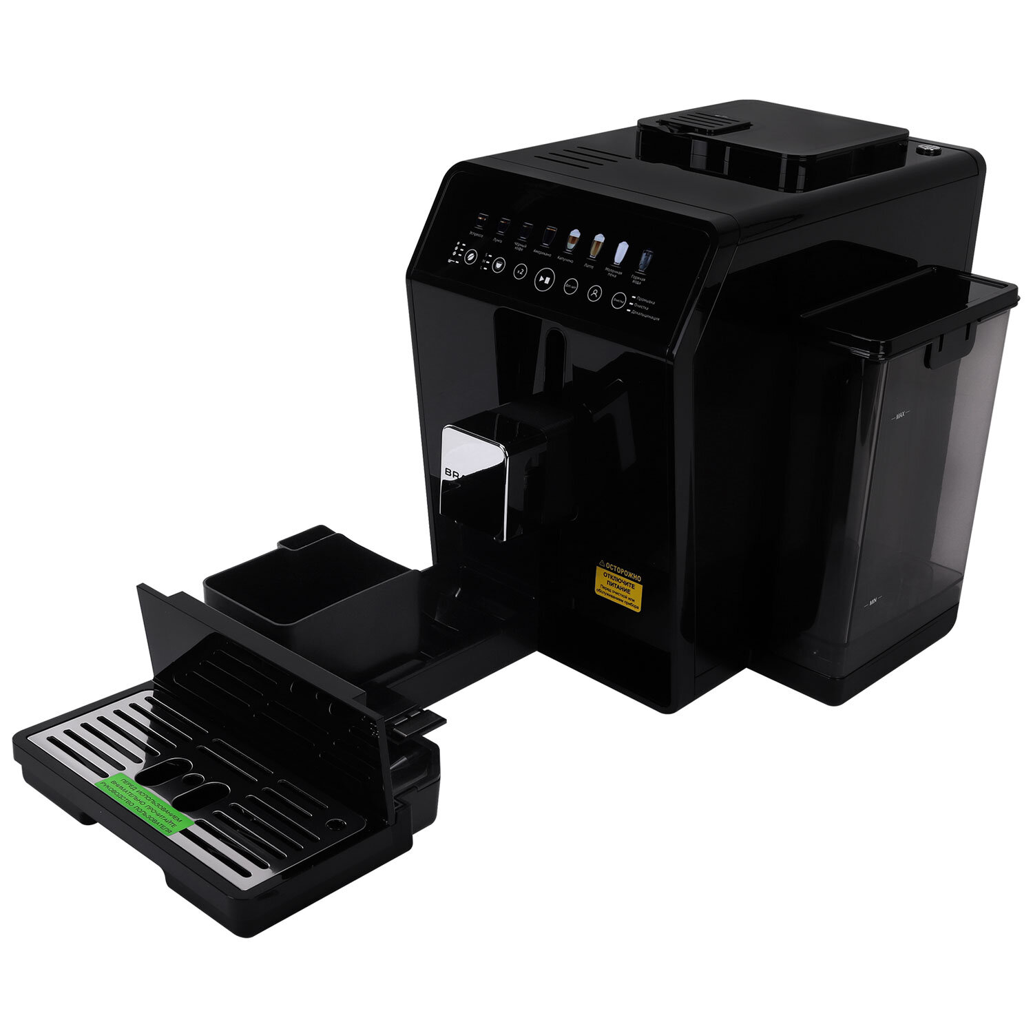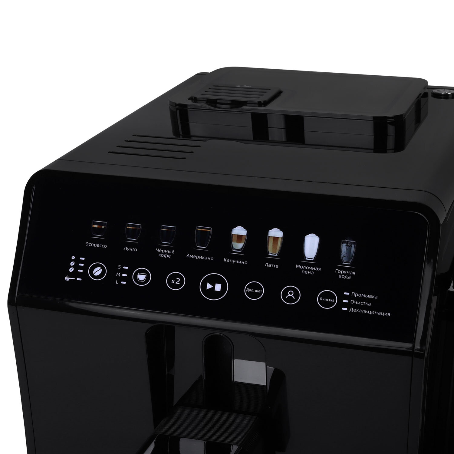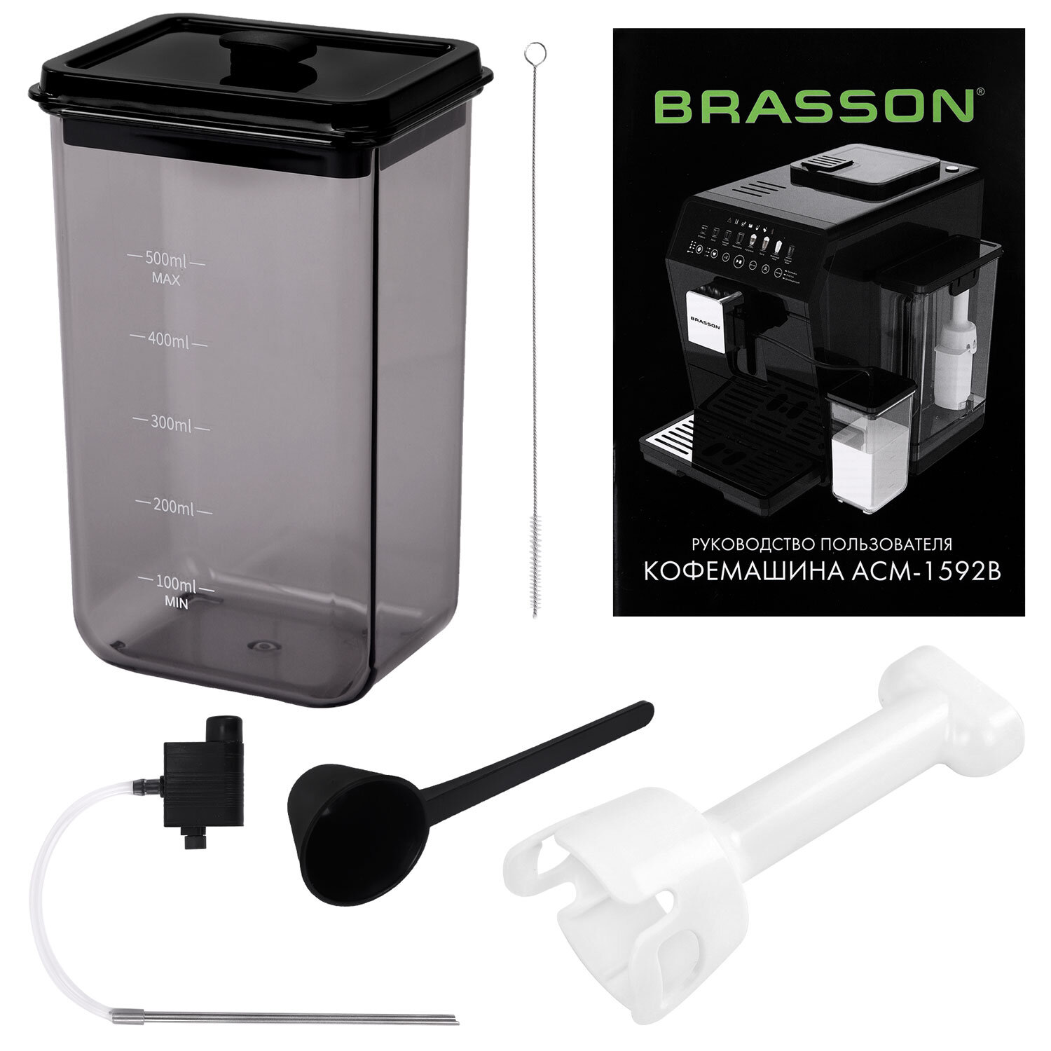 Кофемашина автоматическая BRASSON (БРАССОН) ACM-1592B, дисплей, капучинатор, 13 напитков, 1450 Вт, 20 бар Код товара: 457887 32 275,84 ₽ Купить Производитель:BRASSON Кофемашина BRASSON ACM-1592B превращает процесс приготовления идеального напитка в простое и приятное занятие. Представьте себе профессиональную кофейню прямо у вас дома, где каждое утро начинается с чашки свежесваренного кофе. С помощью нашей кофемашины вы можете приготовить 8 напитков: эспрессо, американо, латте, капучино, лунго, черный кофе, молочную пену и горячую воду. Также вы можете сохранить 5 персональных напитков в зависимости от сохраненных настроек. В кофемашине есть выбор крепости и объема напитка, а также вы можете добавлять дополнительный шот в напитки с молоком или готовить двойной эспрессо. Мощность 1450 Вт является оптимальным показателем для современной автоматической кофемашины. Благодаря этому кофемашина обеспечивает быстрый нагрев воды, стабильное давление в системе и качественное приготовление кофе. Давление 20 бар является идеальным для приготовления эспрессо, обеспечивает интенсивную экстракцию кофе. Качественная итальянская помпа помогает достичь насыщенного аромата и вкуса кофе, густой и стойкой пены, а также улучшенную текстуру напитка. Кофемашина имеет встроенную жерновую кофемолку с 6 степенями помола, с помощью которой можно выбрать идеальную настройку для различных сортов кофе. Также возможно приготовление напитка из молотого кофе. Кофемашина управляется интуитивно понятным сенсорным дисплеем. Изделие имеет автоматический капучинатор, который создает воздушную молочную пену. В комплекте поставляется фильтр для воды.Производство: КитайМощность: 1450 ВтДавление: 20 БарЕмкость резервуара для воды: 1.5 лЕмкость резервуара для зерен: 150 гИспользуемый кофе: зерновой, молотыйКапучинатор: автоматическийТип нагревателя: термоблокАвтоматическая программа очистки от накипи: даАвтоматическая программа очистки от кофейного жира: даВстроенная кофемолка: жерноваяМатериал жерновов: нержавеющая стальЕмкость для молока: даСъемный лоток для сбора капель: даРегулируемый по высоте дозатор: даРегулировка степени помола: даРегулировка крепости кофе: даПодача горячей воды (для чая): даОдновременное приготовление двух чашек: даЖК-дисплей: даКомплектация: инструкция, мерная ложка, трубка для молока, фильтр для водыМатериал корпуса: пластикЦвет корпуса: черныйШирина: 360 ммВысота: 444 ммГлубина: 300.5 ммВес: 9.7 кгСерия: ACMРазмер упаковки: 37.7 × 51.2 × 42.8 смОбъём: 0.0826 м3Промежуточная упаковка: 1 штТранспортная упаковка: 1 штШтрих-код: 4606224502045 Файлы Приложение-1.pdf Сертификат-1.jpg Сертификат-2.jpg Сертификат-3.jpg Сертификат-4.jpg Сертификат-5.jpg Сертификат-6.jpg Сертификат-7.jpg