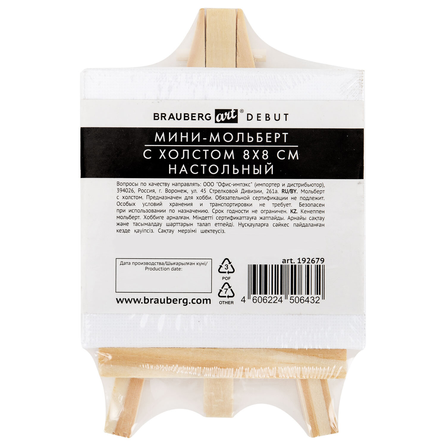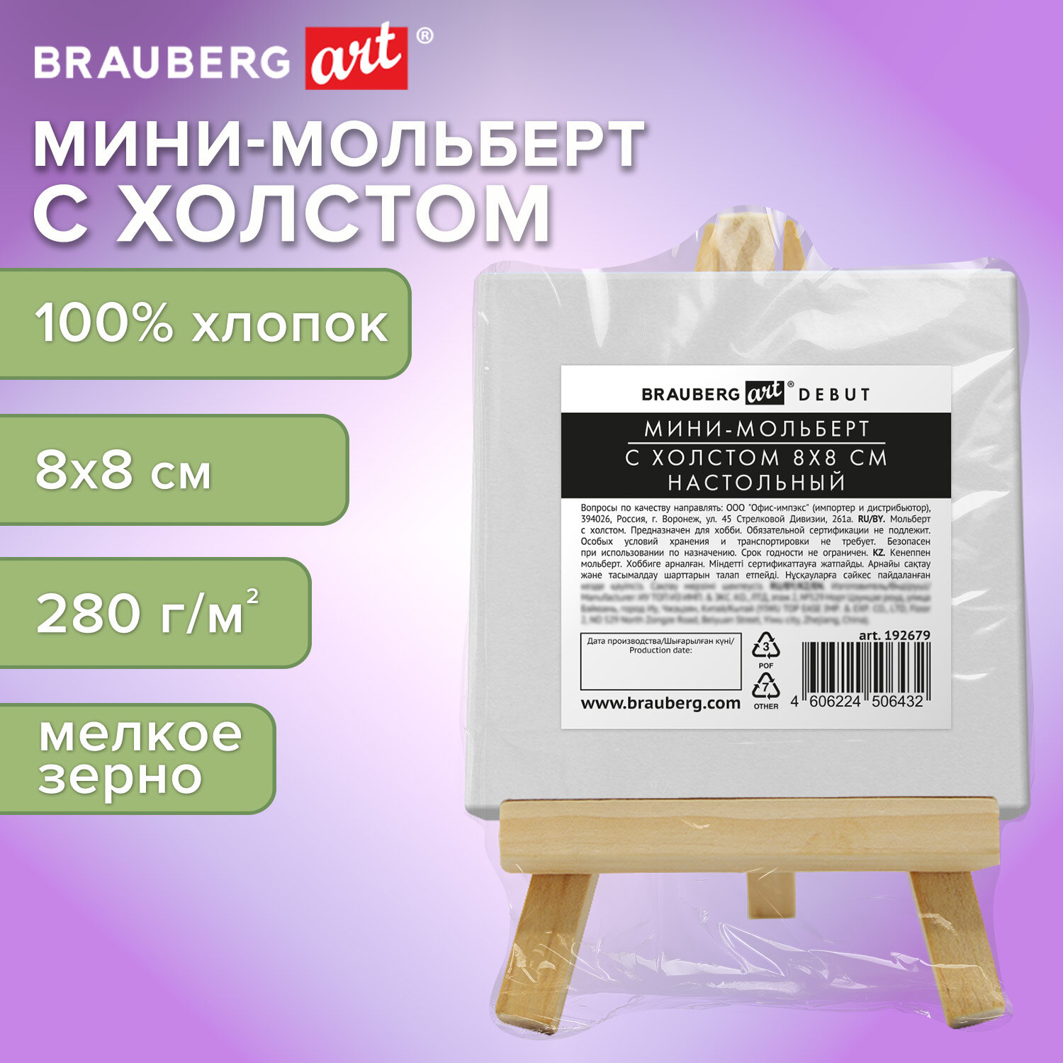 Настольный мини-мольберт с холстом 8х8 см, BRAUBERG ART DEBUT, сосна, хлопок Код товара: 192679 209,1 ₽ Купить Производитель:BRAUBERG ART Настольный мольберт с холстом – это миниатюрное и стильное решение для творчества и декора. Набор идеально подойдет как для рисования, так и в качестве оригинального декоративного элемента. Его можно использовать для создания подарков, сувениров, ценников или информационных табличек. Благодаря компактным размерам и привлекательному дизайну, этот набор станет прекрасным выбором для вдохновения и украшения вашего пространства. Мольберт изготовлен из сосны, холст имеет подрамник, материал холста – хлопок. Размер мольберта – 12х7,5 см. Размер холста – 8х8 см. Набор упакован в термоусадку. Художественные мольберты пригодятся школьникам, студентам, участникам мастер-классов, ученикам художественных школ, студий и училищ, живописных мастерских. Отлично подойдут для работы дома или на пленэре. Эти мольберты используют любители и профессионалы, которые стремятся достичь такой же славы, как Пабло Пикассо (Pablo Picasso), Казимир Малевич, Марк Шагал, Клод Моне (Claude Monet), Рембрандт (Rembrandt), Сальвадор Дали (Salvador Dali), Энди Уорхол (Andy Warhol), Андрей Рублёв, Фрида Кало (Frida Kahlo), Винсент Ван Гог (Vincent van Gogh), Тициан (Tician), Анри Матисс (Henri Matisse), Леонардо да Винчи (Leonardo da Vinci) и другие популярные художники и артисты.Производство: КитайТип изделия: мини-мольберт с холстомСерия: DEBUTРазмещение: настольноеМатериал: соснаТип мачты: неподвижнаяУгол наклона мачты: регулируемыйФиксатор мачты: Нет данныхМаксимальная высота холста: 8 смМаксимальная высота в рабочем состоянии: 12 смМаксимальная ширина в рабочем состоянии: 7.5 смМаксимальная глубина в рабочем состоянии: 10 смМинимальная высота в рабочем состоянии: 11 смМинимальная ширина в рабочем состоянии: 7.5 смМинимальная глубина в рабочем состоянии: 10 смЦвет: натуральное деревоВес: 0.026 кгРазмер упаковки: 2.1 × 12.3 × 8.1 смОбъём: 0.0003 м3Промежуточная упаковка: 60 штТранспортная упаковка: 480 штШтрих-код: 4606224506432 Файлы Сертификат-1.jpg Сертификат-2.jpg Сертификат-3.jpg Сертификат-4.jpg Сертификат-5.jpg Сертификат-6.jpg Сертификат-7.jpg Сертификат-8.jpg Сертификат-9.jpg Сертификат-10.jpg Сертификат-11.jpg Сертификат-12.jpg Сертификат-13.jpg Сертификат-14.jpg Сертификат-15.jpg Сертификат-16.jpg Сертификат-17.jpg Сертификат-18.jpg Сертификат-19.jpg Сертификат-20.jpg Сертификат-21.jpg Сертификат-22.jpg Сертификат-23.jpg Сертификат-24.jpg Сертификат-25.jpg Сертификат-26.jpg