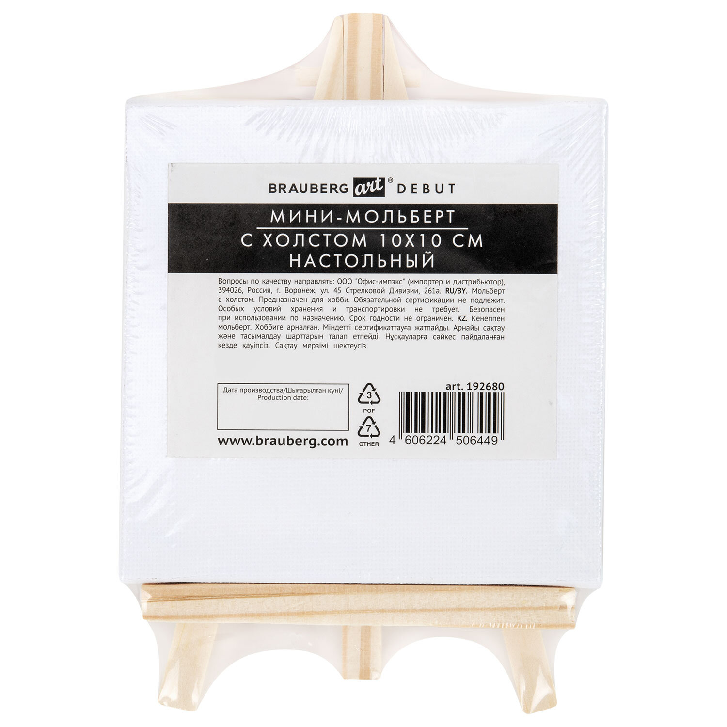 Настольный мини-мольберт с холстом 10х10 см, BRAUBERG ART DEBUT, сосна, хлопок Код товара: 192680 217,72 ₽ Купить Производитель:BRAUBERG ART Настольный мольберт с холстом – это миниатюрное и стильное решение для творчества и декора. Набор идеально подойдет как для рисования, так и в качестве оригинального декоративного элемента. Его можно использовать для создания подарков, сувениров, ценников или информационных табличек. Благодаря компактным размерам и привлекательному дизайну, этот набор станет прекрасным выбором для вдохновения и украшения вашего пространства. Мольберт изготовлен из сосны, холст имеет подрамник, материал холста – хлопок. Размер мольберта – 15х8 см. Размер холста – 10х10 см. Набор упакован в термоусадку. Художественные мольберты пригодятся школьникам, студентам, участникам мастер-классов, ученикам художественных школ, студий и училищ, живописных мастерских. Отлично подойдут для работы дома или на пленэре. Эти мольберты используют любители и профессионалы, которые стремятся достичь такой же славы, как Пабло Пикассо (Pablo Picasso), Казимир Малевич, Марк Шагал, Клод Моне (Claude Monet), Рембрандт (Rembrandt), Сальвадор Дали (Salvador Dali), Энди Уорхол (Andy Warhol), Андрей Рублёв, Фрида Кало (Frida Kahlo), Винсент Ван Гог (Vincent van Gogh), Тициан (Tician), Анри Матисс (Henri Matisse), Леонардо да Винчи (Leonardo da Vinci) и другие популярные художники и артисты.Производство: КитайТип изделия: мини-мольберт с холстомСерия: DEBUTРазмещение: настольноеМатериал: соснаТип мачты: неподвижнаяУгол наклона мачты: регулируемыйФиксатор мачты: Нет данныхМаксимальная высота холста: 10 смМаксимальная высота в рабочем состоянии: 15 смМаксимальная ширина в рабочем состоянии: 8 смМаксимальная глубина в рабочем состоянии: 11 смМинимальная высота в рабочем состоянии: 14 смМинимальная ширина в рабочем состоянии: 8 смМинимальная глубина в рабочем состоянии: 10 смЦвет: натуральное деревоВес: 0.029 кгРазмер упаковки: 2.1 × 14.8 × 10.1 смОбъём: 0.0004 м3Промежуточная упаковка: 60 штТранспортная упаковка: 480 штШтрих-код: 4606224506449 Файлы Сертификат-1.jpg Сертификат-2.jpg Сертификат-3.jpg Сертификат-4.jpg Сертификат-5.jpg Сертификат-6.jpg Сертификат-7.jpg Сертификат-8.jpg Сертификат-9.jpg Сертификат-10.jpg Сертификат-11.jpg Сертификат-12.jpg Сертификат-13.jpg Сертификат-14.jpg Сертификат-15.jpg Сертификат-16.jpg Сертификат-17.jpg Сертификат-18.jpg Сертификат-19.jpg Сертификат-20.jpg Сертификат-21.jpg Сертификат-22.jpg Сертификат-23.jpg Сертификат-24.jpg Сертификат-25.jpg Сертификат-26.jpg