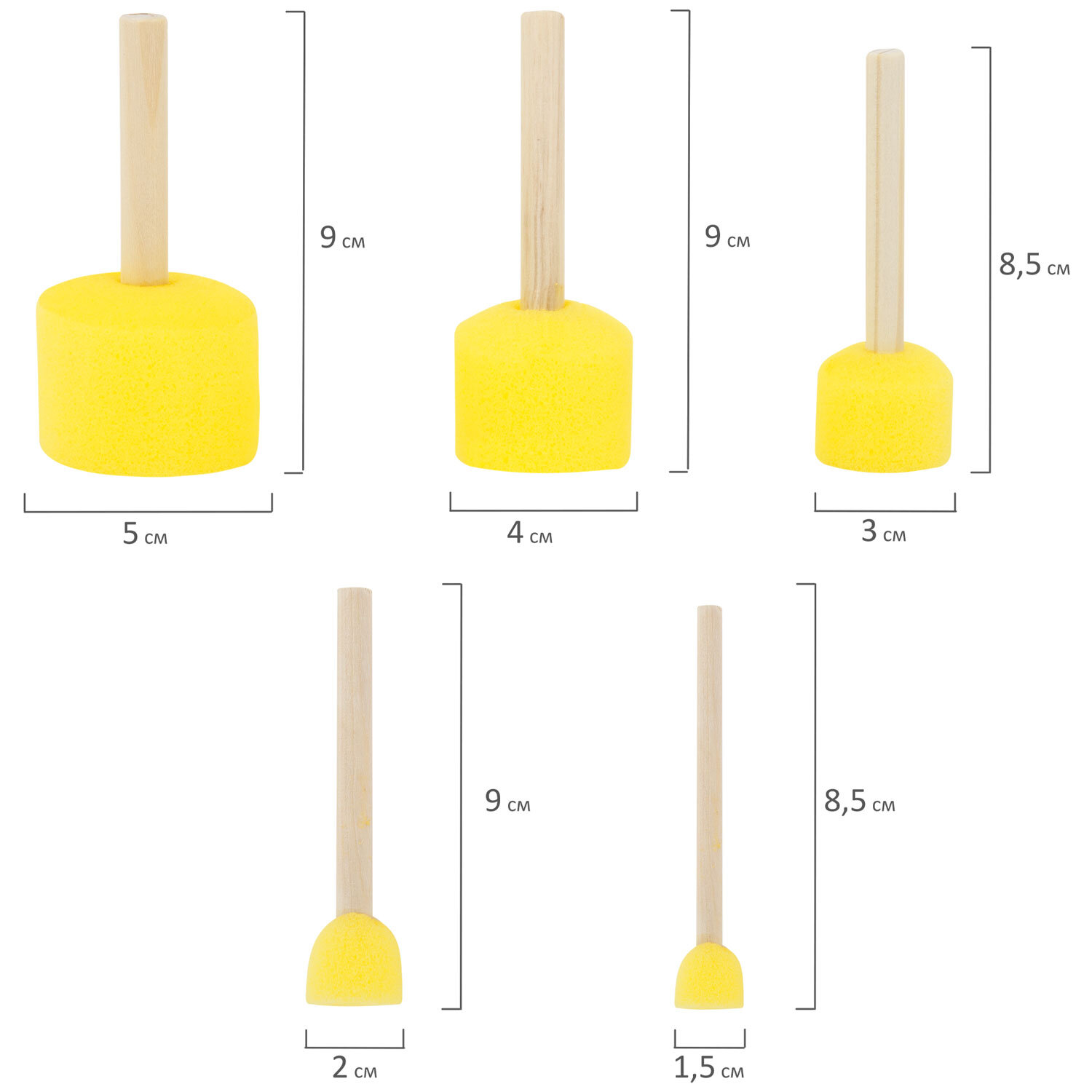 Кисти идеально подходят для различных техник, включая трафаретное рисование, для создания интересных текстур и рисунков. Совместимы с акриловыми красками, гуашью и акварелью. Ручки разных диаметров удобно лежат в руке, обеспечивая комфорт в использовании. Изготовленные из поролона, кисточки просты в использовании и уходе и идеальны для легкого и увлекательного рисования.