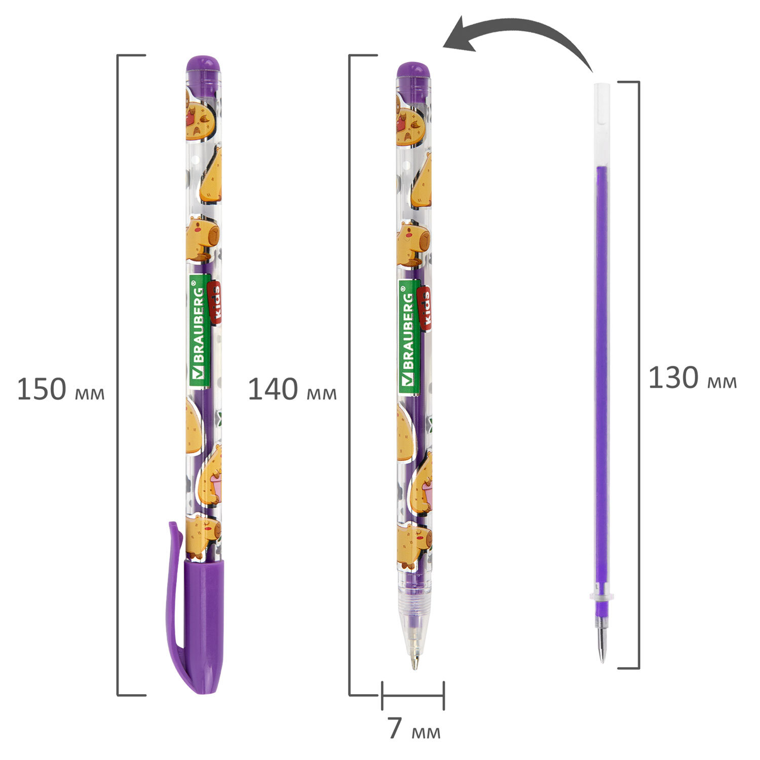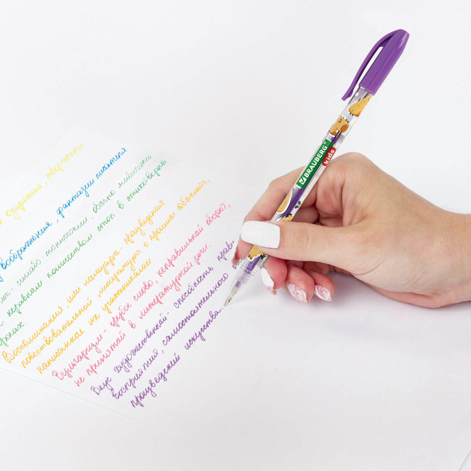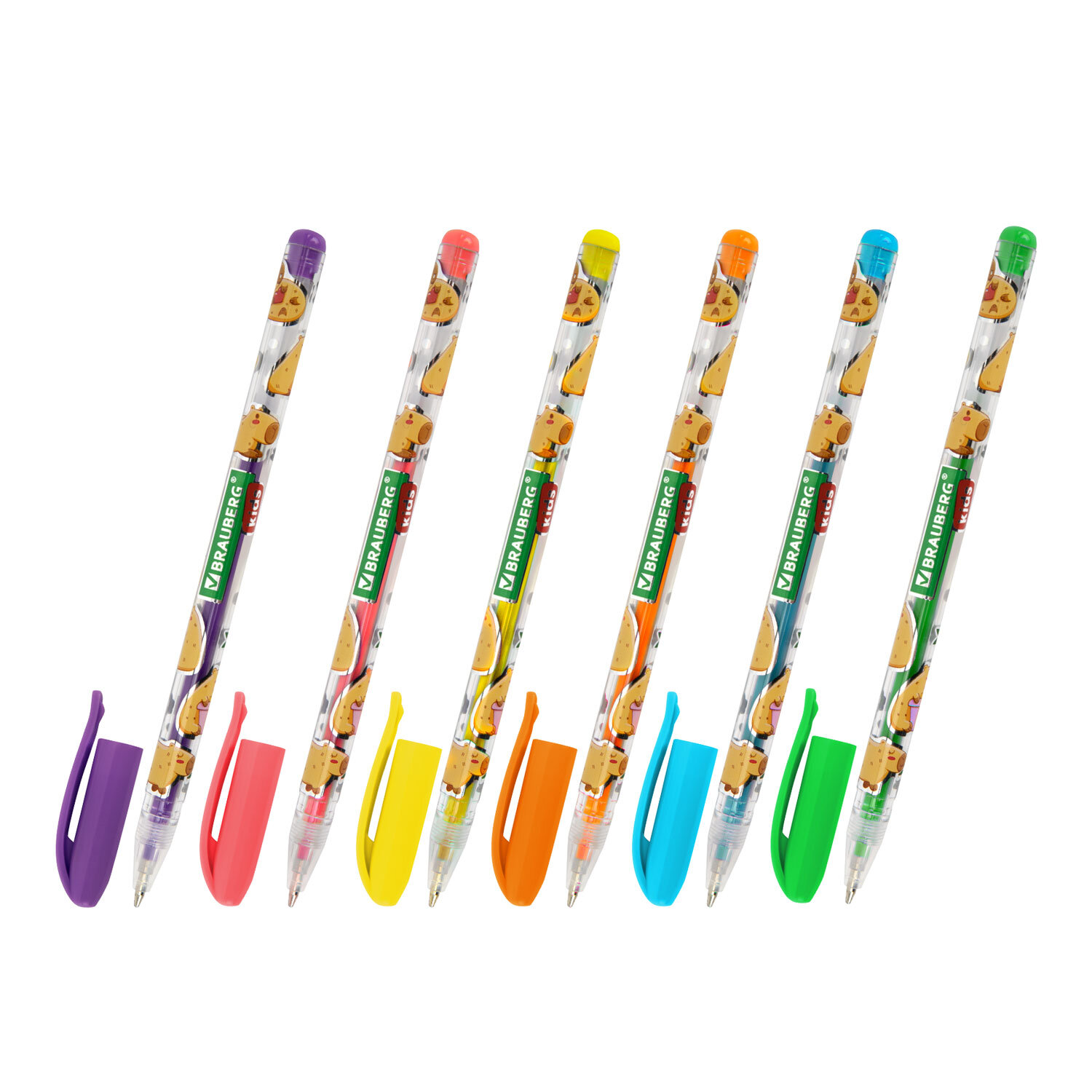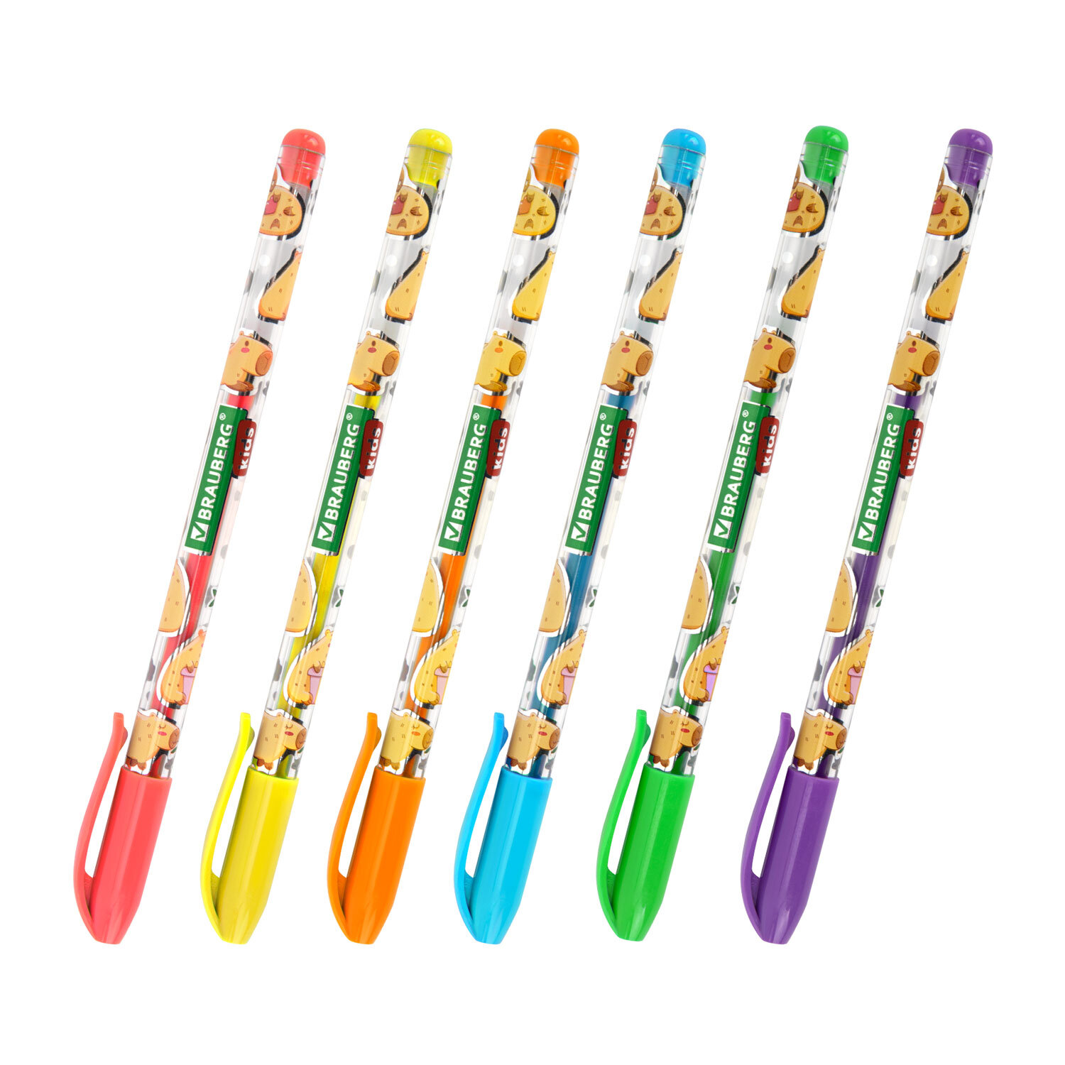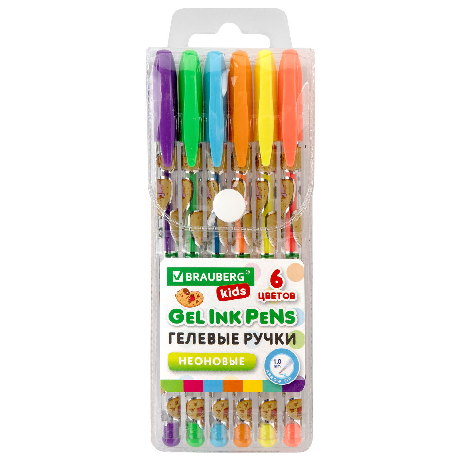 Ручки гелевые НЕОНОВЫЕ BRAUBERG KIDS "CUTE ANIMALS", НАБОР 6 ЦВЕТОВ, корпус с печатью, узел 1 мм, линия письма 0,7 мм Код товара: 144442 103,39 ₽ Купить Производитель:BRAUBERG KIDS Ручки гелевые BRAUBERG KIDS "CUTE ANIMALS" – это не только надежный инструмент для создания рисунков и цветных надписей, но и источник вдохновения, помогающий развивать фантазию и креативное мышление ребенка. Набор включает 6 ручек с различными цветами чернил: синий, оранжевый, зеленый, желтый, розовый, фиолетовый. Чернила представлены в неоновых оттенках – идеально для создания ярких образов и запоминающихся рисунков. Круглый корпус ручек выполнен в интересном дизайне с милыми животными, которые поднимут настроение и вдохновят на новые идеи. Гелевые чернила ложатся на бумагу мягко и плавно – с ними ручка скользит по бумаге практически без нажима, позволяя заниматься творчеством на протяжении долгого времени без усталости. Диаметр стандартного наконечника составляет 1 мм, толщина линии письма – 0,7 мм.Производство: КитайКоличество в упаковке: 6 шт.Цвет чернил: ассортиЭффект чернил: неоновыеТолщина линии письма: 0.7 ммДиаметр пишущего узла: 1 ммСерия: CUTE ANIMALSДлина сменного стержня: 130 ммФорма наконечника: стандартныйФорма корпуса: круглаяУпаковка: ПВХ-чехол с подвесомСрок годности: 60 месВес: 47 грРазмер упаковки: 1.5 × 15.1 × 6.4 смОбъём: 0.0002 м3Промежуточная упаковка: 24 штТранспортная упаковка: 144 штШтрих-код: 4606224481319 Сертификат-1.jpg Сертификат-2.jpg