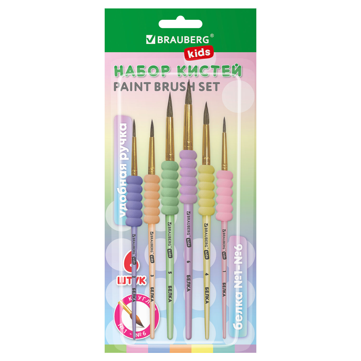 Кисти c EVA вставкой БЕЛКА набор 6 шт. (круглые № 1, 2, 3, 4, 5, 6), блистер, BRAUBERG KIDS Код товара: 201093 310,89 ₽ Купить Производитель:BRAUBERG KIDS Набор из шести кистей разного размера c мягкой EVA вставкой BRAUBERG KIDS позволяет начинающим художникам решать любые творческие задачи в детском саду, школе и дома. Кисти из ворса белки отлично впитывают и отдают краску, хорошо держат форму, долговечны и надежны. Благодаря кистям № 1, 2, 3 и 4 ребенку будет комфортно прорисовывать мелкие детали. Кисти № 5 и 6 позволяют делать более крупные мазки и линии. Пластиковую рукоятку c мягкой EVA вставкой удобно держать в руке.Производство: КитайКол-во кистей в наборе: 6 шт.Тип кисти: круглаяНомер кисти: 1, 2, 3, 4, 5, 6Ворс: белкаРучка: стандартнаяУпаковка: блистер с европодвесомСерия: -Вес: 41 грРазмер упаковки: 0.5 × 6.5 × 25 смОбъём: 0.0002 м3Промежуточная упаковка: 12 штТранспортная упаковка: 288 штШтрих-код: 4606224518176