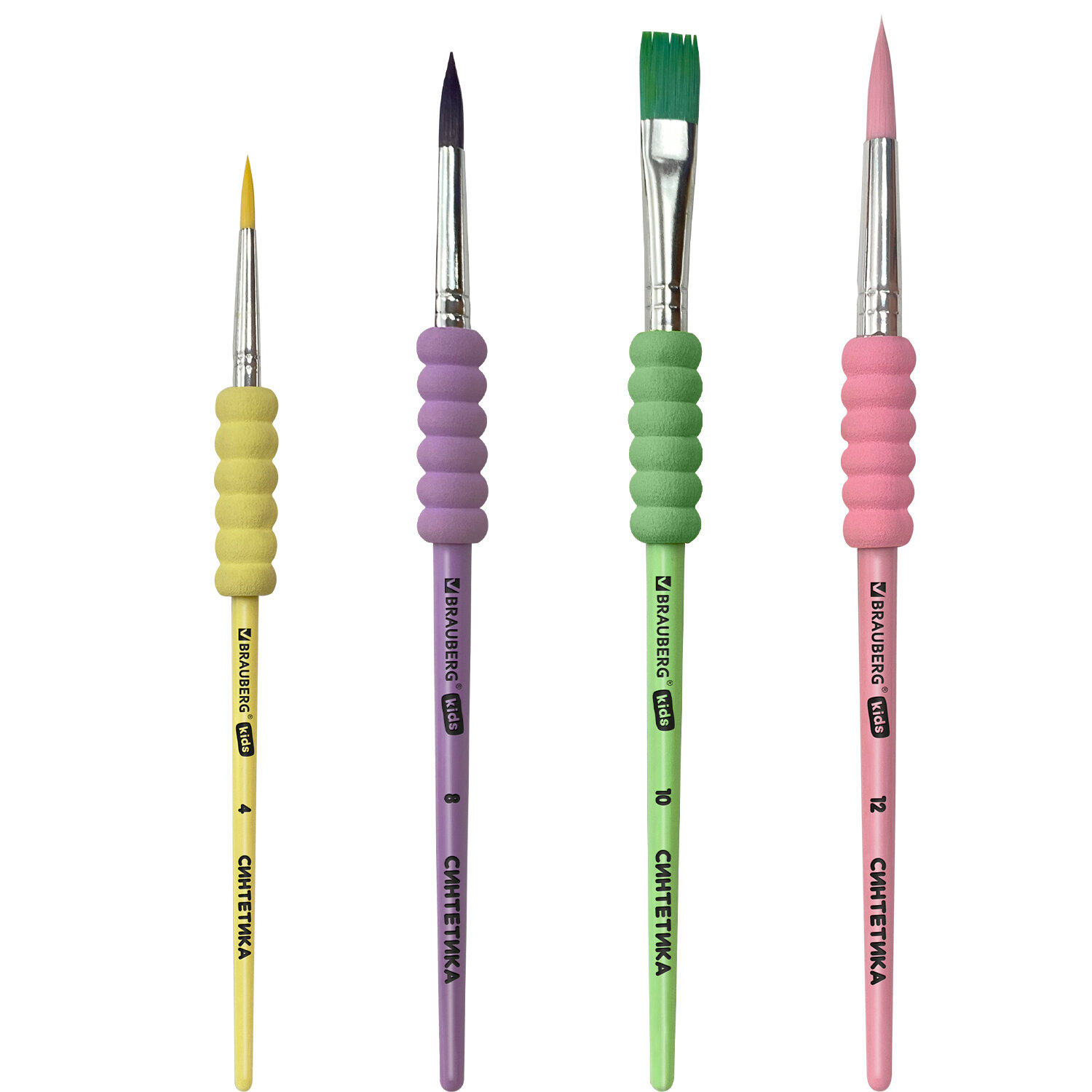Кисти c EVA вставкой НАБОР 4шт. (синтетика круглые 4,8,12; плоская №10),блистер BRAUBERG KIDS Код товара: 201095 212,84 ₽ Купить Производитель:BRAUBERG KIDS Набор из четырёх кистей разного размера c мягкой EVA вставкой BRAUBERG KIDS позволяет начинающим художникам решать любые творческие задачи в детском саду, школе и дома. Кисти из синтетики отлично впитывают и отдают краску, хорошо держат форму, долговечны и надежны. Благодаря кистям № 4, 8, и 12 ребенку будет комфортно прорисовывать мелкие детали. Кисть № 10 позволит делать более крупные мазки и линии. Пластиковую рукоятку c мягкой EVA вставкой удобно держать в руке.Производство: КитайКоличество кистей в наборе: 4 шт.Тип кисти: круглая, плоскаяНомер кисти: 10, 12, 4, 8Ворс: синтетикаРучка: стандартнаяУпаковка: блистер с европодвесомСерия: -Цвет: пастельный ассортиВес: 41 грРазмер упаковки: 0.5 × 6.5 × 25 смОбъём: 0.0002 м3Промежуточная упаковка: 12 штТранспортная упаковка: 288 штШтрих-код: 4606224518190