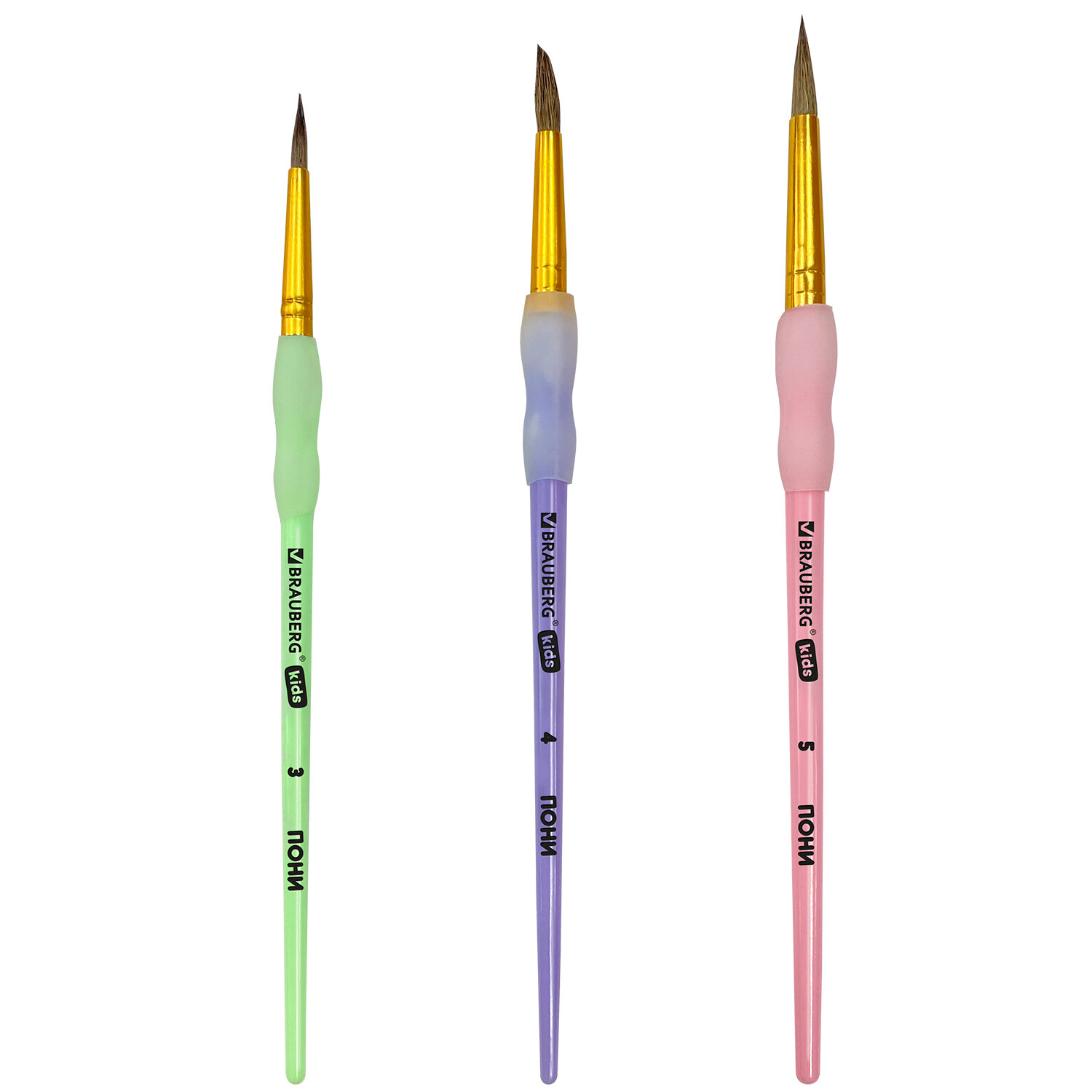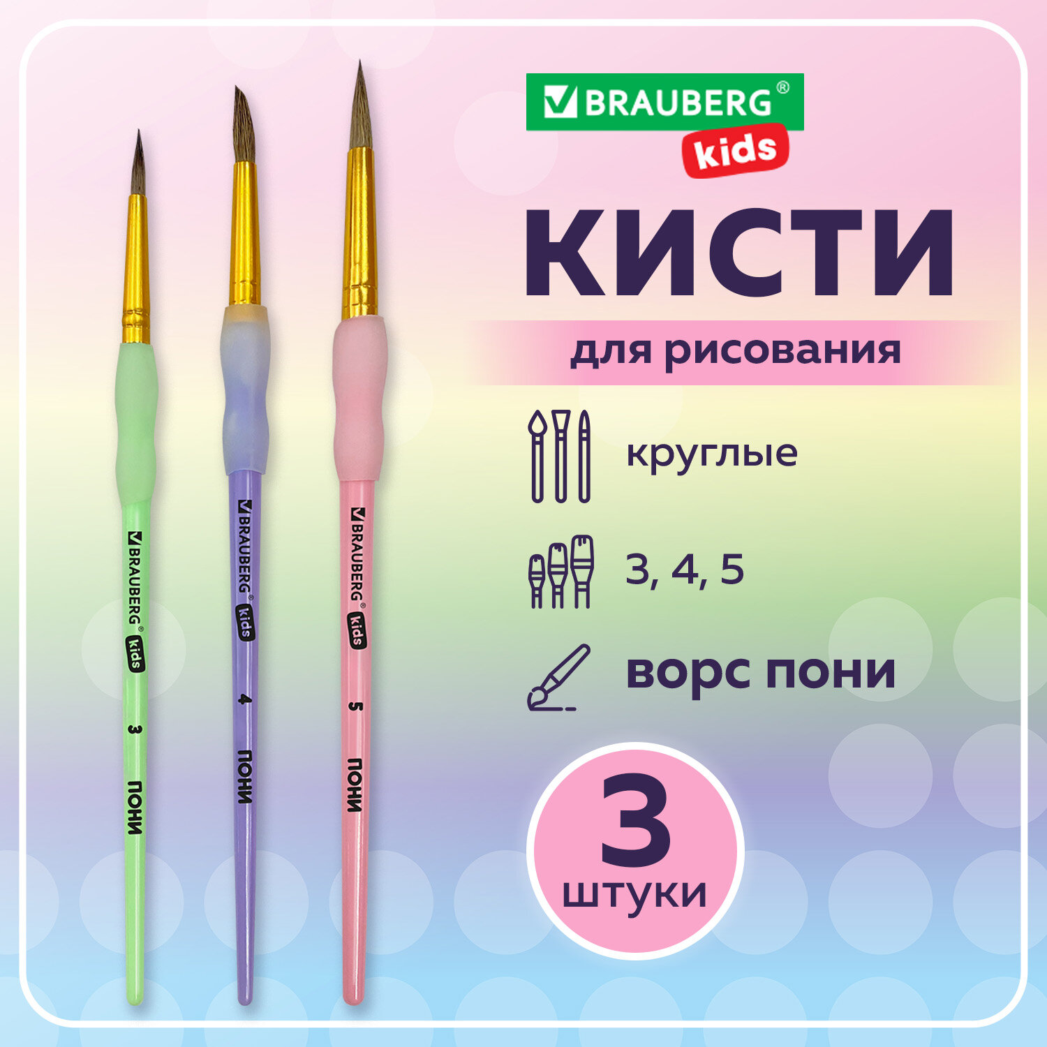 Кисти c силиконовой вставкой ПОНИ набор 3шт. (круглые № 3, 4, 5), блистер, BRAUBERG KIDS Код товара: 201096 116,44 ₽ Купить Производитель:BRAUBERG KIDS Набор из трёх кистей разного размера c мягкой силиконовой вставкой BRAUBERG KIDS позволяет начинающим художникам решать любые творческие задачи в детском саду, школе и дома. Кисти из волоса пони отлично впитывают и отдают краску, хорошо держат форму, долговечны и надежны. Благодаря кистям № 3 и 4 ребенку будет комфортно прорисовывать мелкие детали. Кисть № 5 позволит делать более крупные мазки и линии. Пластиковую рукоятку c мягкой силиконовой вставкой удобно держать в руке.Производство: КитайКол-во кистей в наборе: 3 шт.Тип кисти: круглаяНомер кисти: 3, 4, 5Ворс: пониРучка: стандартнаяУпаковка: блистер с европодвесомСерия: -Вес: 25 грРазмер упаковки: 0.5 × 6.5 × 25 смОбъём: 0.0001 м3Промежуточная упаковка: 12 штТранспортная упаковка: 240 штШтрих-код: 4606224518206