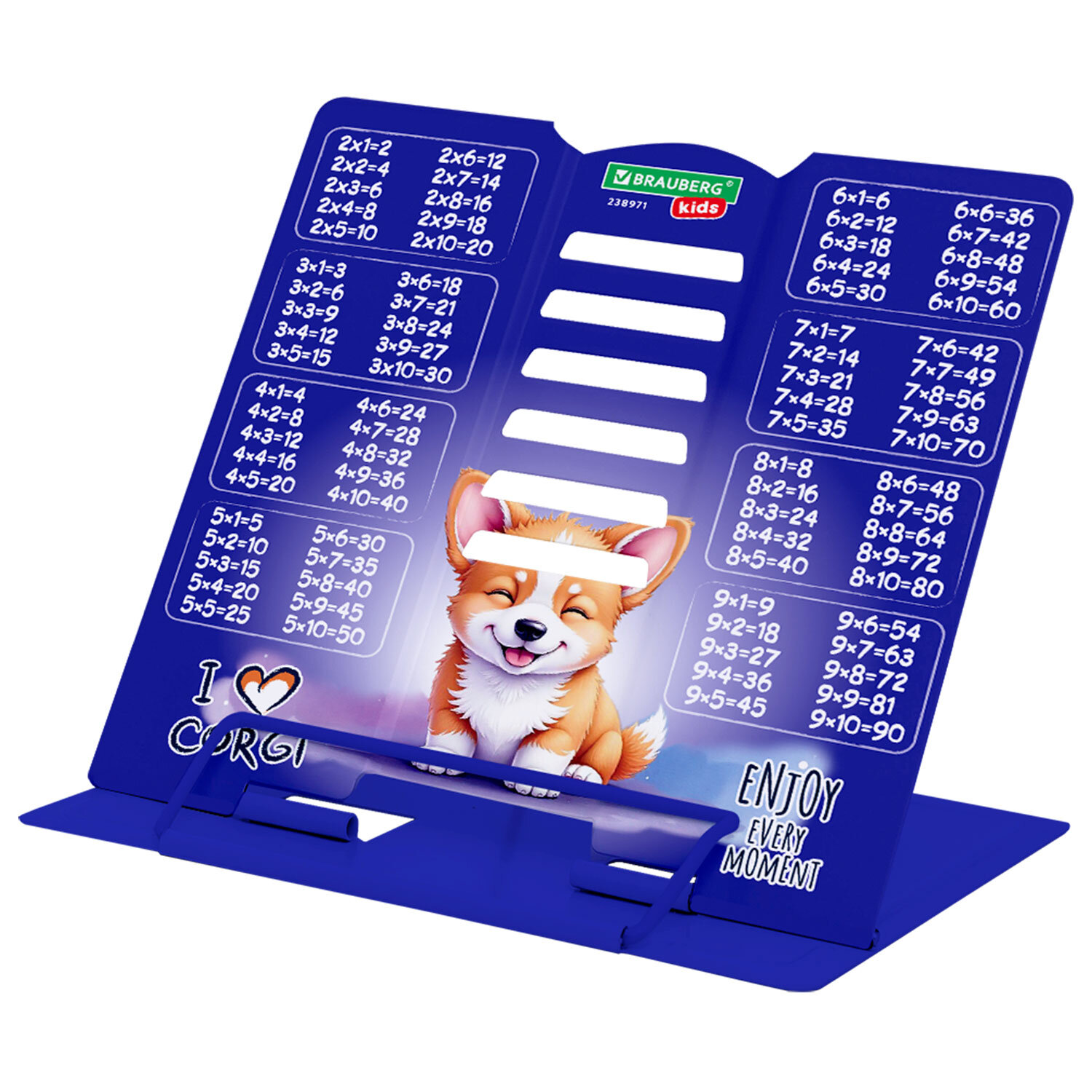 Подставка для книг и учебников BRAUBERG KIDS mini "Корги" с таблицей умножения, регулируемый угол наклона, металлическая Код товара: 238971 316 ₽ Купить Производитель:BRAUBERG KIDS Подставка для книг и учебников BRAUBERG KIDS mini станет незаменимым помощником для школьников и любителей чтения. Использование подставки для книг способствует формированию правильной осанки. Яркий дизайн станет изюминкой в любом интерьере. Подставка полностью выполнена из металла, поэтому отлично подойдет для надежной фиксации тяжелых и объемных учебных материалов и книг. Оригинальный дизайн понравится школьнику любого возраста, таблица умножения будет полезна в учебе. Регулируемый угол наклона обеспечивает удобство при работе с текстом, облегчает чтение и выполнение домашней работы. На нижней части подставки предусмотрены противоскользящие элементы. Размер подставки – 150х150х130 мм. Цвет – синий. Подставка упакована в прозрачный пакет с картонным европодвесом.Производство: КитайНазначение: для книг и учебниковРегулируемый угол наклона: даДержатель для страниц: нижнийСерия: Smart Shelf miniМатериал корпуса: металлВысота: 15 смШирина: 15 смЦвет: синийДизайн: КоргиУпаковка: пакет с картонным европодвесомВес: 250 грРазмер упаковки: 1.5 × 15.2 × 12.8 смОбъём: 0.0005 м3Промежуточная упаковка: 48 штТранспортная упаковка: 48 штШтрих-код: 4606224508504