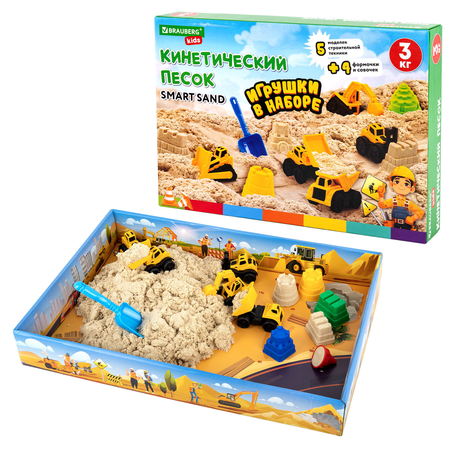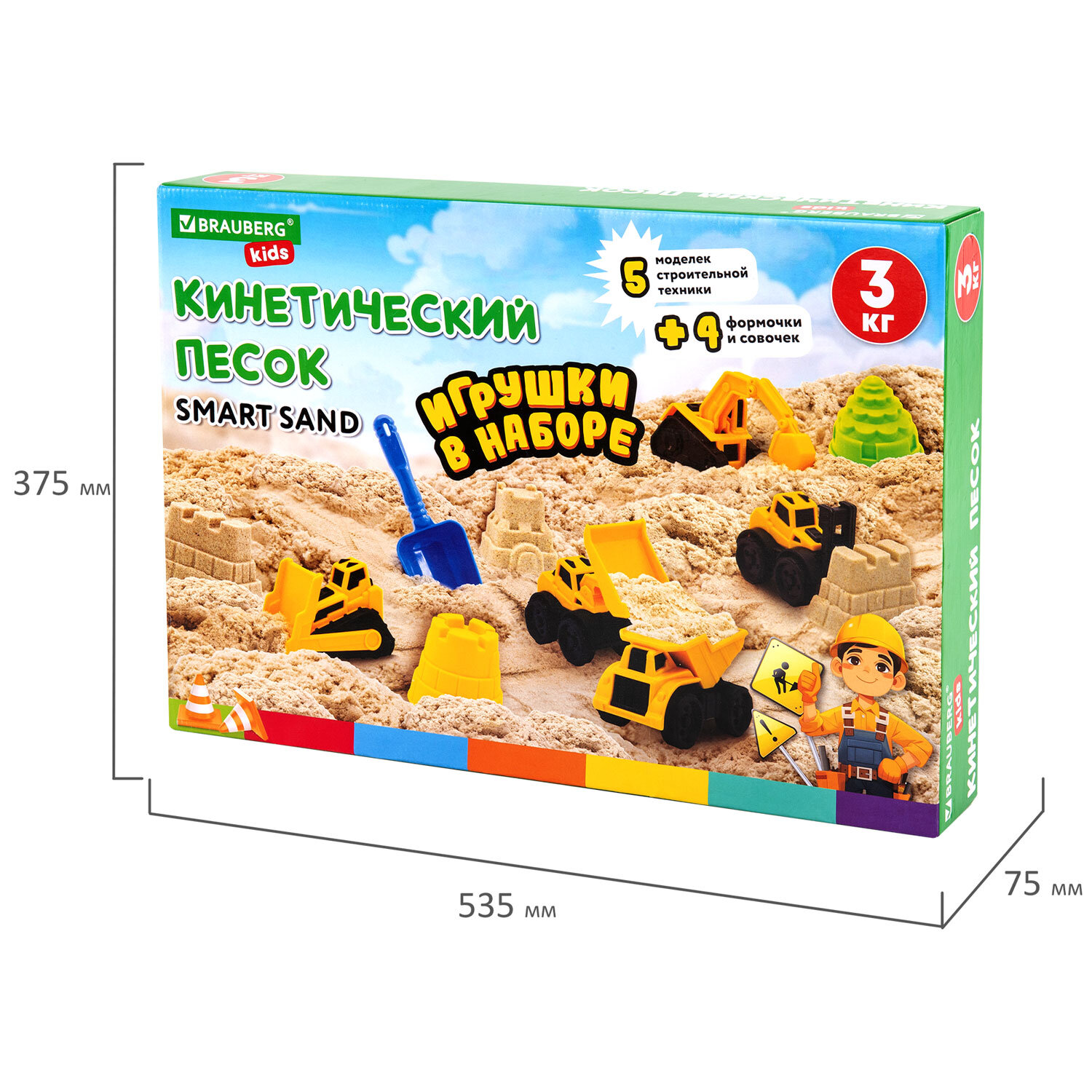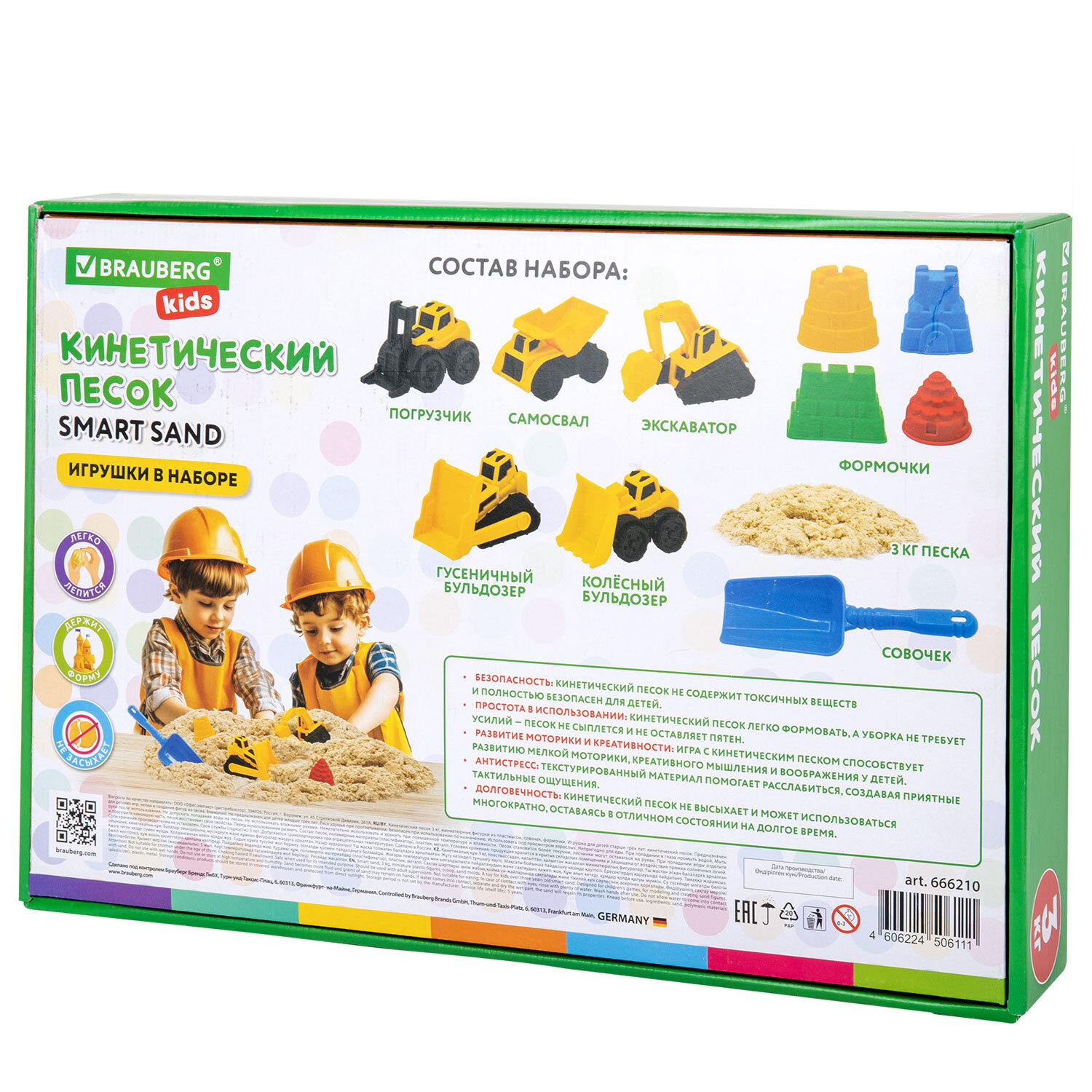 Набор кинетического песка 3 кг, "ВЕСЕЛАЯ СТРОЙКА", песочница, игрушки, формочки, BRAUBERG KIDS Код товара: 666210 3 079,69 ₽ Купить Производитель:BRAUBERG KIDS Кинетический песок для лепки BRAUBERG KIDS идеально подойдет для детского творчества. Игры с кинетическим песком развивают мелкую моторику рук, у детей развивается тактильная чувствительность, а также творческие способности и воображение. Безопасный кинетический песок BRAUBERG KIDS по текстуре похож на влажный морской песок, но вместе с этим он абсолютно сухой, приятный на ощупь, воздушный и мягкий, прекрасно сохраняет форму во время лепки. Состав набора: кинетический песок песочного цвета – 3 кг, большая коробка-песочница – 1 шт., модельки строительной техники – 5 шт., совочек и 4 формочки для лепки. Прилагаемая песочница предназначена для игры песком в любом месте. Любимый сыпучий материал не будет рассыпаться по дому, теряться и пачкать всё вокруг. Тематические элементы в наборе сделают игру еще более интересной и помогут выстроить сюжетно-ролевые сказочные сценарии, развивая фантазию ребенка. Песок сертифицирован, безопасен и не токсичен. Игры с песком рекомендованы в развивающих занятиях с детьми для получения благоприятного терапевтического эффекта. Предназначен для детей старше 3-х лет.Производство: РоссияКоличество цветов: 1Серия: Кинетический песок с песочницейТематика: ВЕСЕЛАЯ СТРОЙКАКоличество формочек для лепки: 4 шт.Свойства: держит форму, не прилипает к рукам, не токсичен, отлично лепитсяВозрастная группа от: 3 летЦвет: песочныйУпаковка: красочная коробкаВес: 3000 гСрок годности: 60 месРазмер упаковки: 9.5 × 55.2 × 39.3 смОбъём: 0.024 м3Промежуточная упаковка: 3 штТранспортная упаковка: 3 штШтрих-код: 4606224506111 Файлы Сертификат-1.jpg Сертификат-2.jpg Сертификат-3.jpg Сертификат-4.jpg