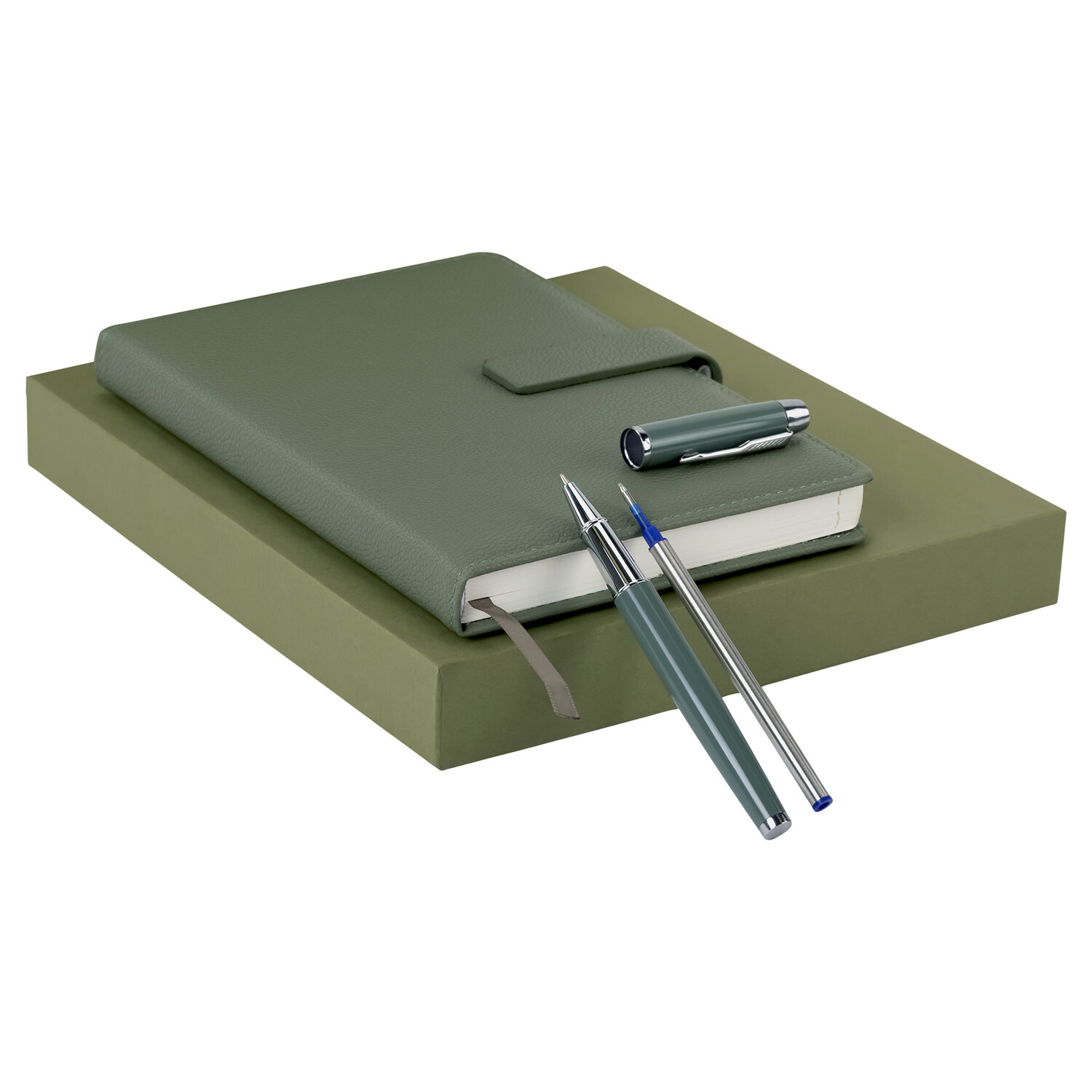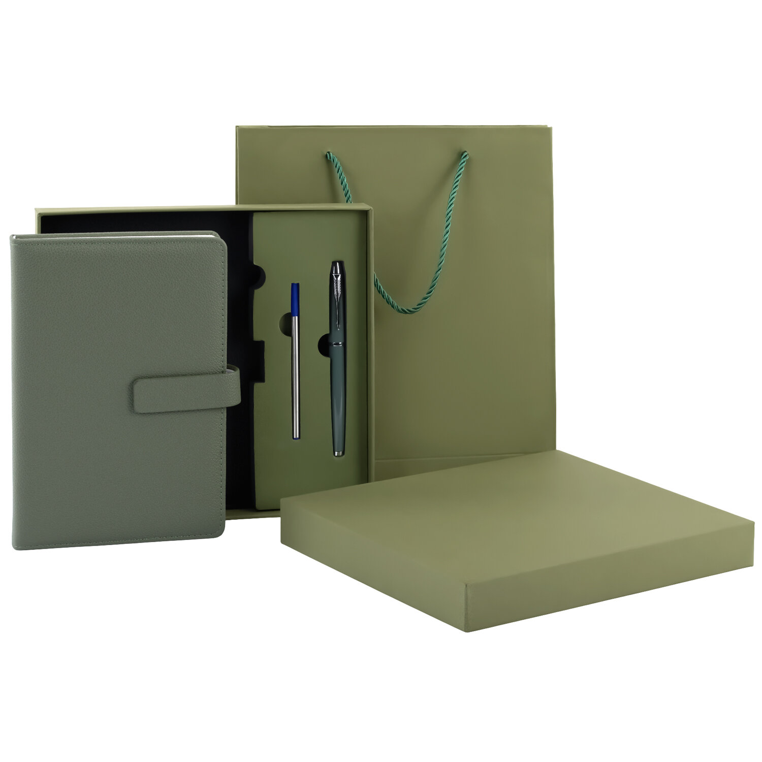 Ежедневник в подарочном наборе 5 в 1, А5, 145x212 мм, BRAUBERG "President", под кожу, 160 листов, зеленый Код товара: 116855 964,54 ₽ Купить Производитель:BRAUBERG Недатированный ежедневник в подарочном наборе BRAUBERG "President" – ваш идеальный подарок. Стильный ежедневник и аксессуары к нему помогут каждому современному человеку тщательно планировать свое время и не забывать о приоритетных задачах. Подарочный набор включает в себя недатированный ежедневник с внутренним блоком из 160 листов кремовой бумаги плотностью 70 г/м2. Каждая страничка имеет перфорированный угол. Благодаря классическому формату А5 (145x212 мм) ежедневник удобно использовать как в офисе, так и на выездных деловых встречах. Твердая обложка стилизована под текстурную кожу. Ежедневник фиксируется магнитной застежкой, поэтому не откроется в сумке или портфеле и страницы не помнутся. Дополнениями являются закладка-ляссе и держатель для ручки. Ручка со стильным корпусом в тон ежедневника и высококачественными чернилами также входит в набор. Сменный стержень в комплекте позволит дольше наслаждаться мягким письмом. Набор упакован в плотную подарочную картонную коробку. В комплекте поставляется прочный и стильный подарочный бумажный пакет. Все элементы набора выполнены в одном цвете.Производство: КитайСерия: PresidentКоличество предметов в наборе: 5 шт.Обложка предметов набора: под текстурную кожуКомплектация: недатированный ежедневник A5, подарочная коробка, подарочный пакет, ручка, стерженьЦвет среза: нетЦвет: зеленыйПодходит для персонализации: горячее тиснениеТип ежедневника: недатированныйПодарочная коробка, покрытая дизайнерской бумагой: даВнутри подарочной коробки: ложемент из ЭВА (EVA)Срок годности: 60 месВес: 914 грРазмер упаковки: 6.1 × 28.9 × 24.9 смОбъём: 0.0049 м3Промежуточная упаковка: 20 штТранспортная упаковка: 20 штШтрих-код: 4606224478753 Сертификат-1.jpg Сертификат-2.jpg Сертификат-3.jpg