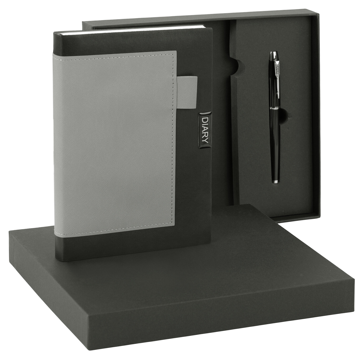 Ежедневник в наборе с ручкой А5, 144x210 мм, BRAUBERG "Style" под кожу, 160 листов, черный Код товара: 116860 811,09 ₽ Купить Производитель:BRAUBERG Недатированный ежедневник в подарочном наборе BRAUBERG "Style" – отличный выбор, чтобы порадовать близких. Стильный подарок, где каждая деталь продумана до мелочей, поможет тщательно спланировать важные события и повседневные дела. Подарочный набор включает в себя недатированный ежедневник с внутренним блоком из 160 листов кремовой бумаги плотностью 70 г/м2. Каждая страничка имеет перфорированный угол. Благодаря классическому формату А5 (144x210 мм) ежедневник удобно использовать как в офисе, так и на выездных деловых встречах. Гибкая обложка стилизована под текстурную кожу. Дополнениями являются закладка-ляссе и держатель для ручки. Ручка со стильным корпусом в тон ежедневника и высококачественными чернилами также входит в набор. Набор упакован в плотную подарочную картонную коробку. Все элементы набора выполнены в схожих оттенках.Производство: КитайСерия: StyleКоличество предметов в наборе: 3 шт.Обложка предметов набора: под гладкую кожуКомплектация: недатированный ежедневник A5, подарочная коробка, ручкаЦвет среза: нетЦвет: черныйПодходит для персонализации: горячее тиснениеТип ежедневника: недатированныйПодарочная коробка, покрытая дизайнерской бумагой: даВнутри подарочной коробки: ложемент из ЭВА (EVA)Срок годности: 60 месВес: 770 грРазмер упаковки: 5.1 × 26.7 × 23.6 смОбъём: 0.0037 м3Промежуточная упаковка: 20 штТранспортная упаковка: 20 штШтрих-код: 4606224478807 Файлы Сертификат-1.jpg Сертификат-2.jpg Сертификат-3.jpg Сертификат-4.jpg Сертификат-5.jpg Сертификат-6.jpg Сертификат-7.jpg Сертификат-8.jpg Сертификат-9.jpg Сертификат-10.jpg Сертификат-11.jpg Сертификат-12.jpg Сертификат-13.jpg Сертификат-14.jpg Сертификат-15.jpg Сертификат-16.jpg Сертификат-17.jpg Сертификат-18.jpg Сертификат-19.jpg Сертификат-20.jpg Сертификат-21.jpg Сертификат-22.jpg Сертификат-23.jpg Сертификат-24.jpg Сертификат-25.jpg Сертификат-26.jpg