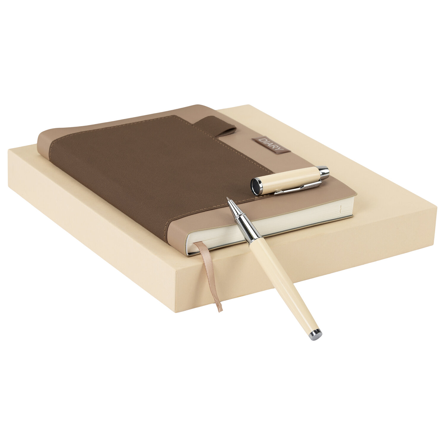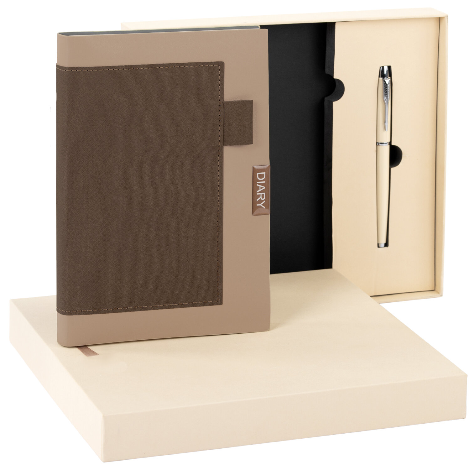 Ежедневник в наборе с ручкой А5, 144x210 мм, BRAUBERG "Style" под кожу, 160 листов, бежевый Код товара: 116861 811,09 ₽ Купить Производитель:BRAUBERG Недатированный ежедневник в подарочном наборе BRAUBERG "Style" – отличный выбор, чтобы порадовать близких. Стильный подарок, где каждая деталь продумана до мелочей, поможет тщательно спланировать важные события и повседневные дела. Подарочный набор включает в себя недатированный ежедневник с внутренним блоком из 160 листов кремовой бумаги плотностью 70 г/м2. Каждая страничка имеет перфорированный угол. Благодаря классическому формату А5 (144x210 мм) ежедневник удобно использовать как в офисе, так и на выездных деловых встречах. Гибкая обложка стилизована под текстурную кожу. Дополнениями являются закладка-ляссе и держатель для ручки. Ручка со стильным корпусом в тон ежедневника и высококачественными чернилами также входит в набор. Набор упакован в плотную подарочную картонную коробку. Все элементы набора выполнены в схожих оттенках.Производство: КитайСерия: StyleКоличество предметов в наборе: 3 шт.Обложка предметов набора: под гладкую кожуКомплектация: недатированный ежедневник A5, подарочная коробка, ручкаЦвет среза: нетЦвет: бежевыйПодходит для персонализации: горячее тиснениеТип ежедневника: недатированныйПодарочная коробка, покрытая дизайнерской бумагой: даВнутри подарочной коробки: ложемент из ЭВА (EVA)Срок годности: 60 месВес: 773 грРазмер упаковки: 5 × 26.7 × 23.6 смОбъём: 0.0037 м3Промежуточная упаковка: 20 штТранспортная упаковка: 20 штШтрих-код: 4606224478814 Файлы Сертификат-1.jpg Сертификат-2.jpg Сертификат-3.jpg Сертификат-4.jpg Сертификат-5.jpg Сертификат-6.jpg Сертификат-7.jpg Сертификат-8.jpg Сертификат-9.jpg Сертификат-10.jpg Сертификат-11.jpg Сертификат-12.jpg Сертификат-13.jpg Сертификат-14.jpg Сертификат-15.jpg Сертификат-16.jpg Сертификат-17.jpg Сертификат-18.jpg Сертификат-19.jpg Сертификат-20.jpg Сертификат-21.jpg Сертификат-22.jpg Сертификат-23.jpg Сертификат-24.jpg Сертификат-25.jpg Сертификат-26.jpg
