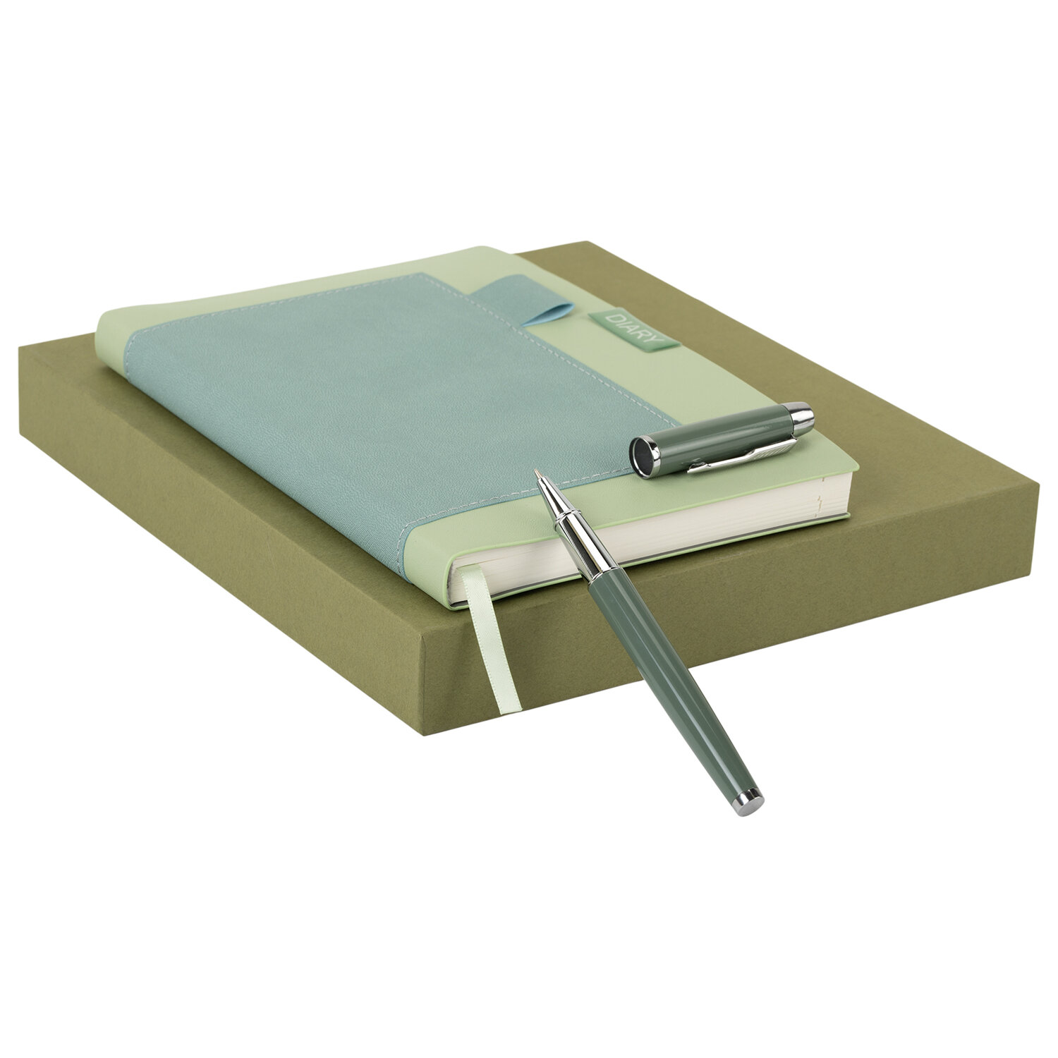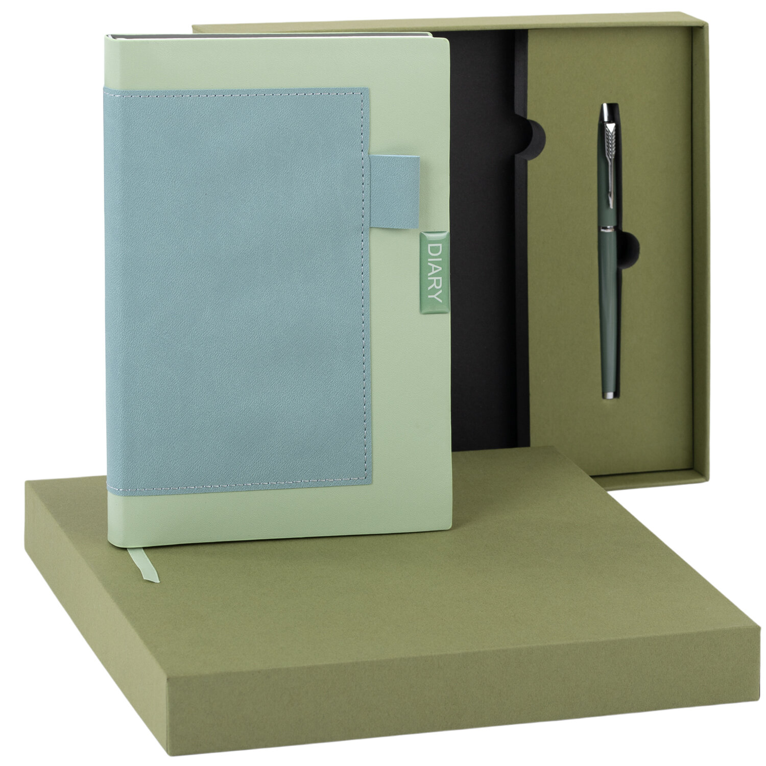Ежедневник в наборе с ручкой А5, 144x210 мм, BRAUBERG "Style" под кожу, 160 листов, зелёный Код товара: 116863 811,09 ₽ Купить Производитель:BRAUBERG Недатированный ежедневник в подарочном наборе BRAUBERG "Style" – отличный выбор, чтобы порадовать близких. Стильный подарок, где каждая деталь продумана до мелочей, поможет тщательно спланировать важные события и повседневные дела. Подарочный набор включает в себя недатированный ежедневник с внутренним блоком из 160 листов кремовой бумаги плотностью 70 г/м2. Каждая страничка имеет перфорированный угол. Благодаря классическому формату А5 (144x210 мм) ежедневник удобно использовать как в офисе, так и на выездных деловых встречах. Гибкая обложка стилизована под текстурную кожу. Дополнениями являются закладка-ляссе и держатель для ручки. Ручка со стильным корпусом в тон ежедневника и высококачественными чернилами также входит в набор. Набор упакован в плотную подарочную картонную коробку. Все элементы набора выполнены в схожих оттенках.Производство: КитайСерия: StyleКоличество предметов в наборе: 3 шт.Обложка предметов набора: под гладкую кожуКомплектация: недатированный ежедневник A5, подарочная коробка, ручкаЦвет среза: нетЦвет: зеленыйПодходит для персонализации: горячее тиснениеТип ежедневника: недатированныйПодарочная коробка, покрытая дизайнерской бумагой: даВнутри подарочной коробки: ложемент из ЭВА (EVA)Срок годности: 60 месВес: 770 грРазмер упаковки: 5.2 × 26.5 × 23.5 смОбъём: 0.0037 м3Промежуточная упаковка: 20 штТранспортная упаковка: 20 штШтрих-код: 4606224478838 Файлы Сертификат-1.jpg Сертификат-2.jpg Сертификат-3.jpg Сертификат-4.jpg Сертификат-5.jpg Сертификат-6.jpg Сертификат-7.jpg Сертификат-8.jpg Сертификат-9.jpg Сертификат-10.jpg Сертификат-11.jpg Сертификат-12.jpg Сертификат-13.jpg Сертификат-14.jpg Сертификат-15.jpg Сертификат-16.jpg Сертификат-17.jpg Сертификат-18.jpg Сертификат-19.jpg Сертификат-20.jpg Сертификат-21.jpg Сертификат-22.jpg Сертификат-23.jpg Сертификат-24.jpg Сертификат-25.jpg Сертификат-26.jpg