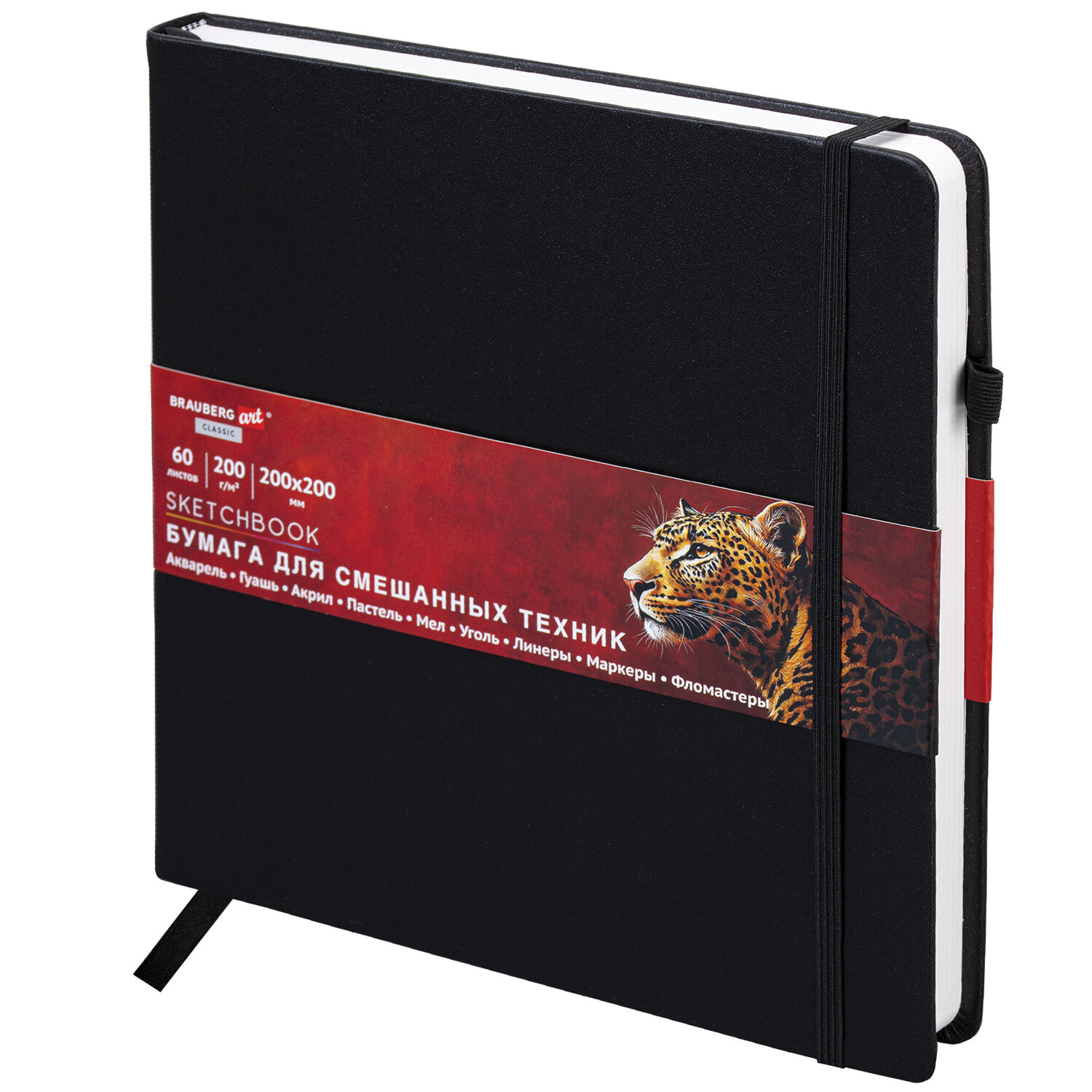 Скетчбук для смешанных техник MixMedia, 200 г/м2, 200х200 мм, 60 л., КОЖЗАМ, резинка, BRAUBERG ART CLASSIC Код товара: 116970 438,69 ₽ Купить Производитель:BRAUBERG Скетчбук BRAUBERG ART "CLASSIC" для смешанных техник. Внутренний блок – специальная художественная бумага белого цвета. Подходит для работы с широким спектром графических материалов (акварель, гуашь, акрил, маркеры, фломастеры и прочие). Скетчбук BRAUBERG ART "CLASSIC" подходит для эскизов, графики, набросков, каллиграфии, леттеринга, скетчинга и записей. Утонченный, компактный скетчбук с жесткой обложкой, покрытой материалом, стилизованным под гладкую кожу. Внутренний блок – 60 листов специальной художественной белой бумаги плотностью 200 г/м2. Подходит для работы с широким спектром материалов. Благодаря компактному формату его можно носить с собой, а жесткая обложка станет верным подспорьем для рисования на весу. Дополнением является закладка-ляссе, с помощью которой при необходимости можно быстро открыть скетчбук на нужной странице. Имеется держатель для ручки или карандаша, а эластичная резинка надежно сбережет листы от замятия и случайного раскрытия. Скетчбук станет прекрасным выбором для любителей и профессионалов, студентов и школьников, художников и дизайнеров.Производство: КитайТип товара: блокнот (скетчбук)Серия: ClassicВид работ: для зарисовок, эскизов, рисованияКоличество листов: 60Формат: квадратШирина: 200 ммДлина: 200 ммДизайн: ОднотонныйОбложка: твердый переплетВнутренний блок: художественная бумагаЦвет внутреннего блока: белыйПлотность внутреннего блока: 200 г/м2Жесткая подложка: даТип скрепления: книжный переплетБез кислот: даЦвет обложки: черныйИндивидуальная упаковка: даВес: 643 грРазмер упаковки: 2.4 × 20.5 × 20.9 смОбъём: 0.0012 м3Промежуточная упаковка: 24 штТранспортная упаковка: 24 штШтрих-код: 4606224508177 Сертификат-1.jpg Сертификат-2.jpg Сертификат-3.jpg