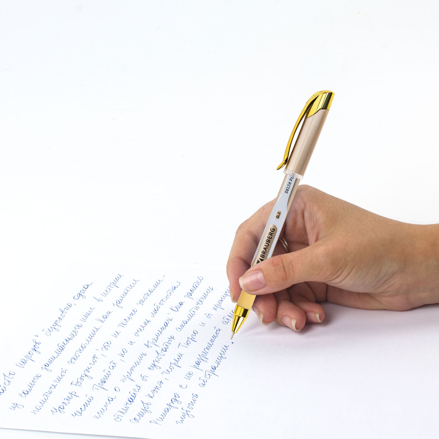 Ручка шариковая масляная с грипом BRAUBERG "Delta Plus Gold", СИНЯЯ, пишущий узел 0,7 мм, линия письма 0,35 мм Код товара: 144256 68,68 ₽ Купить Производитель:BRAUBERG Шариковая масляная ручка с грипом BRAUBERG "Delta Plus Gold" – истинное воплощение стиля и функциональности! Шариковая масляная ручка с грипом BRAUBERG "Delta Plus Gold" представлена в насыщенном золотистом дизайне и динамичном, лаконичном корпусе, привлекая внимание и создавая ощущение премиальности в каждом штрихе. Обеспечьте себе максимальный комфорт благодаря эргономичному резиновому грипу, который гарантирует надежный захват и позволяет писать длительное время без усталости. Специальная технология "FEEL INK" обеспечивает плавное, легкое и четкое письмо без лишних усилий. Забудьте о пропусках или неравномерных линиях – каждое ваше слово будет идеально точным и аккуратным. Игольчатый наконечник диаметром 0,7 мм обеспечивает тонкую линию письма всего 0,35 мм – идеально для деловых записей, подписи документов и детальной прорисовки. Насыщенный синий цвет чернил придаст вашему письму яркость и профессиональный вид.Производство: ИндияЦвет чернил: синийКоличество в комплекте: 1 шт.Толщина линии письма: 0.35 ммДиаметр пишущего узла: 0.7 ммЧернила на масляной основе: даФорма наконечника: игольчатыйДлина сменного стержня: 132 ммСерия: Delta PlusСтиль: для офиса и учебыЭргономичная зона захвата: резиновый держательЦвет корпуса: белый/золотойДлина письма: 1200 мДизайн: нетФорма корпуса: круглаяУпаковка: картонная коробкаСрок годности: 60 месВес: 12 грРазмер упаковки: 1.1 × 14.2 × 1.5 смПромежуточная упаковка: 12 штТранспортная упаковка: 1200 штШтрих-код: 4606224447131 Сертификат-1.jpg Сертификат-2.jpg Сертификат-3.jpg