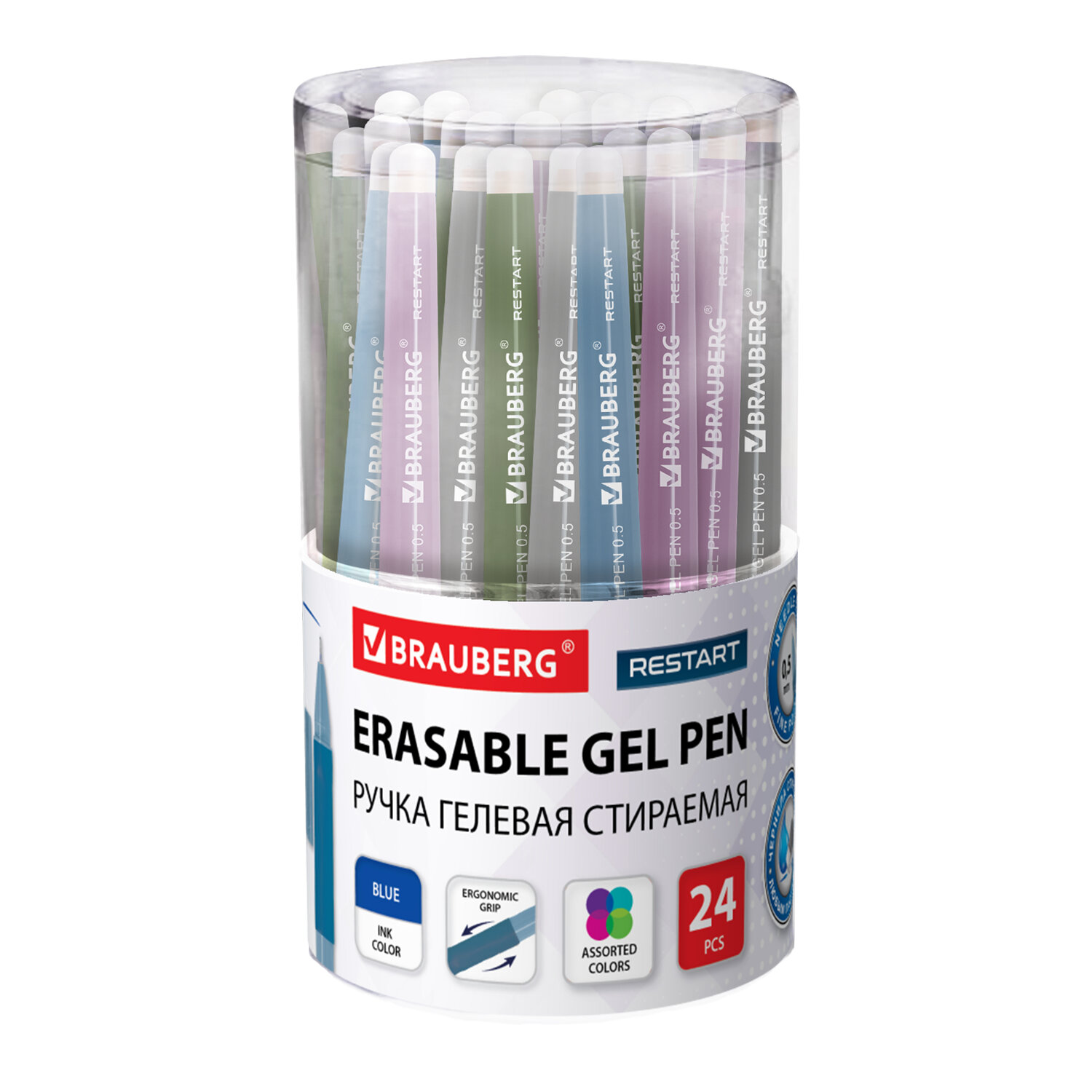 Ручка стираемая гелевая с эргономичным грипом BRAUBERG "RESTART MORANDI", СИНЯЯ, игольчатый пишущий узел 0,5 мм, линия письма 0,25мм Код товара: 144416 63,96 ₽ Купить Производитель:BRAUBERG Стираемая гелевая ручка BRAUBERG "RESTART MORANDI" обладает уникальным сочетанием ярких обесцвечивающихся термочернил, стильного дизайна и высочайшего качества исполнения. Ручка представлена в корпусе ассорти в стильных оттенках: голубой, графитовый, зеленый, сиреневый. Корпус дополнен с эргономичной зоной захвата для комфортного и длительного использования. Пишет специальными гелевыми чернилами синего цвета. Снабжена ластиком для удаления надписей. При письме и стирании ручка не повреждает бумагу, а исправления остаются незаметными. Диаметр пишущего узла 0,5 мм создает тонкую линию письма, равную 0,25 мм.Производство: КитайЦвет чернил: синийКоличество в комплекте: 1 шт.Толщина линии письма: 0.25 ммФорма наконечника: игольчатыйСерия: RESTARTТип ручки: гелеваяСтираемые чернила: даДиаметр пишущего узла: 0.5 ммСтирание чернил: стирательной резинкойДлина сменного стержня: 131 ммКомплектация: без запасных стержнейЦвет корпуса: ассортиФорма корпуса: круглаяПокрытие корпуса: -Эргономичная зона захвата: эргономичный держательУпаковка: пластиковая тубаСрок годности: 60 месВес: 9 грРазмер упаковки: 1 × 15.8 × 1.4 смПромежуточная упаковка: 24 штТранспортная упаковка: 1728 штШтрих-код: 4606224470115