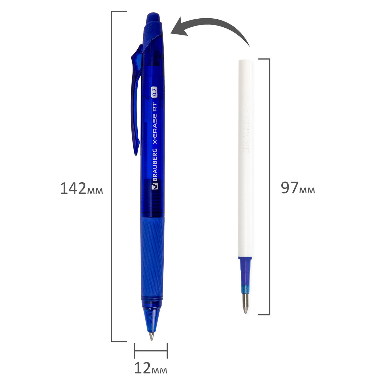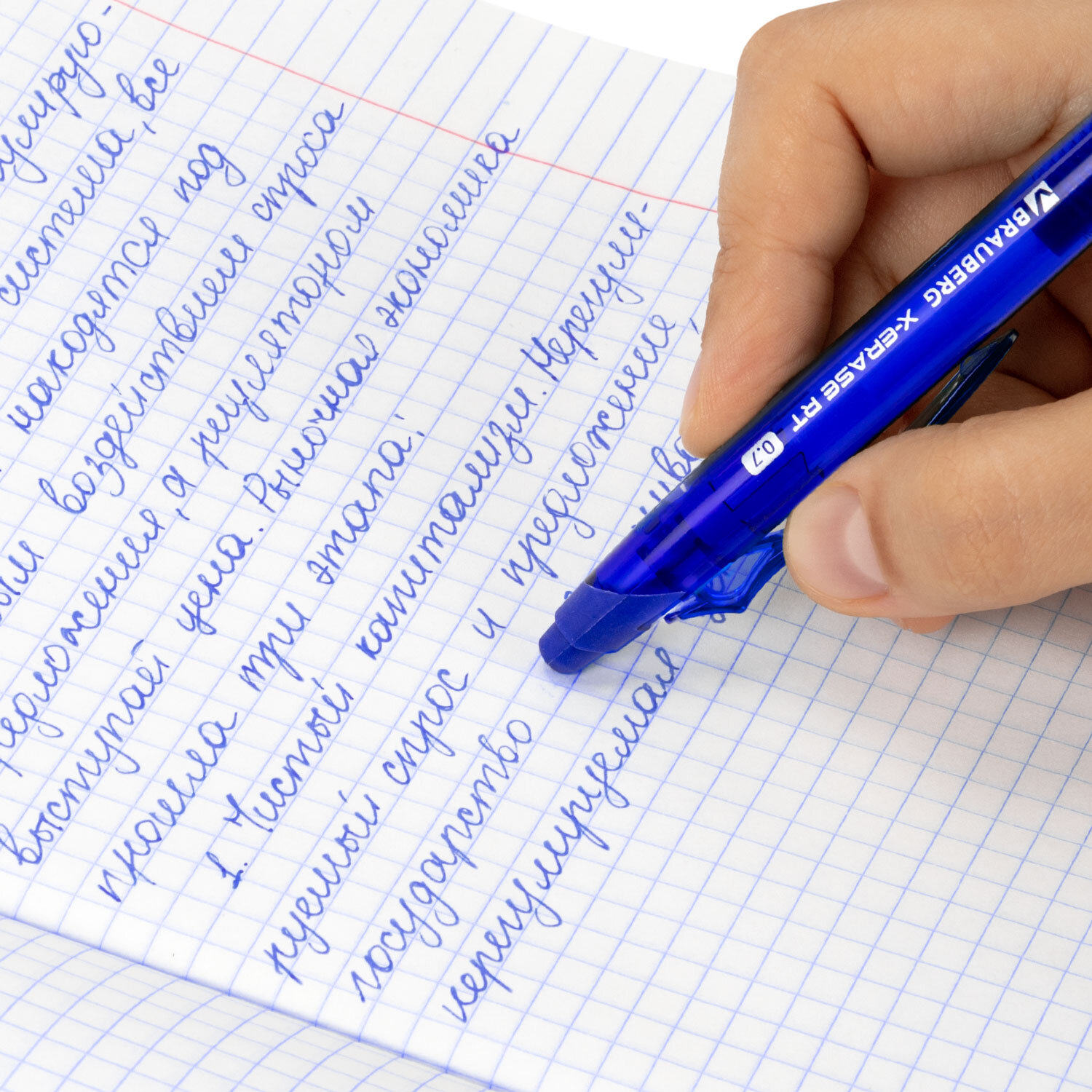 Ручка гелевая стираемая автоматическая BRAUBERG "X-ERASE RT", СИНЯЯ, пишущий узел 0,7 мм, линия письма 0,5 мм Код товара: 144423 79,4 ₽ Купить Производитель:BRAUBERG Автоматическая гелевая стираемая ручка BRAUBERG "X-ERASE RT" – ваш надежный помощник в создании чистых и аккуратных заметок без ограничений. Автоматическая гелевая ручка BRAUBERG "X-ERASE RT" позволяет писать синими чернилами линией толщиной 0,5 мм и с пишущим узлом 0,7 мм. Специальные гелевые чернила становятся невидимыми при нагревании до 60 °С и выше. Написанное можно восстановить при температуре ниже -18 °С. В ручку встроен ластик, что обеспечивает возможность многократного стирания и повторного письма. Записи также можно стереть любым другим ластиком. Удобная прорезиненная зона захвата гарантирует комфорт при использовании, а классический синий корпус придает стилю профессиональный вид.Производство: КитайЦвет чернил: синийКоличество в комплекте: 1 шт.Толщина линии письма: 0.5 ммФорма наконечника: стандартныйАвтоматическая: даСерия: X-ERASE RTТип ручки: гелеваяСтираемые чернила: даДиаметр пишущего узла: 0.7 ммСтирание чернил: стирательной резинкойДлина сменного стержня: 97 ммКомплектация: без запасных стержнейЦвет корпуса: синийФорма корпуса: круглаяПокрытие корпуса: -Эргономичная зона захвата: резиновый держательУпаковка: картонная коробкаСрок годности: 60 месВес: 12 грРазмер упаковки: 1.1 × 14 × 1.5 смПромежуточная упаковка: 12 штТранспортная упаковка: 1152 штШтрих-код: 4606224480671 Сертификат-1.jpg Сертификат-2.jpg Сертификат-3.jpg