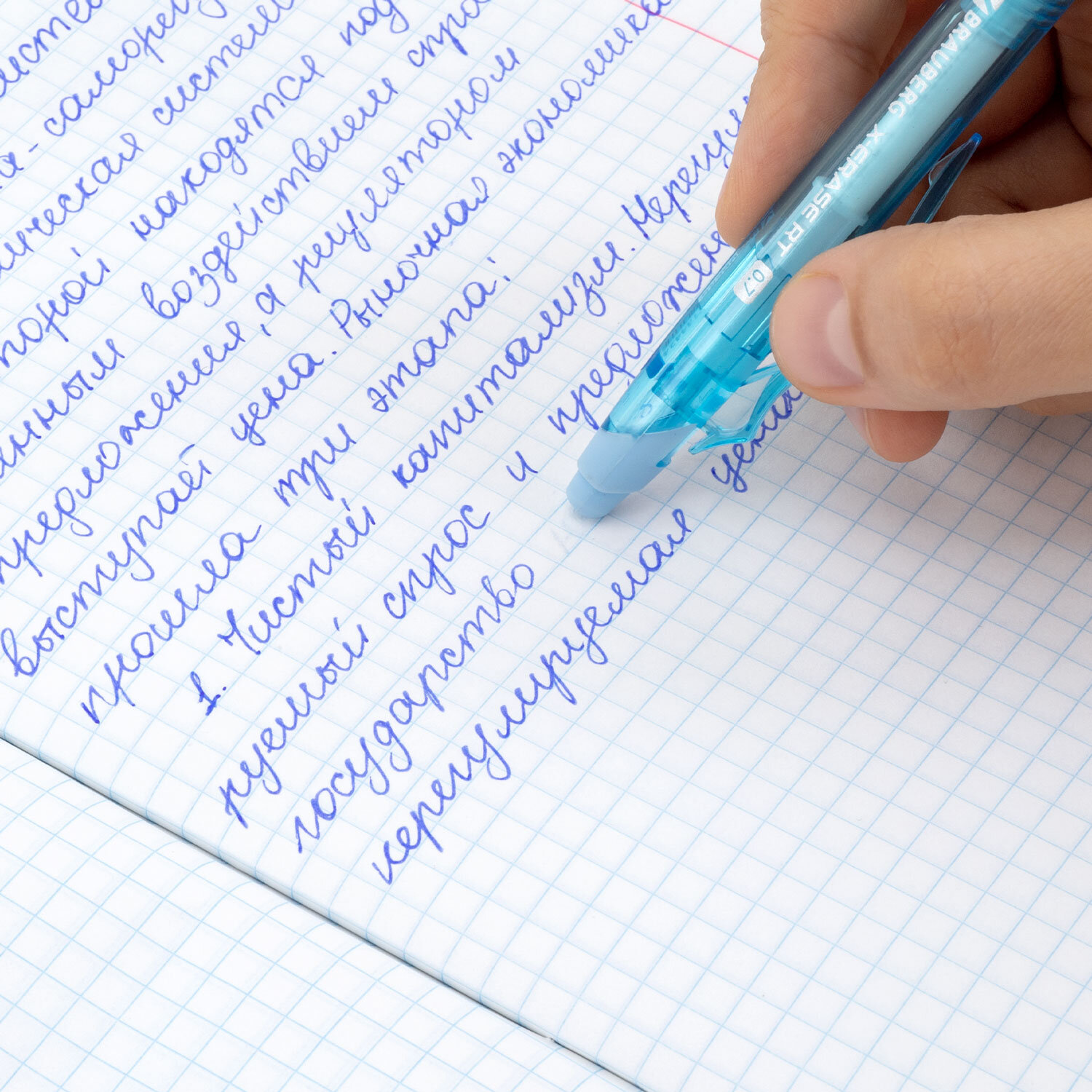Ручка гелевая стираемая автоматическая BRAUBERG "X-ERASE RT PASTEL COLOR", СИНЯЯ, пишущий узел 0,7 мм, линия письма 0,5 мм Код товара: 144424 82,13 ₽ Купить Производитель:BRAUBERG Автоматическая гелевая стираемая ручка BRAUBERG "X-ERASE RT PASTEL COLOR" – ваш надежный помощник в создании чистых и аккуратных заметок без ограничений. Автоматическая гелевая ручка BRAUBERG "X-ERASE RT" позволяет писать синими чернилами с линией толщиной 0,5 мм и с пишущим узлом 0,7 мм. Специальные гелевые чернила становятся невидимыми при нагревании до 60 °С и выше. Написанное можно восстановить при температуре ниже -18 °С. В ручку встроен ластик, что обеспечивает возможность многократного стирания и повторного письма. Записи также можно стереть любым другим ластиком. Удобная прорезиненная зона захвата гарантирует комфорт при использовании. Ассорти из 4 пастельных цветов: бирюзовый, нежно-розовый, салатовый, голубой.Производство: КитайЦвет чернил: синийКоличество в комплекте: 1 шт.Толщина линии письма: 0.5 ммФорма наконечника: стандартныйАвтоматическая: даСерия: X-ERASE RTТип ручки: гелеваяСтираемые чернила: даДиаметр пишущего узла: 0.7 ммСтирание чернил: стирательной резинкойДлина сменного стержня: 97 ммКомплектация: без запасных стержнейЦвет корпуса: пастельный ассортиФорма корпуса: круглаяПокрытие корпуса: -Эргономичная зона захвата: резиновый держательУпаковка: пластиковая тубаСрок годности: 60 месВес: 12 грРазмер упаковки: 1.1 × 14.1 × 1.5 смОбъём: 0.0001 м3Промежуточная упаковка: 24 штТранспортная упаковка: 1152 штШтрих-код: 4606224480688 Сертификат-1.jpg Сертификат-2.jpg Сертификат-3.jpg