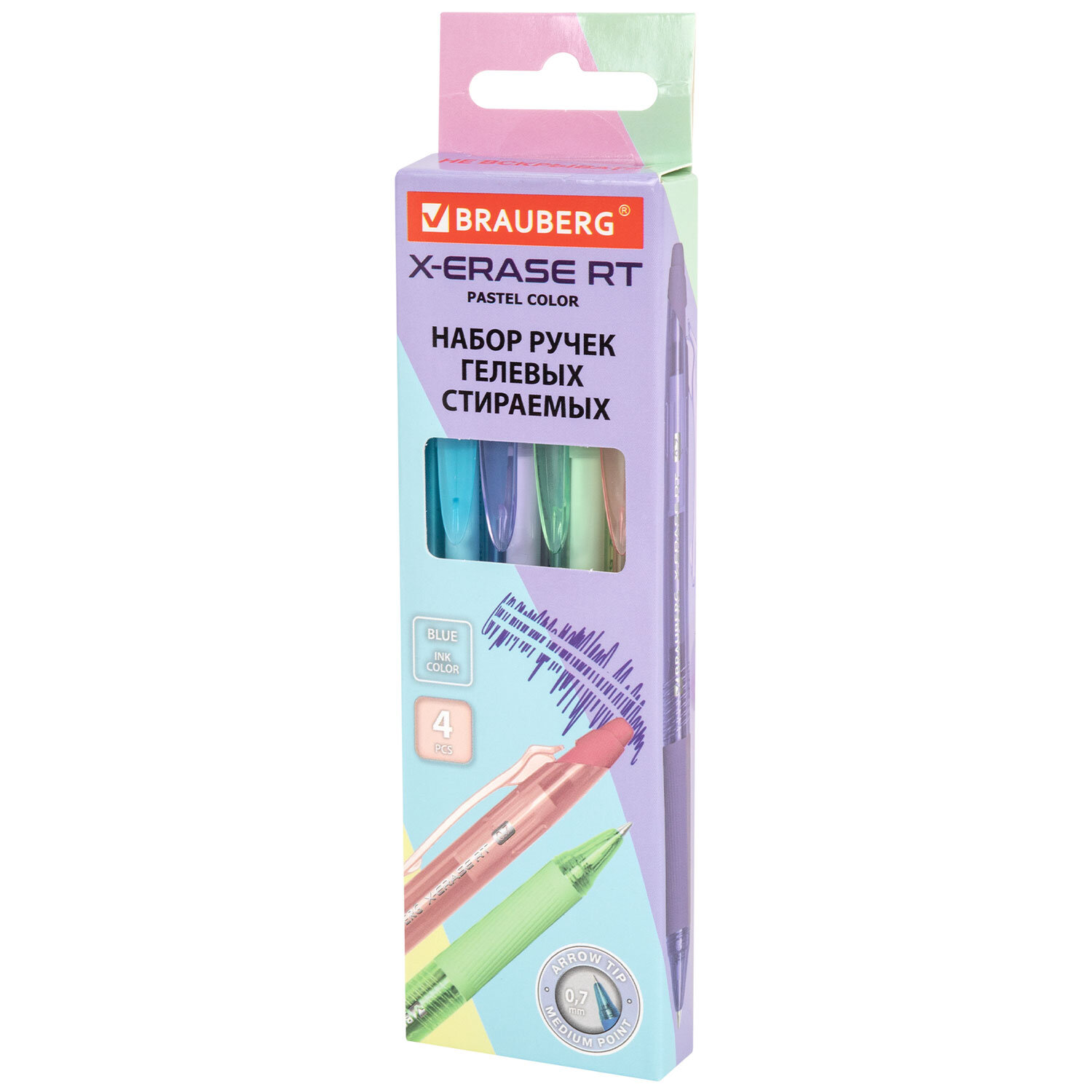 Ручки гелевые стираемые автоматические BRAUBERG "X-ERASE RT PASTEL COLOR", СИНИЕ, НАБОР 4 ШТ., пишущий узел 0,7 мм, линия 0,5 мм Код товара: 144426 374,66 ₽ Купить Производитель:BRAUBERG Набор автоматических гелевых стираемых ручек BRAUBERG "X-ERASE RT PASTEL COLOR" – ваш надежный помощник в создании чистых и аккуратных заметок без ограничений. Набор из 4 автоматических гелевых ручек BRAUBERG "X-ERASE RT PASTEL COLOR" позволяет писать синими чернилами с линией толщиной 0,5 мм и с пишущим узлом 0,7 мм. Специальные гелевые чернила становятся невидимыми при нагревании до 60 °С и выше. Написанное можно восстановить при температуре ниже -18 °С. В ручку встроен ластик, что обеспечивает возможность многократного стирания и повторного письма. Записи также можно стереть любым другим ластиком. Удобная прорезиненная зона захвата гарантирует комфорт при использовании. В наборе представлены 4 приятных глазу пастельных цвета: бирюзовый, нежно-розовый, салатовый, голубой.Производство: КитайЦвет чернил: синийКоличество в комплекте: 4 шт.Толщина линии письма: 0.5 ммФорма наконечника: стандартныйАвтоматическая: даСерия: X-ERASE RTТип ручки: гелеваяСтираемые чернила: даДиаметр пишущего узла: 0.7 ммСтирание чернил: стирательной резинкойДлина сменного стержня: 97 ммКомплектация: без запасных стержнейЦвет корпуса: пастельный ассортиФорма корпуса: круглаяПокрытие корпуса: -Эргономичная зона захвата: резиновый держательУпаковка: картонная коробкаСрок годности: 60 месВес: 54 грРазмер упаковки: 1.7 × 17.1 × 4.7 смОбъём: 0.0002 м3Промежуточная упаковка: 12 штТранспортная упаковка: 144 штШтрих-код: 4606224480701 Сертификат-1.jpg Сертификат-2.jpg Сертификат-3.jpg