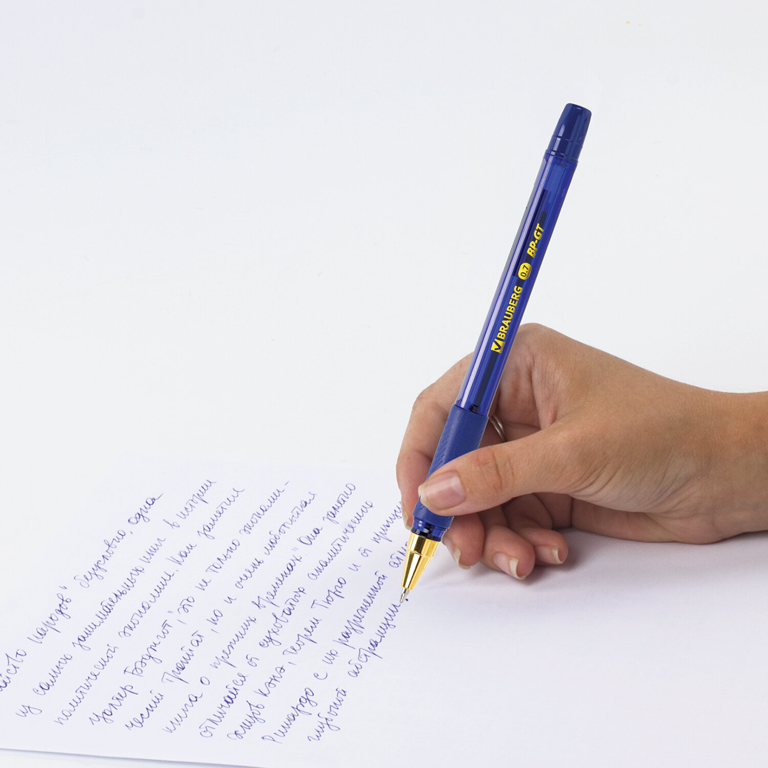 Ручка шариковая BRAUBERG BP-GT GLD BLUE, СИНЯЯ, корпус тонированный, пишущий узел 0,7 мм, линия письма 0,35 мм Код товара: 144505 42,9 ₽ Купить Производитель:BRAUBERG Шариковая ручка BRAUBERG "BP-GT GLD BLUE" сочетает в себе эргономичный, функциональный корпус и классический дизайн. Шестигранный корпус ручки с ярко выраженными четырьмя гранями позволяет ручке комфортно располагаться в руке. Резиновая зона захвата эргономичной формы с фактурными деталями для комфортного долгого письма исключает скольжение пальцев. Чернила c технологией "ultra-smooth" гарантируют лёгкое и четкое письмо без усилий. Диаметр пишущего узла 0,7 мм позволяет писать тонко и четко. Корпус темно-синего цвета и золотые детали гармонично дополняют друг друга.Производство: КитайЦвет чернил: синийКоличество в комплекте: 1 шт.Толщина линии письма: 0.35 ммДиаметр пишущего узла: 0.7 ммЧернила на масляной основе: даФорма наконечника: стандартныйДлина сменного стержня: 140 ммСерия: BP-GTСтиль: для офиса и учебыЭргономичная зона захвата: резиновый держательЦвет корпуса: синийДлина письма: 1500 мДизайн: нетФорма корпуса: шестиграннаяУпаковка: картонная коробкаСрок годности: 60 месВес: 10 грРазмер упаковки: 1.1 × 15.5 × 1.5 смПромежуточная упаковка: 12 штТранспортная упаковка: 864 штШтрих-код: 4606224493046 Файлы Сертификат-1.jpg Сертификат-2.jpg Сертификат-3.jpg Сертификат-4.jpg