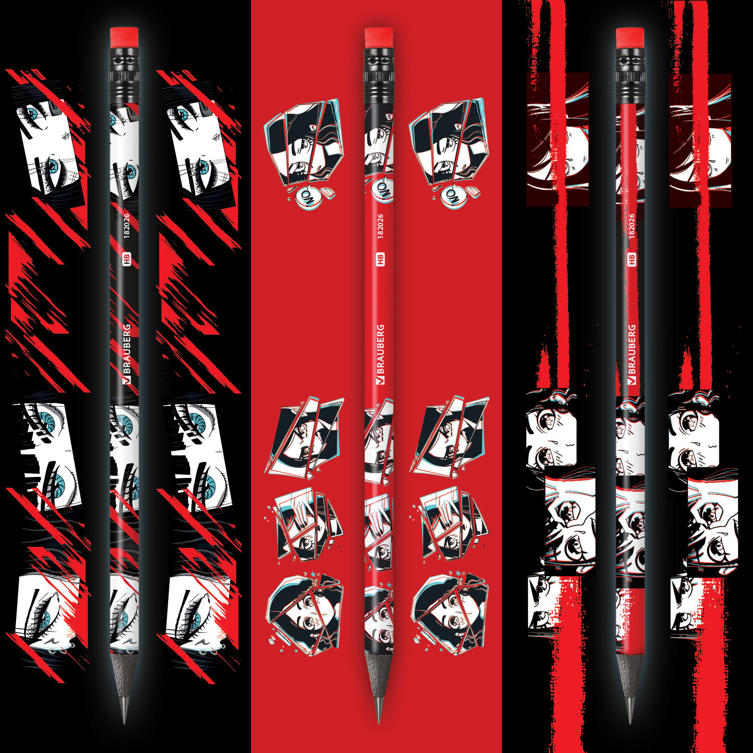Карандаш чернографитный с принтом BRAUBERG "RED ANIME", 1 шт., HB, с ластиком, корпус ассорти Код товара: 182026 11,36 ₽ Купить Производитель:BRAUBERG Карандаш чернографитный BRAUBERG "RED ANIME" – первый помощник при выполнения различных заметок. Позволяет сделать легкий набросок или даже нарисовать полноценную картину. Используется повсеместно. Легко затачивается, максимально устойчив к повреждениям. Изготовлен из пластика высокого качества. Имеет круглое сечение и оснащен красным ластиком. Карандаш длиной 190 мм обладает средней степенью твердости – HB. Корпус представлен в трёх вариантах дизайна с изображением аниме-персонажей. Каждый карандаш имеет индивидуальный штрих-код. Поставляется заточенным в пластиковой тубе по 36 штук.Производство: КитайТвердость: HBЗаточенный: даНаличие ластика: даДиаметр грифеля: 2 ммКоличество карандашей в упаковке: 1 шт.Количество твердостей в наборе: 1Серия: PrintФорма корпуса: круглаяУдаропрочный грифель: даДлина карандаша: 190 ммМатериал корпуса: пластикЦвет корпуса: ассортиДизайн: Red AnimeКоличество дизайнов в упаковке: 3 шт.Упаковка: пластиковая тубаВес: 10 грРазмер упаковки: 0.7 × 18.8 × 0.7 смПромежуточная упаковка: 36 штТранспортная упаковка: 2304 штШтрих-код: 4606224444871 Сертификат-1.jpg Сертификат-2.jpg Сертификат-3.jpg