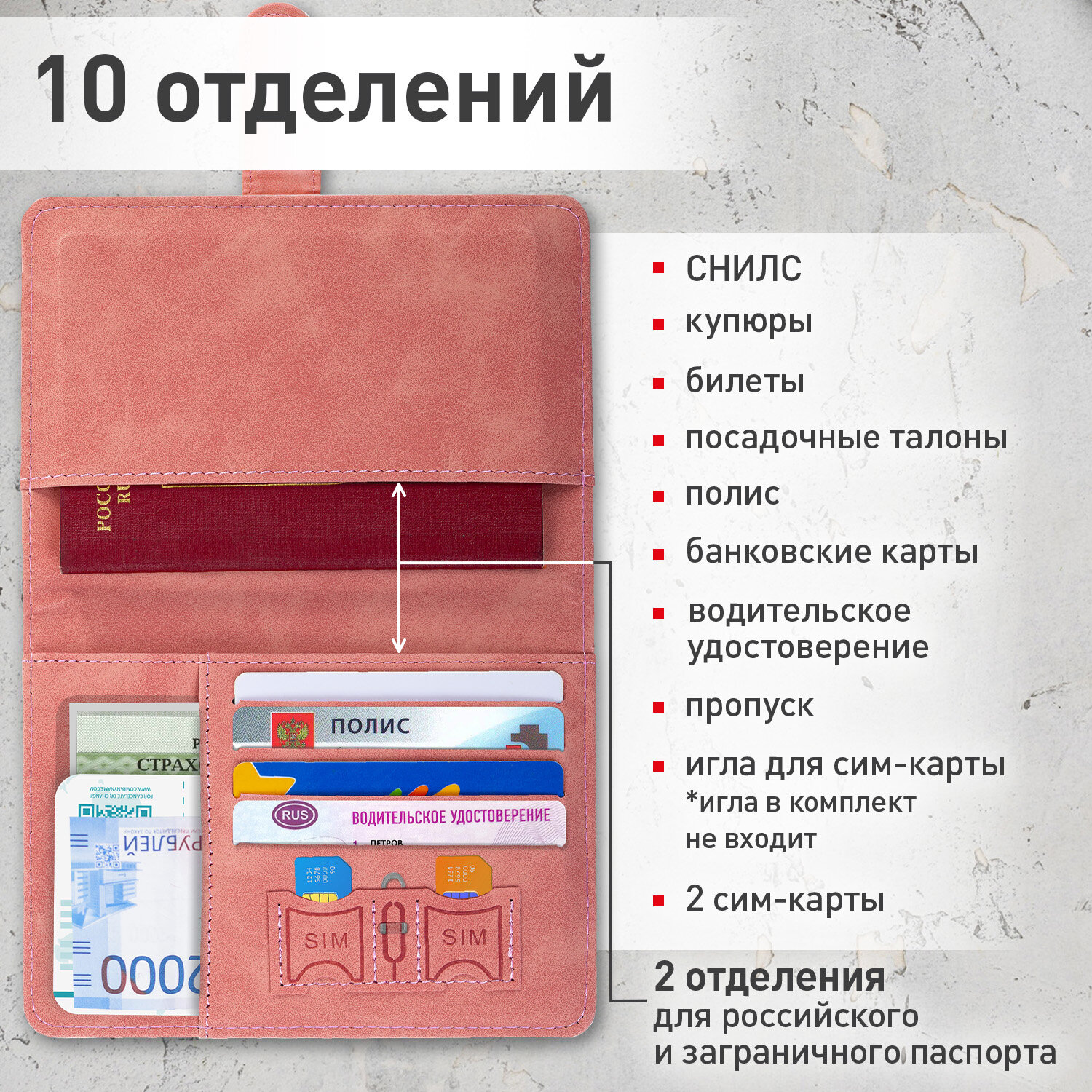 Обложка для паспорта и документов с защитой от считывания, 9 карманов, магнит, экокожа, розовая, BRAUBERG, 238755 Код товара: 238755 297,99 ₽ Купить Производитель:BRAUBERG Обложка для паспорта BRAUBERG защитит документ от износа и загрязнений, сохраняя его аккуратный внешний вид. Модель выполнена из экокожи розового цвета c приятной на ощупь soft touch-поверхностью и украшена тиснением в виде надписи "Passport", силуэта самолета и карты мира. На внутреннем развороте расположены 9 карманов: 1) Основной карман для паспорта - подходит как для российского, так и для заграничного; 2) Карман для купюр или посадочных билетов; 3) Карманы для карт - 4 шт.; 4) Отделения для сим-карт - 2 шт. + 1 слот для иглы сим-карты. Обложка оснащена RFID защитой - специальной подкладкой, которая блокирует внешний сигнал и препятствует считыванию данных с карт. Важным преимуществом является то, что обложка плотно закрывается благодаря магнитной застежке. Этот многофункциональный аксессуар удобен в путешествиях и повседневной жизни, позволяя хранить все важные документы в одном месте.Производство: КитайМатериал: экокожаСерия: soft-touchТиснение: "Passport", самолет, карта мираРасположение: вертикальноеДизайн: на магнитной застежкеКоличество карманов из прозрачного пластика: 0 шт.Количество карманов из технологичного материала: 0 шт.Количество карманов из кожи: 9 шт.Длина: 149 ммШирина: 106 ммЦвет: розовыйВес: 81 грРазмер упаковки: 2 × 15 × 10.9 смОбъём: 0.0004 м3Промежуточная упаковка: 100 штТранспортная упаковка: 100 штШтрих-код: 4606224458373 Сертификат-1.jpg Сертификат-2.jpg Сертификат-3.jpg