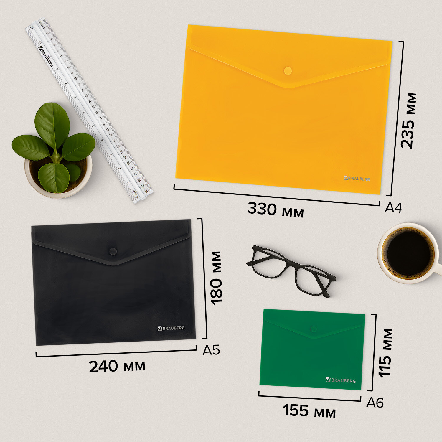 Папка-конверт с кнопкой КОМПЛЕКТ 15 шт., А4, А5, А6 по 5 шт., цвета ассорти, BRAUBERG, 0,18 мм, 272867 Код товара: 272867 405,6 ₽ Купить Производитель:BRAUBERG Папка с кнопкой BRAUBERG – универсальная модель для хранения, транспортировки и защиты документов и мелких предметов от негативных внешних факторов. Станет незаменимым помощником для школьников, студентов, офисных работников и творческих людей. Папки-конверты с гладкой фактурой формата А4 (330х235 мм), А5 (240х180 мм) и А6 (155х115 мм) изготовлены из плотного непрозрачного пластика. Цвета – ассорти, толщина – 180 мкм. Закрываются на защелку-кнопку, что делает удобным частое использование и обеспечивает быстрый доступ к содержимому. Папка способна вместить от 50 до 100 листов стандартной плотности (зависит от формата папки).Производство: КитайФормат: А4, A5, A6Ориентация: горизонтальнаяВмещает до: 100 листовФактура: гладкаяТип пластика: непрозрачныйСерия: SetДизайн: ассортиКоличество в комплекте: 15 шт.Толщина пластика: 180 мкмТип замка: кнопкаЦвет: ассортиВысота: 330 ммШирина: 235 ммГлубина: 0.36 ммМатериал: полипропиленВес: 272 грРазмер упаковки: 2.2 × 33.4 × 23.7 смОбъём: 0.0017 м3Промежуточная упаковка: 24 штТранспортная упаковка: 24 штШтрих-код: 4606224450865 Файлы Сертификат-1.jpg Сертификат-2.jpg Сертификат-3.jpg Сертификат-4.jpg Сертификат-5.jpg Сертификат-6.jpg Сертификат-7.jpg Сертификат-8.jpg Сертификат-9.jpg Сертификат-10.jpg Сертификат-11.jpg Сертификат-12.jpg Сертификат-13.jpg Сертификат-14.jpg Сертификат-15.jpg Сертификат-16.jpg Сертификат-17.jpg Сертификат-18.jpg Сертификат-19.jpg Сертификат-20.jpg Сертификат-21.jpg Сертификат-22.jpg Сертификат-23.jpg Сертификат-24.jpg Сертификат-25.jpg Сертификат-26.jpg