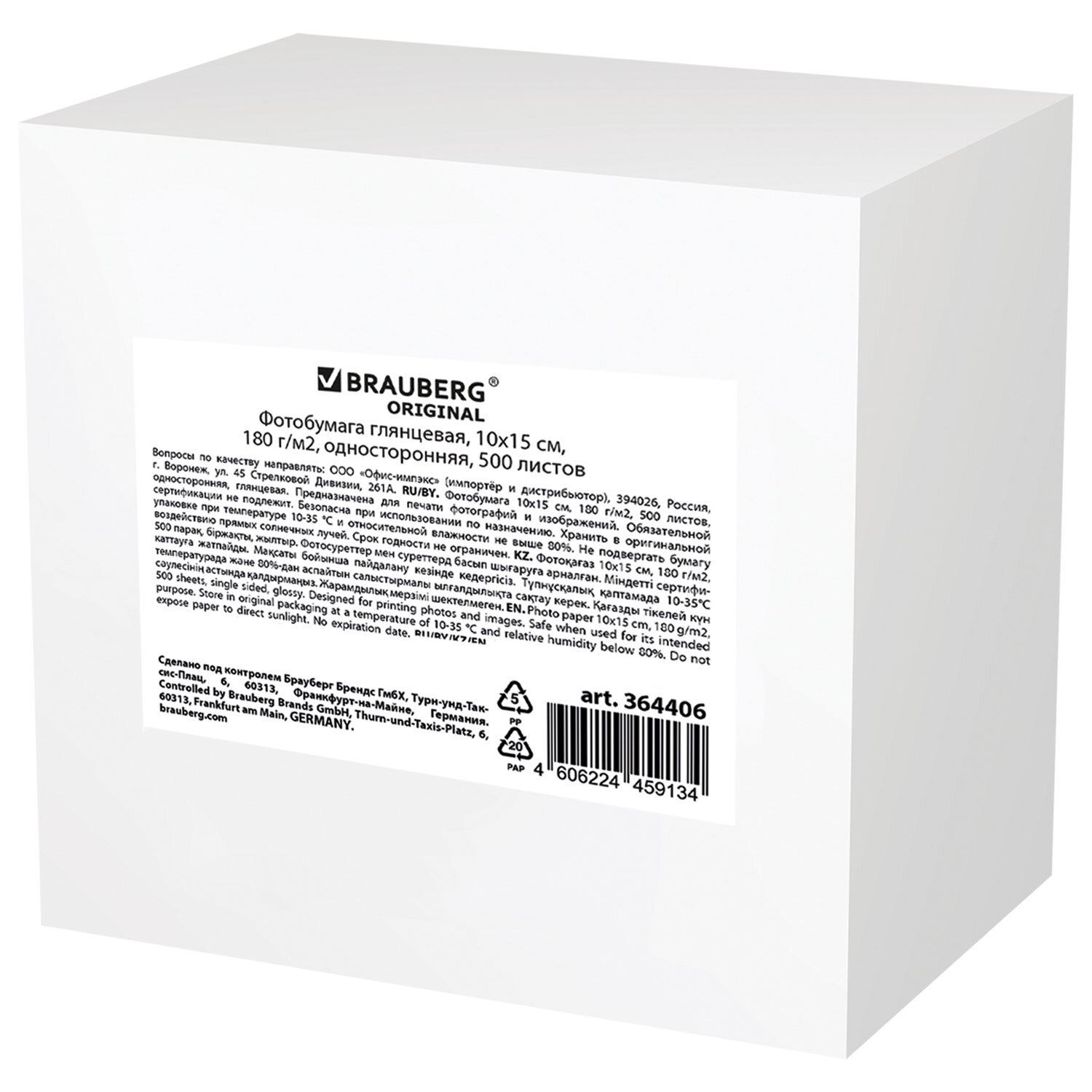 Фотобумага глянцевая, 10х15 см, 180 г/м2, односторонняя, 500 листов, BRAUBERG ORIGINAL Код товара: 364406 744,01 ₽ Купить Производитель:BRAUBERG Глянцевая односторонняя фотобумага BRAUBERG подходит для всех типов струйных принтеров. Незаменима для печати ярких фотореалистичных изображений. Передает яркие, насыщенные цвета со множеством оттенков. Имеет формат 10х15 см и плотность 180 г/м2, что исключает просвечивание изображения. Гладкая поверхность обеспечивает превосходное качество, а особый состав – идеальную цветопередачу. Печать возможна только водорастворимыми чернилами. Поставляется по 500 листов в картонной упаковке.Производство: КитайФормат: 10х15Тип поверхности: глянцеваяПлотность: 180 г/м2Серия: ORIGINAL BOXТехнология печати: для струйной печатиКоличество листов в упаковке: 500 шт.Вес: 1,46 кгРазмер упаковки: 10.6 × 15.7 × 12 смОбъём: 0.0027 м3Промежуточная упаковка: 8 штТранспортная упаковка: 8 штШтрих-код: 4606224459134 Файлы Сертификат-1.jpg Сертификат-2.jpg Сертификат-3.jpg Сертификат-4.jpg Сертификат-5.jpg Сертификат-6.jpg Сертификат-7.jpg Сертификат-8.jpg Сертификат-9.jpg Сертификат-10.jpg Сертификат-11.jpg Сертификат-12.jpg Сертификат-13.jpg Сертификат-14.jpg Сертификат-15.jpg Сертификат-16.jpg Сертификат-17.jpg Сертификат-18.jpg Сертификат-19.jpg Сертификат-20.jpg Сертификат-21.jpg Сертификат-22.jpg Сертификат-23.jpg Сертификат-24.jpg Сертификат-25.jpg Сертификат-26.jpg