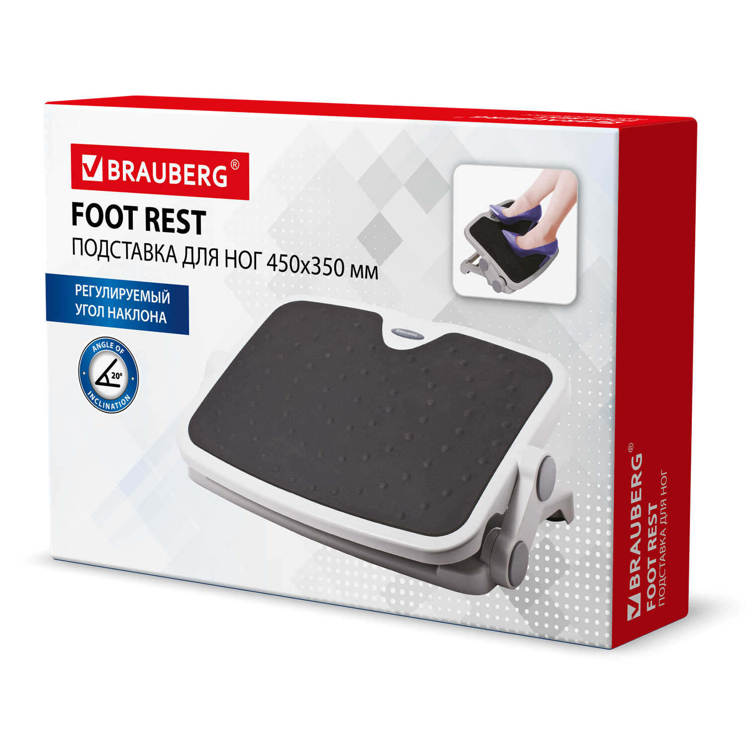 Подставка для ног BRAUBERG, офисная, 45х35 см, 2 положения, серая Код товара: 530363 4 906 ₽ Купить Производитель:BRAUBERG Подставка BRAUBERG позволяет снизить нагрузку на мышцы ног, возникающую при длительной работе сидя. Представляет собой устойчивую и прочную пластиковую конструкцию с размером платформы 45х35 см. Габаритные размеры товара – 50х36 см. Подставка имеет регулируемый угол наклона от 0° до 20°. Основание подставки снабжено покрытием, препятствующим скольжению.Производство: Тайвань (Китай)Длина: 36 смШирина: 50 смВысота: 12 смВарианты регулировки: угол наклона (0-20°)Количество платформ: 1 шт.Наличие фиксатора: даПротивоскользящее основание: даФактура платформы: рифленаяСерия: Подставка для ног BRAUBERGМатериал: пластикЦвет: черно-серыйТип упаковки: фирменная картонная коробкаВес: 3,24 кгРазмер упаковки: 10 × 53.4 × 36.4 смОбъём: 0.0233 м3Промежуточная упаковка: 4 штТранспортная упаковка: 4 штШтрих-код: 4606224050140 Сертификат-1.jpg Сертификат-2.jpg