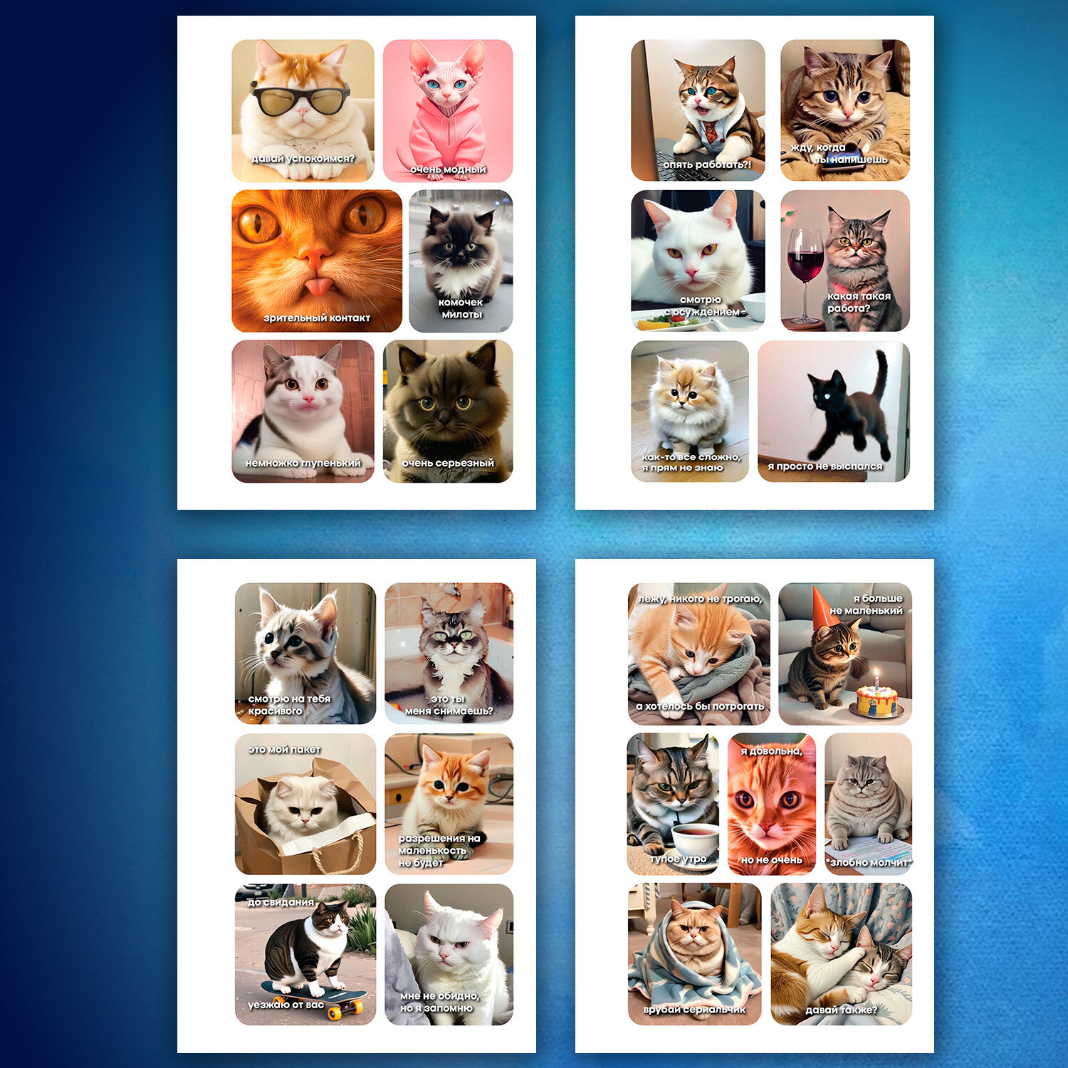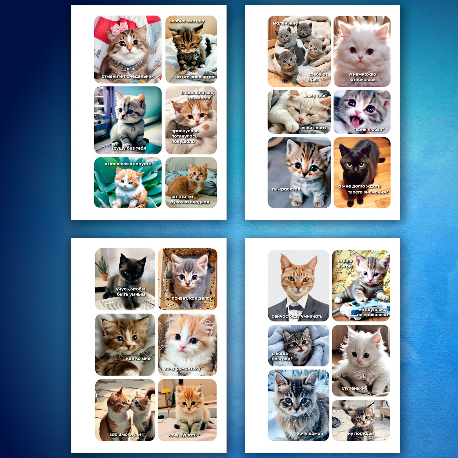 Стикербук ПРОСТО НАКЛЕЙ А6, 16 листов, 96 цветных стикеров, на гребне, BRAUBERG, "Коты мемы" Код товара: 666050 310,75 ₽ Купить Производитель:BRAUBERG Оригинальный блокнот с цветными наклейками (стикерами). На наклейках изображены милые и смешные котики. Наклейки можно использовать в различных целях для творчества: под чехол, на телефон, для скрапбукинга или на тетради. Блокнот формата А6 содержит 16 листов с цветными наклейками (стикерами). Листы скреплены с помощью евроспирали. Наклейки легко отделяются от основы и легко клеятся на любую поверхность. Наклейки никого не оставят равнодушными и принесут радость не только детям, но и взрослым.Производство: КитайФормат: А6Количество листов: 16С наклейками: даОбложка: мелованный картонПлотность обложки: 230 г/м2Внутренний блок: самоклеящаяся бумагаСерия: СтикербукСюжет: Милые котикиПлотность внутренного блока: 90 г/м2Тип скрепления: евроспиральИндивидуальная упаковка: даВес: 45 грРазмер упаковки: 0.3 × 10.5 × 14.8 смОбъём: 0.0001 м3Промежуточная упаковка: 60 штТранспортная упаковка: 60 штШтрих-код: 4606224481449 Сертификат-1.jpg Сертификат-2.jpg