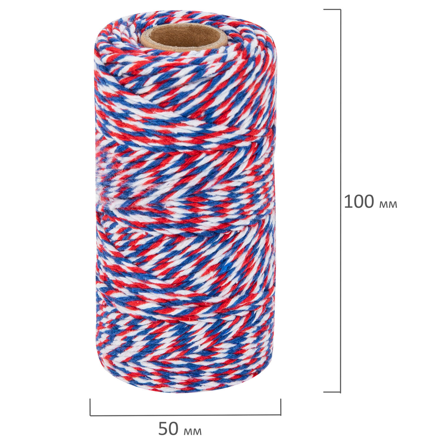Нить хлопчатобумажная для прошивки документов, ТРИКОЛОР, диаметр 1,6 мм, длина 120 м, BRAUBERG Код товара: 700364 140,17 ₽ Купить Производитель:BRAUBERG Хлопчатобумажная нить BRAUBERG широко применяется в рукоделии, декорировании, плетении, для упаковки и обвязки товаров, почтовых посылок. Отлично подходит для опечатывания и прошивки документов в банках, офисах, нотариальных конторах. Изготовлена из отборного хлопкового волокна, скрученного в тонкие пряди. Представляет собой нить диаметром 1,6 мм, скрученную и намотанную в бобину. Средний вес бобин составляет 0,096 кг при намотке 120 метров. Хлопчатобумажная нить обладает высокой прочностью, мягкостью, легко вяжется в узлы, не накапливает статическое электричество, не боится высоких температур и холода. Широко применяется в рукоделии и в качестве элементов декора, для бытовых и хозяйственных нужд, упаковки и обвязки товаров, почтовых посылок, подвязки растений и деревьев. Отлично подходит для декорирования корзинок, вазочек, шкатулок, плетения сумок, ковриков, украшений. Также активно применяется для прошивки документов в делопроизводстве. Благодаря проверенным качествам является незаменимым помощником в каждом доме и дачном хозяйстве. Экологически безопасна.Производство: КитайТип: нить прошивнаяМатериал: хлопокДлина намотки: 120 мРазрывная нагрузка: 10 кгсЦвет: российский флагДиаметр нити/Ширина ленты: 1.6 ммКоличество в комплекте: 1 шт.Вес бухты: 0.09 кгУпаковка: термоусадочная пленкаВес: 98 грРазмер упаковки: 5.1 × 10.1 × 5.1 смОбъём: 0.0003 м3Промежуточная упаковка: 12 штТранспортная упаковка: 240 штШтрих-код: 4606224474458 Файлы Сертификат-1.jpg Сертификат-2.jpg Сертификат-3.jpg Сертификат-4.jpg Сертификат-5.jpg
