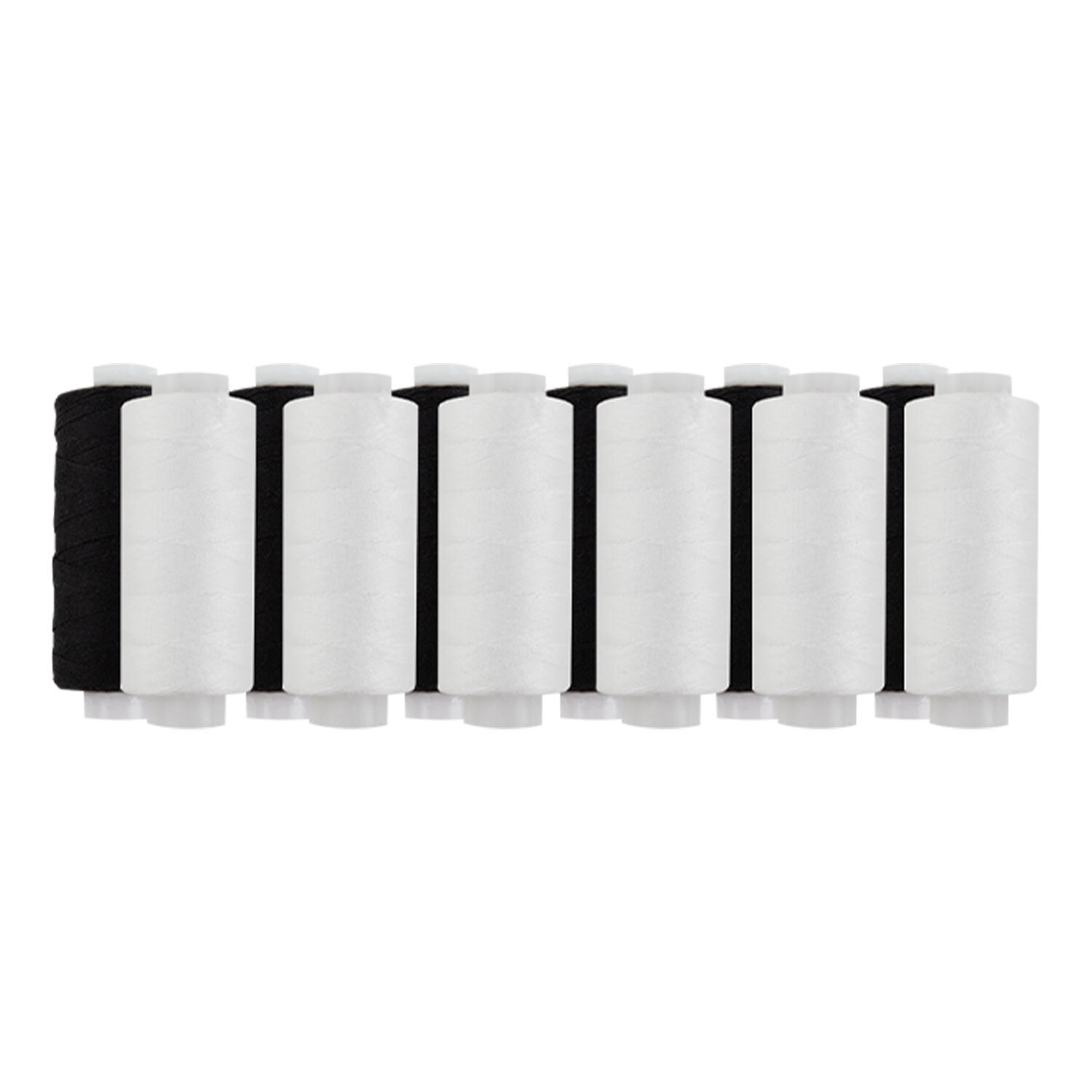 В набор входит 12 катушек белого и черного цветов в намотке 200 метров. Материал состоит из прочной армированной нити толщиной 45 ЛЛ.