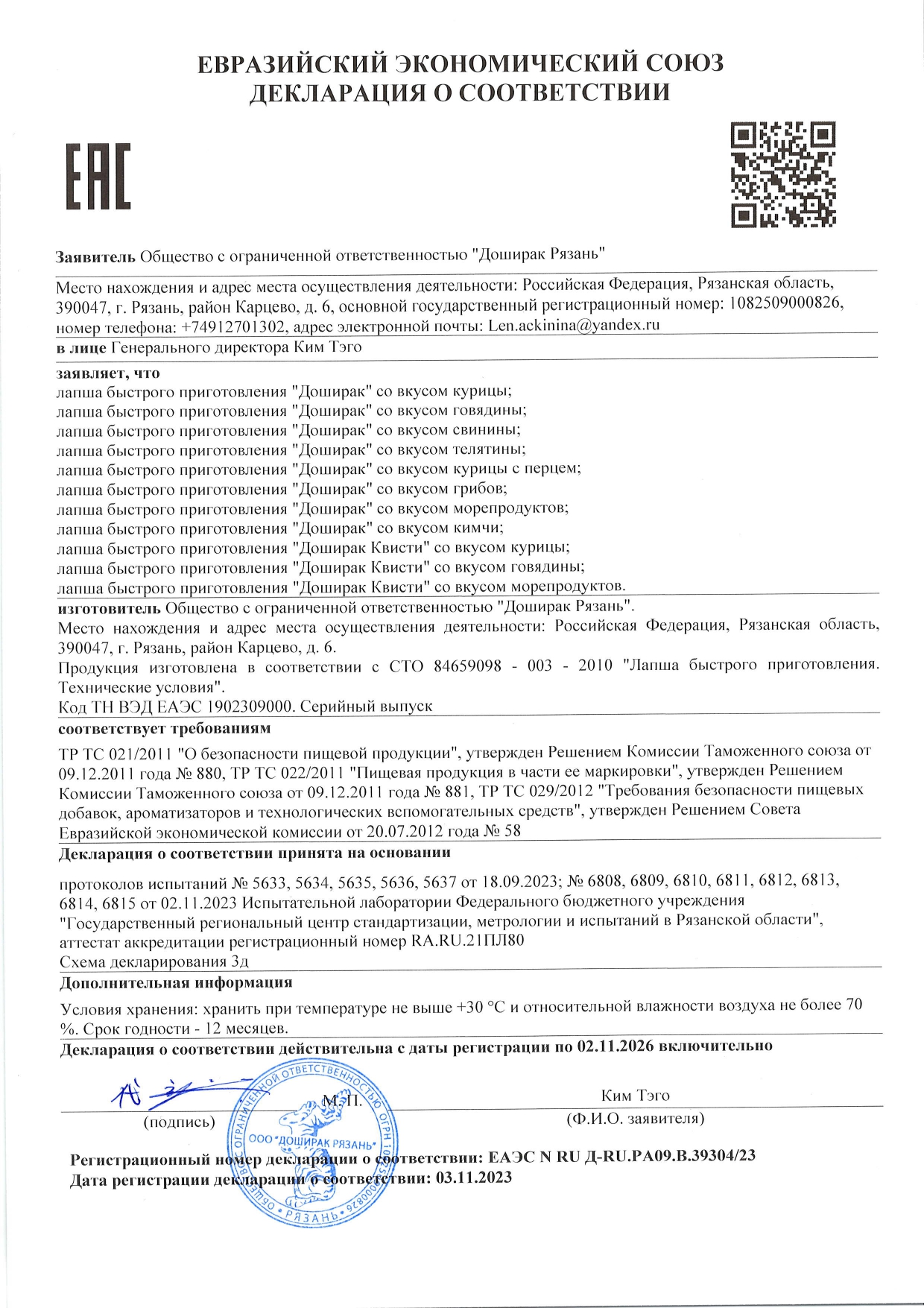 Способ приготовления: откройте крышку, добавьте по вкусу содержимое пакетиков с приправами и овощами. Залейте кипятком до внутренней линии упаковки. Закройте крышкой, подождите 3-4 минуты, хорошо перемешайте.