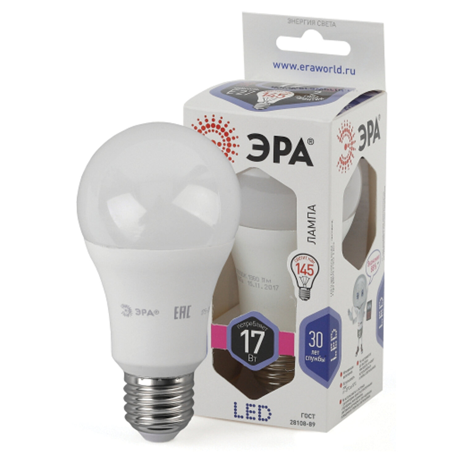 Лампа светодиодная ЭРА STD, 17 (145) Вт, цоколь E27, груша, холодный белый свет, 35000 ч., LED A60-17W-860-E27 Код товара: 457669 158,88 ₽ Купить Производитель:ЭРА Экономичная светодиодная лампа ЭРА серии "Стандарт" с отличными характеристиками для установки в люстры и все типы бытовых светильников: потолочные, настольные, бра. Бережёт электроэнергию, ярко светит, имеет долгий срок службы. Цветовая температура - холодный белый свет. Такое освещение бодрит, повышает работоспособность. Этот современный источник света создаёт комфортное и безопасное для глаз освещение.Производство: Китай Тип цоколя : E27Оттенок света: холодный белыйМощность: 17 ВтТип лампы: светодиоднаяТип колбы: грушаВид колбы: матоваяМинимальное рабочее напряжение: 170 ВМаксимальное рабочее напряжение: 265 ВМощность эквивалентной по световому потоку лампы накаливания: 145 ВтСветовой поток: 1360 ЛмЦветовая температура: 6000 КИндекс цветопередачи: 80 %Срок службы: 35000 ч.Высота (длина) лампы: 112 ммДиаметр лампы: 60 ммВес: 49 грРазмер упаковки: 5.8 × 15 × 5.6 смОбъём: 0.0005 м3Промежуточная упаковка: 10 штТранспортная упаковка: 100 штШтрих-код: 5056183711672 Файлы Сертификат-1.jpg Сертификат-2.jpg Сертификат-3.jpg Сертификат-4.jpg Сертификат-5.jpg