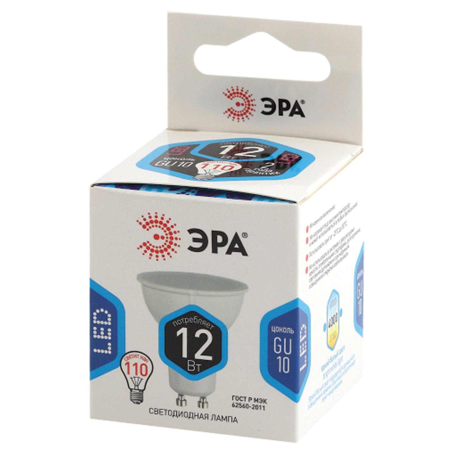 Лампа светодиодная ЭРА STD, 12 (110) Вт, цоколь GU10, софит, нейтральный белый свет, 35000 ч., LEDMR1612W840GU10 Код товара: 457689 149,4 ₽ Купить Производитель:ЭРА Эта светодиодная лампа ЭРА STD – современный, качественный и доступный источник света. Позволяет экономить до 90% электроэнергии по сравнению с лампой накаливания с аналогичным световым потоком. Светит ярким белым светом, который максимально приближен к естественному дневному. Идеальна для ежедневного применения в быту. Мгновенное включение. Ровное освещение. Можно использовать как с люстрами, так и со светильниками, в том числе настольными и бра.Производство: Китай Тип цоколя : GU10Оттенок света: нейтральный белыйМощность: 12 ВтТип лампы: светодиоднаяТип колбы: софитВид колбы: матоваяМинимальное рабочее напряжение: 170 ВМаксимальное рабочее напряжение: 265 ВМощность эквивалентной по световому потоку лампы накаливания: 110 ВтСветовой поток: 960 ЛмЦветовая температура: 4000 КИндекс цветопередачи: 80 %Срок службы: 35000 ч.Высота (длина) лампы: 55 ммДиаметр лампы: 50 ммВес: 29 грРазмер упаковки: 5.3 × 8.5 × 5.3 смОбъём: 0.0002 м3Промежуточная упаковка: 10 штТранспортная упаковка: 100 штШтрих-код: 5056306007576 Файлы Сертификат-1.jpg Сертификат-2.jpg Сертификат-3.jpg Сертификат-4.jpg Сертификат-5.jpg