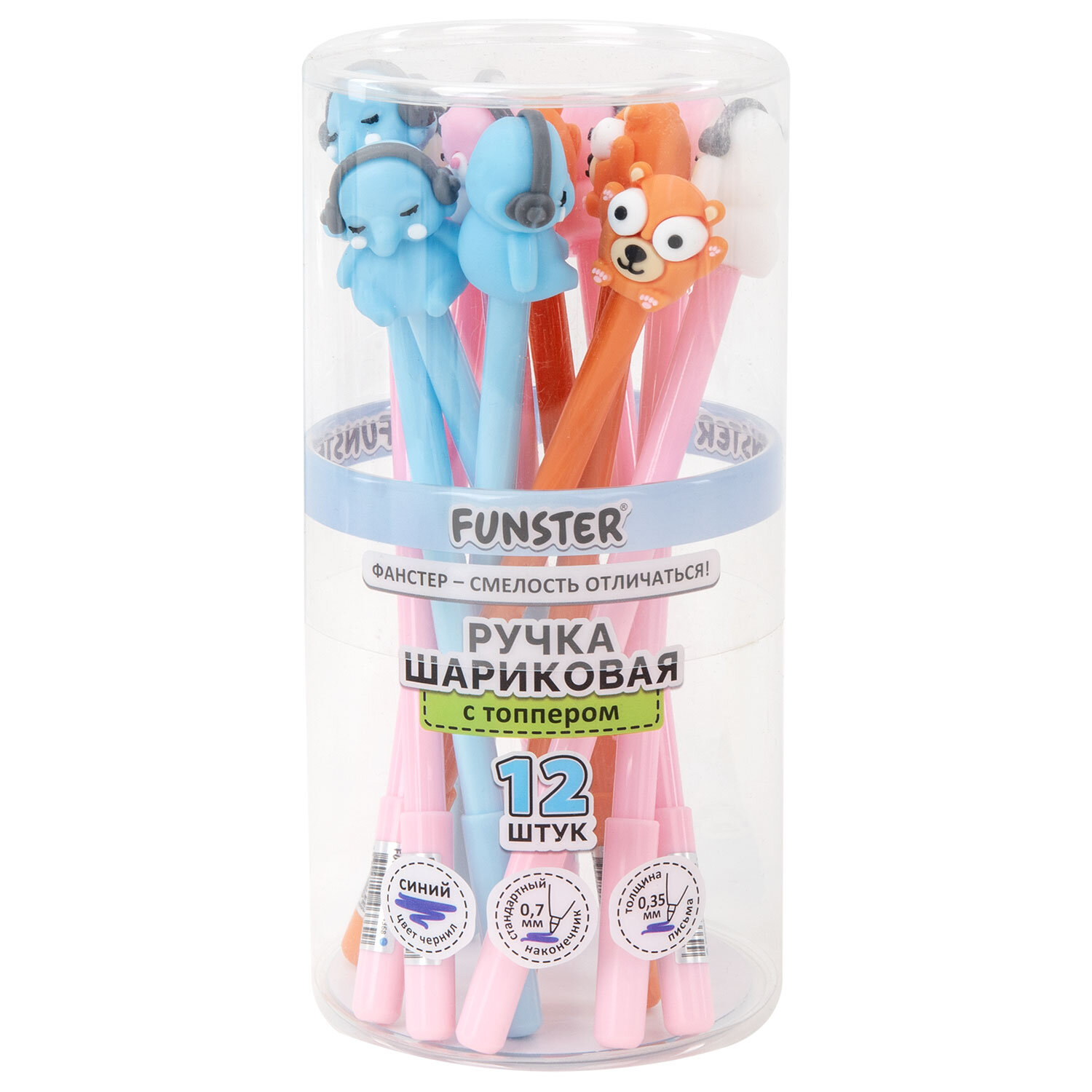 Ручка с топпером шариковая масляная FUNSTER (ФАНСТЕР) "TOPPER MIX", СИНЯЯ, корпус ассорти, пишущий узел 0,7 мм, линия письма 0,35 мм Код товара: 144368 39,14 ₽ Купить Производитель:FUNSTER Ручка с топпером шариковая FUNSTER "TOPPER MIX" – это не только надежный пишущий инструмент, но и стильный аксессуар. Масляные чернила обеспечат комфортный процесс письма, а очаровательный топпер с животными сделает его по-настоящему увлекательным. Ручка шариковая FUNSTER "TOPPER MIX" представлена в круглом корпусе. Конструкцию ручки дополняет милый топпер в форме животных. Благодаря чернилам на масляной основе ручка мягко и плавно скользит по бумаге, минимизируя нагрузку на руку. Стандартный наконечник диаметром 0,7 мм создает линию письма толщиной 0,35 мм. Синий цвет чернил универсален для любых целей, в том числе для ведения записей в школе и университете.Производство: КитайТип ручки: шариковаяЦвет чернил: синийТолщина линии письма: 0.35 ммДиаметр пишущего узла: 0.7 ммСерия: С ТОППЕРОМДлина сменного стержня: 130 ммФорма наконечника: стандартныйПокрытие корпуса: -Форма корпуса: с топперомЦвет корпуса: ассортиДизайн: ЖивотныеУпаковка: пластиковая тубаСрок годности: 60 месВес: 20 грРазмер упаковки: 2.1 × 17.9 × 2.6 смОбъём: 0.0002 м3Промежуточная упаковка: 12 штТранспортная упаковка: 432 штШтрих-код: 4606224466699 Файлы Сертификат-1.jpg Сертификат-2.jpg Сертификат-3.jpg Сертификат-4.jpg Сертификат-5.jpg Сертификат-6.jpg