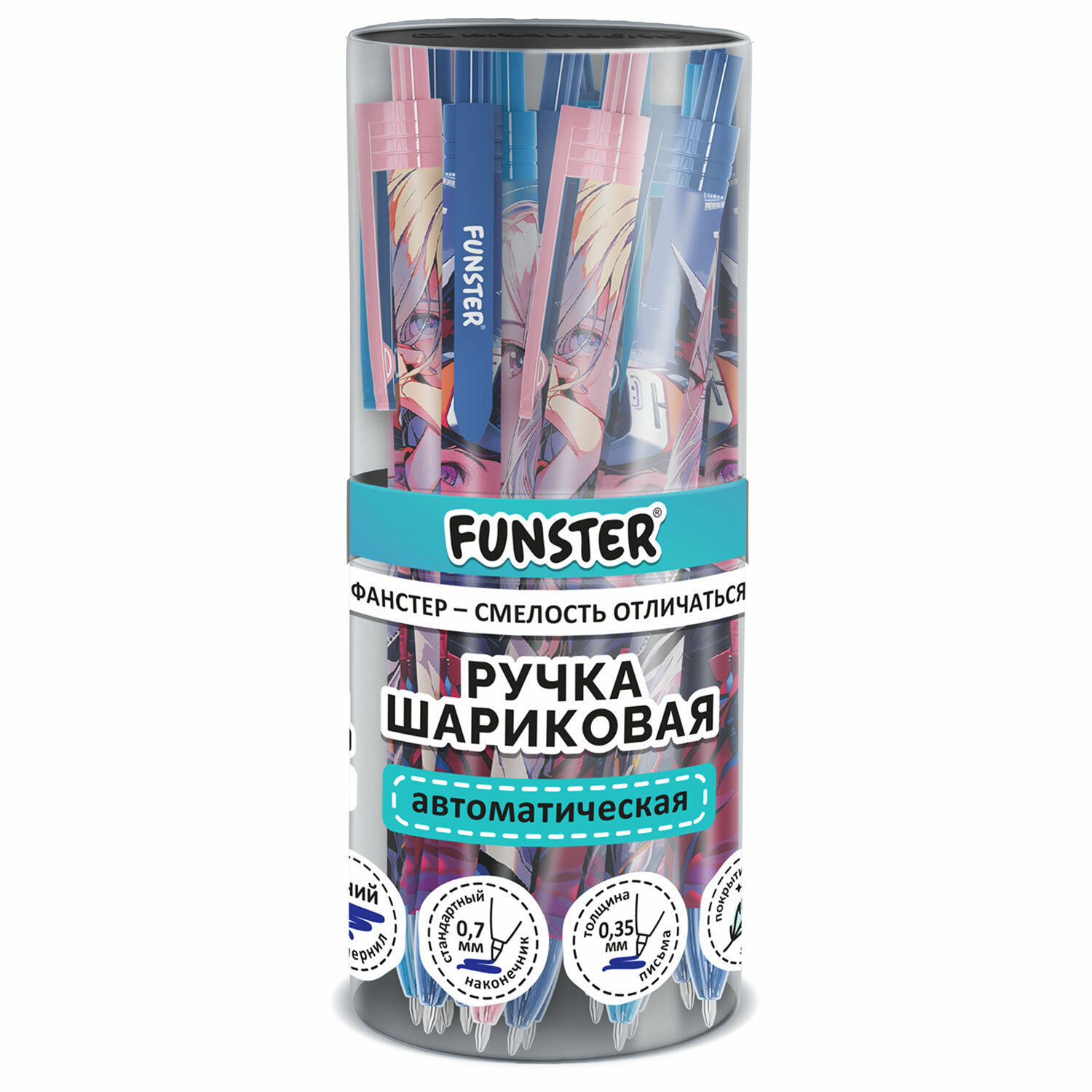 Ручка шариковая автоматическая с принтом FUNSTER "ANIME", корпус soft-touch, СИНЯЯ, пишущий узел 0,7 мм, линия письма 0,35 мм Код товара: 144406 46 ₽ Купить Производитель:FUNSTER Ручка шариковая автоматическая FUNSTER "ANIME" – яркий и надежный пишущий инструмент для ежедневного использования. Ручка перенесет важные заметки на бумагу, а красочный дизайн с персонажами аниме вдохновит на новые идеи. Ручка представлена в круглом корпусе, дополненном покрытием SOFT TOUCH, которое делает процесс письма комфортным и удобным и позволяет писать на протяжении долго времени без усталости. Стандартный наконечник диаметром 0,7 создает аккуратную линию письма толщиной 0,35 мм. Синий цвет чернил универсален для деловой и учебной деятельности.Производство: КитайЦвет чернил: синийТолщина линии письма: 0.35 ммДиаметр пишущего узла: 0.7 ммФорма наконечника: стандартныйДлина сменного стержня: 107 ммКоличество в комплекте: 1 шт.Цвет корпуса: AnimeДлина письма: 1000 мСерия: ANIMEДизайн: AnimeФорма корпуса: круглаяПокрытие корпуса: Soft-TouchУпаковка: пластиковая тубаСрок годности: 60 месВес: 7 грРазмер упаковки: 14.4 × 1 × 1.4 смОбъём: 0.0001 м3Промежуточная упаковка: 24 штТранспортная упаковка: 864 штШтрих-код: 4606224469034