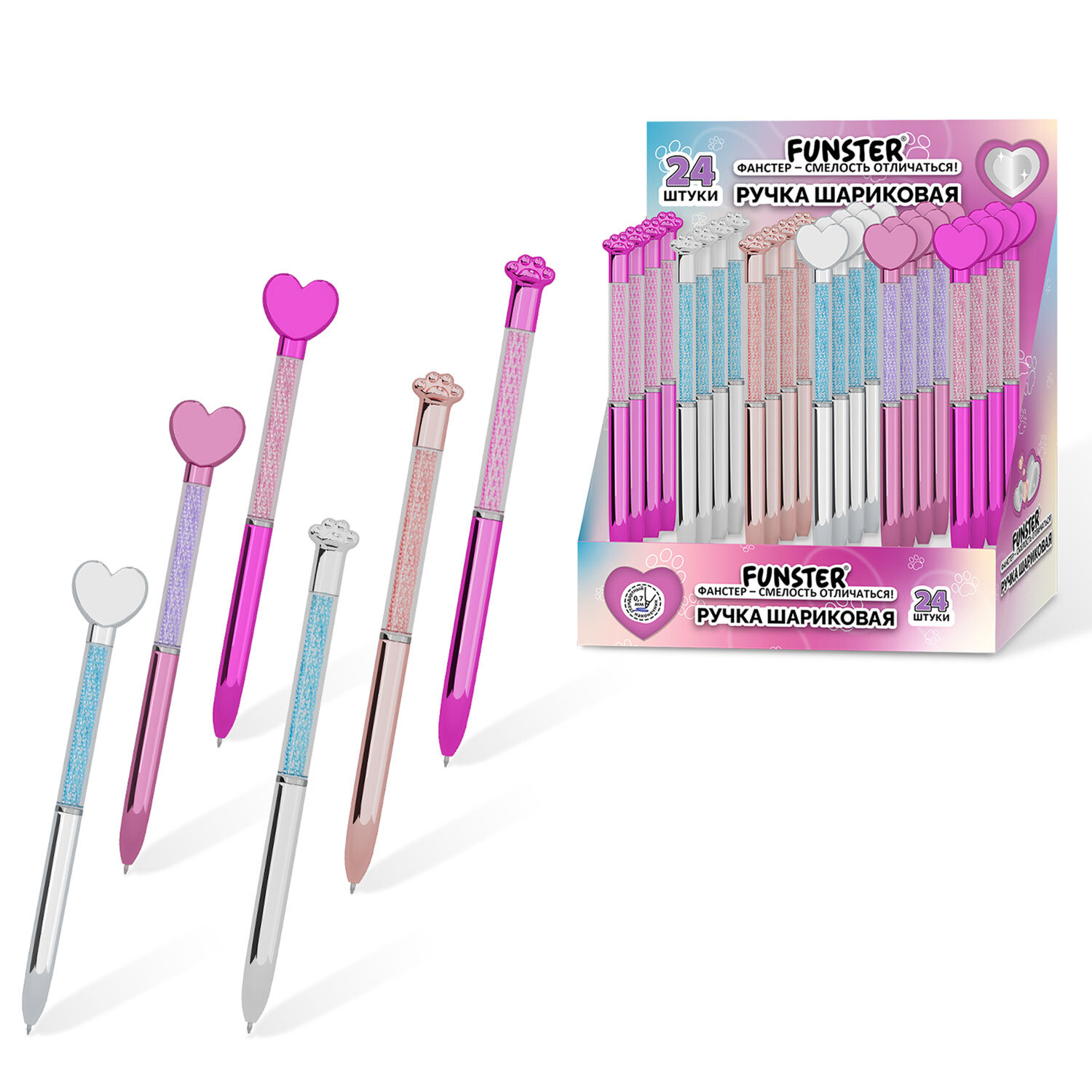 Ручка поворотная с топпером шариковая FUNSTER "SHINY HEART&PAW", СИНЯЯ, ассорти, пишущий узел 0,7 мм Код товара: 144519 82,96 ₽ Купить Производитель:FUNSTER Подарите яркое настроение и улыбки с поворотной шариковой ручкой FUNSTER "SHINY HEART&PAW"! Шариковая ручка FUNSTER "SHINY HEART&PAW" создана специально для юных творцов и любителей красоты: представлена в двух оригинальных дизайнах, которые точно привлекут внимание. Первый дизайн украшают элегантное сердце и три сияющих металлических цвета: фуксия, светло-голубой и светло-фиолетовый – идеально для девочек, любящих романтику и яркость. Второй вариант с милой лапкой и насыщенными металлическими оттенками: золотым, светло-голубым и фуксия – отлично подойдет для активных и веселых малышей. Уникальный прозрачный корпус внутри скрывает сверкающие кристаллики в цвет ручки, создавая эффект волшебства и праздничного настроения. Поворотный механизм делает использование еще более увлекательным – настоящая игра для маленьких исследователей! Благодаря качественному пишущему узлу 0,7 мм дети смогут легко создавать красивые, аккуратные записи и заряжаться позитивом в любой ситуации.Производство: КитайЦвет чернил: синийОдноразовая: даТолщина линии письма: 0.35 ммДиаметр пишущего узла: 0.7 ммФорма наконечника: стандартныйКоличество в комплекте: 1 шт.Эргономичная зона захвата: нетЦвет корпуса: ассортиДлина письма: 600 мСерия: SHINY HEART&PAWДизайн: ассортиФорма корпуса: круглаяПокрытие корпуса: -Для левшей: даУпаковка: картонный дисплейСрок годности: 60 месВес: 17 грРазмер упаковки: 1.3 × 15.5 × 2.2 смОбъём: 0.0002 м3Промежуточная упаковка: 24 штТранспортная упаковка: 576 штШтрих-код: 4606224509044 Сертификат-1.jpg Сертификат-2.jpg