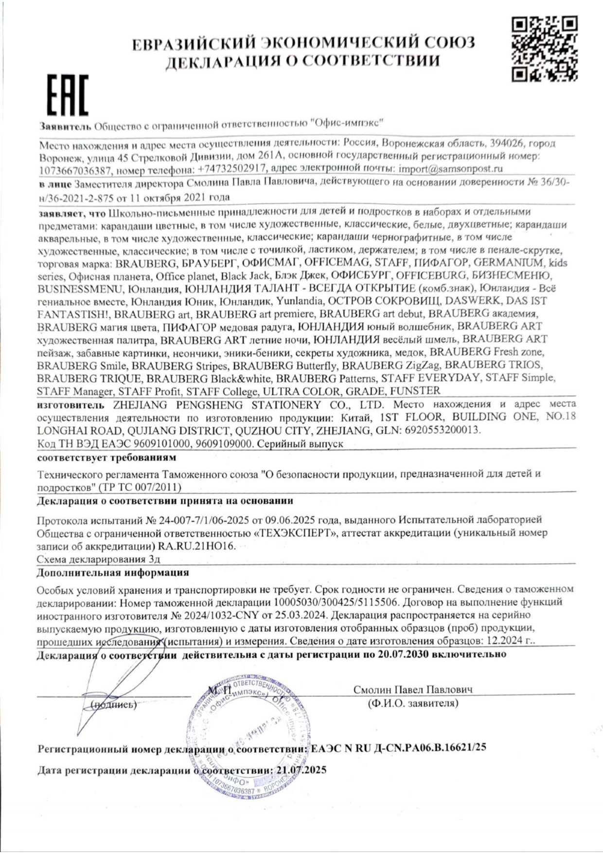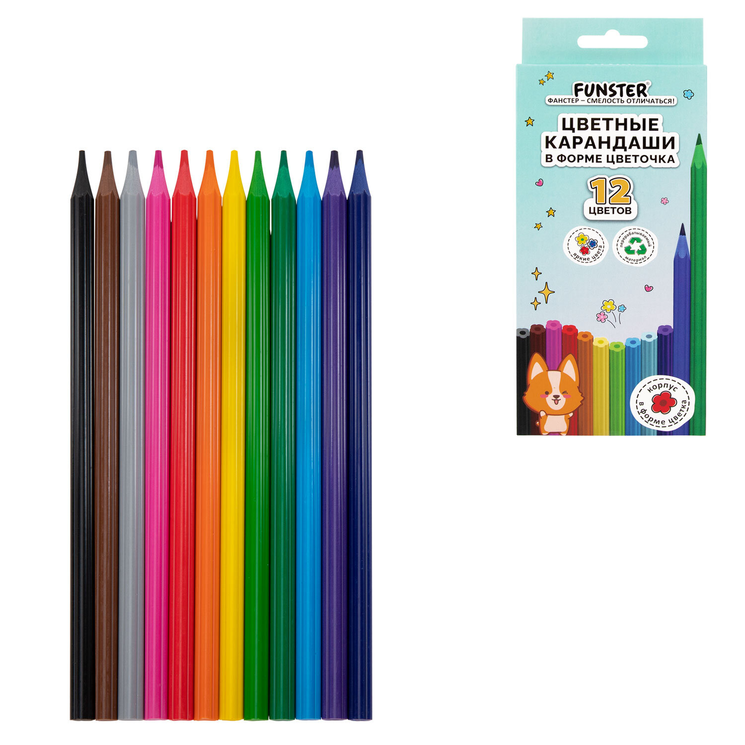 Карандаши цветные FUNSTER (ФАНСТЕР), 12 цветов, фигурный корпус в форме цветочка Код товара: 182069 164,75 ₽ Купить Производитель:FUNSTER Цветные карандаши высокого качества FUNSTER обеспечивают гладкое письмо благодаря мягкому грифелю. Особое качество красящего пигмента дарит насыщенные яркие цвета. Набор состоит из 12 цветов: черного, синего, голубого, салатового, зеленого, желтого, оранжевого, розового, красного, серого, фиолетового, коричневого. Форма корпуса в виде цветочка имеет привлекательный вид, обеспечивает эргономичность и удобство использования. Карандаши изготовлены из качественного цветного пластика. Качество исполнения гарантирует легкую заточку. Грифель обладает повышенной прочностью. Все карандаши заточены и поставляются в картонной упаковке с европодвесом.Производство: КитайКоличество цветов: 12 шт.Количество карандашей: 12 шт.Серия: FUNДизайн: ЦветочекФорма сечения корпуса: фигурнаяМатериал корпуса: пластикГрифель повышенной прочности: даЗаточка грифеля: даЛегко затачиваются: даДиаметр грифеля: 3 ммДлина карандаша: 175 ммУпаковка: картонная коробка c европодвесомВес: 104 грРазмер упаковки: 0.9 × 21 × 8.4 смОбъём: 0.0002 м3Промежуточная упаковка: 12 штТранспортная упаковка: 120 штШтрих-код: 4606224471204 Сертификат-1.jpg Сертификат-2.jpg Сертификат-3.jpg