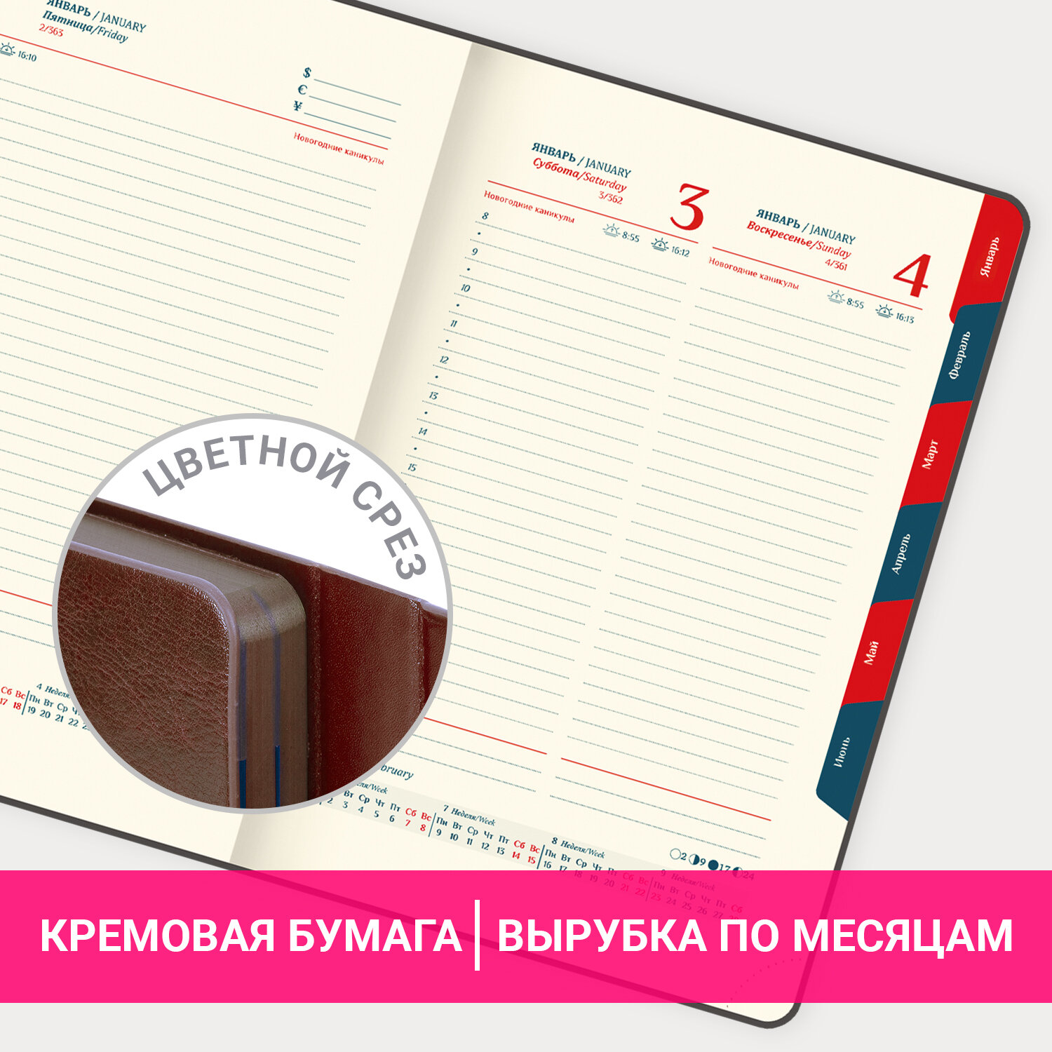 Ежедневник датированный 2026 А5 148х218 мм, GALANT "Magnetic", под кожу, клапан, коричневый Код товара: 117484 784,31 ₽ Купить Производитель:GALANT Датированный ежедневник "Magnetic" GALANT – надежный спутник делового и стильного человека. Внутренний блок включает 168 листов тонированной бумаги плотностью 70 г/м2. Каждая страничка имеет перфорированный угол. Благодаря стандартному формату А5 (148х218 мм) ежедневник удобно использовать как в офисе, так и на выездных деловых встречах. Интегральная обложка стилизована под гладкую кожу коричневого цвета, фиксируется магнитным клапаном, поэтому ежедневник не откроется в сумке или портфеле и страницы не помнутся. Подходит для горячего тиснения. Срез и форзац ежедневника окрашены в цвет обложки, что придает ему особый шарм. Дополнением является закладка-ляссе, с помощью которой при необходимости можно быстро открыть ежедневник на нужной странице, а также вырубка по месяцам. Ежедневник снабжен обширным справочным материалом. В конце есть 6 страниц для записей и заметок.Производство: КитайТип ежедневника: датированныйФормат: А5Обложка: под гладкую кожуВид обложки: твердаяКоличество листов: 168 шт.Особенности: вырубка блока, закладка-ляссе, перфорация уголков, скругленные углы, справочная информацияСерия: MagneticГод: 2026Тип застежки: магнитный клапанОсновной цвет обложки: коричневыйДополнительный цвет обложки: нетЦвет среза: коричневыйЦвет внутреннего блока: кремовыйПлотность внутреннего блока: 70 г/м2Высота строки для записи: 4 ммТип крепления: сшивкаПечать блока: 2 краскиПодходит для блинтового тиснения: даПодходит для тиснения фольгой: даПодходит для заливки полимерной смолой: даПодходит для УФ-печати: даПодходит для тампопечати: даПодходит для лазерной гравировки: даДлина: 218 ммШирина: 148 ммТолщина: 20 ммВес: 487 грРазмер упаковки: 2.5 × 21.5 × 15.1 смОбъём: 0.001 м3Промежуточная упаковка: 15 штТранспортная упаковка: 15 штШтрих-код: 4606224489117 Файлы Сертификат-1.jpg Сертификат-2.jpg Сертификат-3.jpg Сертификат-4.jpg Сертификат-5.jpg Сертификат-6.jpg Сертификат-7.jpg Сертификат-8.jpg Сертификат-9.jpg Сертификат-10.jpg Сертификат-11.jpg Сертификат-12.jpg Сертификат-13.jpg Сертификат-14.jpg Сертификат-15.jpg Сертификат-16.jpg Сертификат-17.jpg Сертификат-18.jpg Сертификат-19.jpg Сертификат-20.jpg Сертификат-21.jpg Сертификат-22.jpg Сертификат-23.jpg Сертификат-24.jpg Сертификат-25.jpg Сертификат-26.jpg