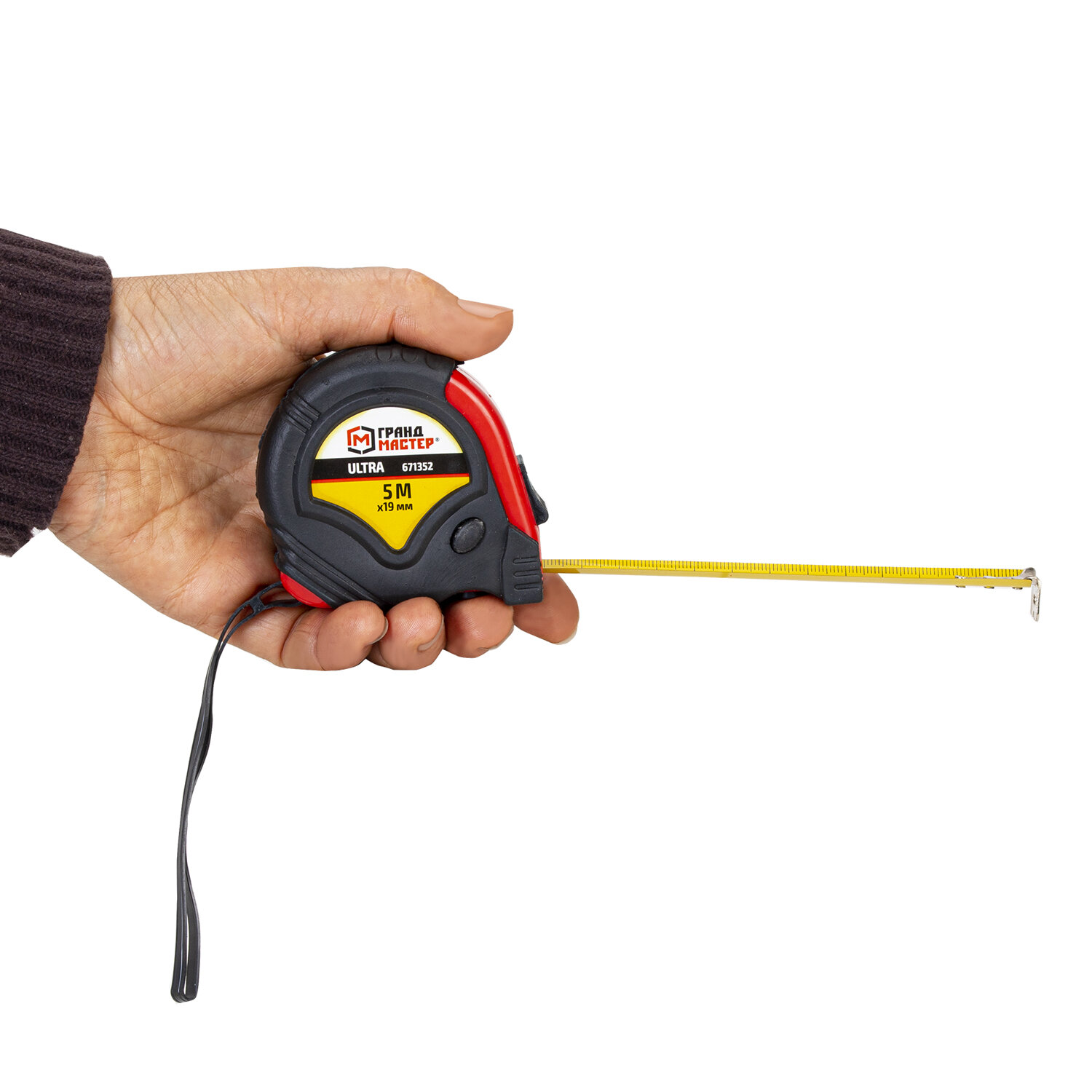 Рулетка измерительная 5 м х 19 мм, обрезиненный корпус, 3 фиксатора, ГРАНДМАСТЕР Ultra Код товара: 671352 118,24 ₽ Купить Производитель:ГРАНДМАСТЕР Рулетка ГРАНДМАСТЕР применяется для измерения размеров поверхностей и расстояний. Благодаря эргономичному дизайну и высокому классу точности измерений рулетка станет незаменимым помощником в быту и профессиональной деятельности. Рулетка ГРАНДМАСТЕР проста в обращении, обладает повышенной износостойкостью и долгим сроком службы. Корпус рулетки из прочного пластика с прорезиненным покрытием обеспечит защиту инструмента от повреждений при случайном падении. Измерительная лента с метрической шкалой II класса точности изготовлена из прочной марганцевой стали, устойчивой к заломам, и оснащена зацепом для удобства измерений. Рулетка оснащена ремешком для ношения на запястье, а также металлической клипсой для крепления на поясе. Эргономичный дизайн с тремя фиксаторами измерительной ленты позволит использовать рулетку даже одной рукой. Материал корпуса: ABS-пластик с покрытием. Цвет корпуса: красный с чёрным покрытием. Материал измерительной ленты: 45 марганцевая сталь. Размеры измерительной ленты: длина 5 метров, ширина 19 миллиметров. Система измерения: метрическая. Цвет ленты: жёлтый. Фиксаторы: вертикальный, боковой, нижний. Упаковка: бумажная карта с европодвесом.Производство: КитайВид рулетки: строительныйШирина ленты: 19 ммДлина ленты: 5 мСерия: РулеткиМатериал ленты: марганцевая стальКоличество режимов фиксации: 3Цена деления: 1 ммКласс точности: 2Тип корпуса: закрытыйМатериал корпуса: пластикОбрезиненный корпус: даВес: 180 грРазмер упаковки: 3.8 × 14.6 × 9.8 смОбъём: 0.0005 м3Промежуточная упаковка: 12 штТранспортная упаковка: 120 штШтрих-код: 4606224470740 Файлы Сертификат-1.jpg Сертификат-2.jpg Сертификат-3.jpg Сертификат-4.jpg Сертификат-5.jpg