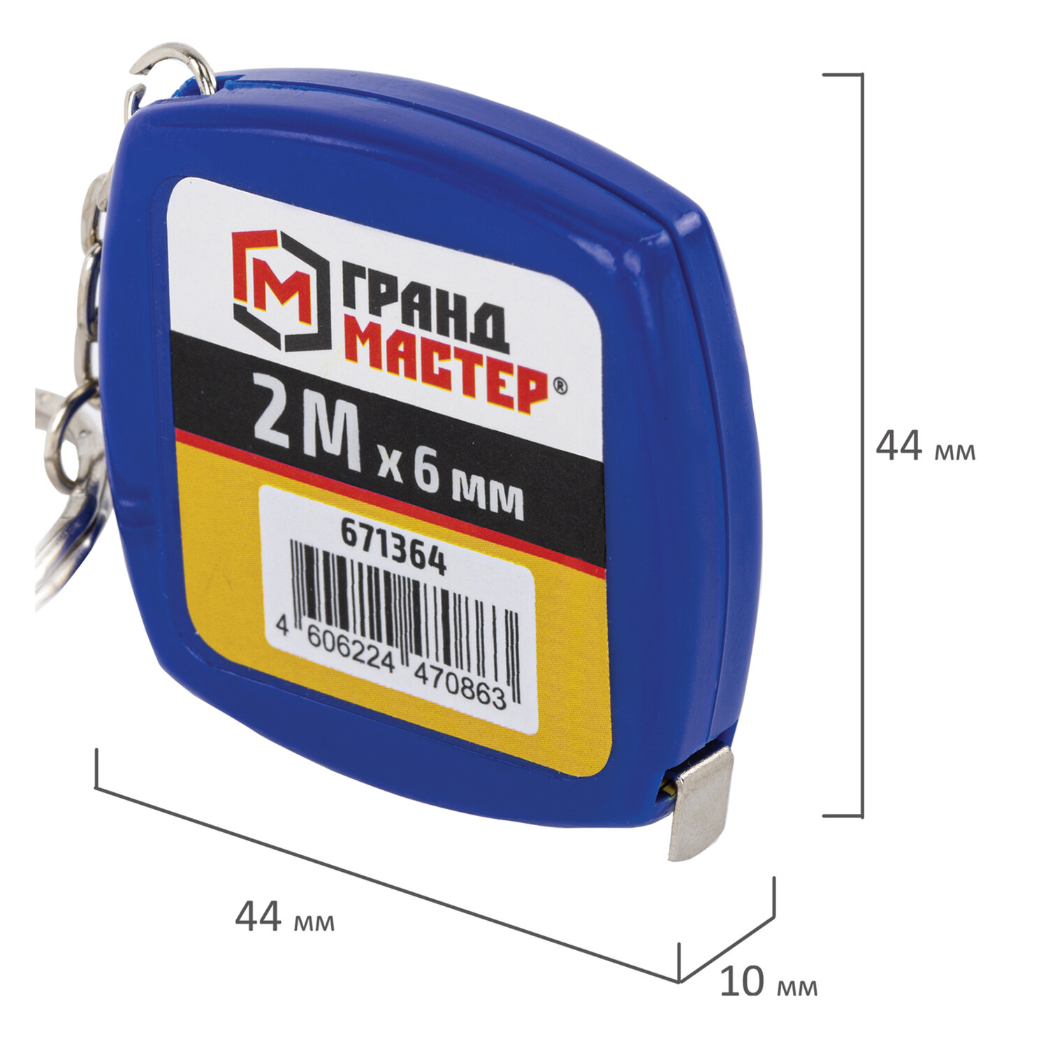 Рулетка-брелок 2 м х 6 мм, пластиковый корпус, ГРАНДМАСТЕР Код товара: 671364 63,36 ₽ Купить Производитель:ГРАНДМАСТЕР Рулетка ГРАНДМАСТЕР применяется для измерения размеров поверхностей и расстояний. Благодаря эргономичному дизайну и компактным размерам рулетка станет незаменимым помощником в быту и профессиональной деятельности. Рулетка ГРАНДМАСТЕР проста в обращении и обладает повышенной износостойкостью благодаря корпусу, изготовленному из прочного ABS-пластика. Измерительная лента с метрической шкалой II класса точности изготовлена из прочной марганцевой стали, устойчивой к заломам, и оснащена зацепом для удобства измерений. Рулетка оснащена металлическим кольцом для крепления на связку с ключами, сумку или рюкзак. Материал корпуса: ABS-пластик. Цвет корпуса: синий. Материал измерительной ленты: 45 марганцевая сталь. Размеры измерительной ленты: длина 2 метра, ширина 6 миллиметров. Система измерения: метрическая. Цвет ленты: жёлтый.Производство: КитайВид рулетки: строительныйШирина ленты: 6 ммДлина ленты: 2 мСерия: РулеткиМатериал ленты: марганцевая стальКоличество режимов фиксации: 0Цена деления: 1 ммКласс точности: 2Тип корпуса: закрытыйМатериал корпуса: пластикВес: 31 грРазмер упаковки: 1.5 × 4.5 × 4.5 смПромежуточная упаковка: 50 штТранспортная упаковка: 500 штШтрих-код: 4606224470863 Файлы Сертификат-1.jpg Сертификат-2.jpg Сертификат-3.jpg Сертификат-4.jpg Сертификат-5.jpg