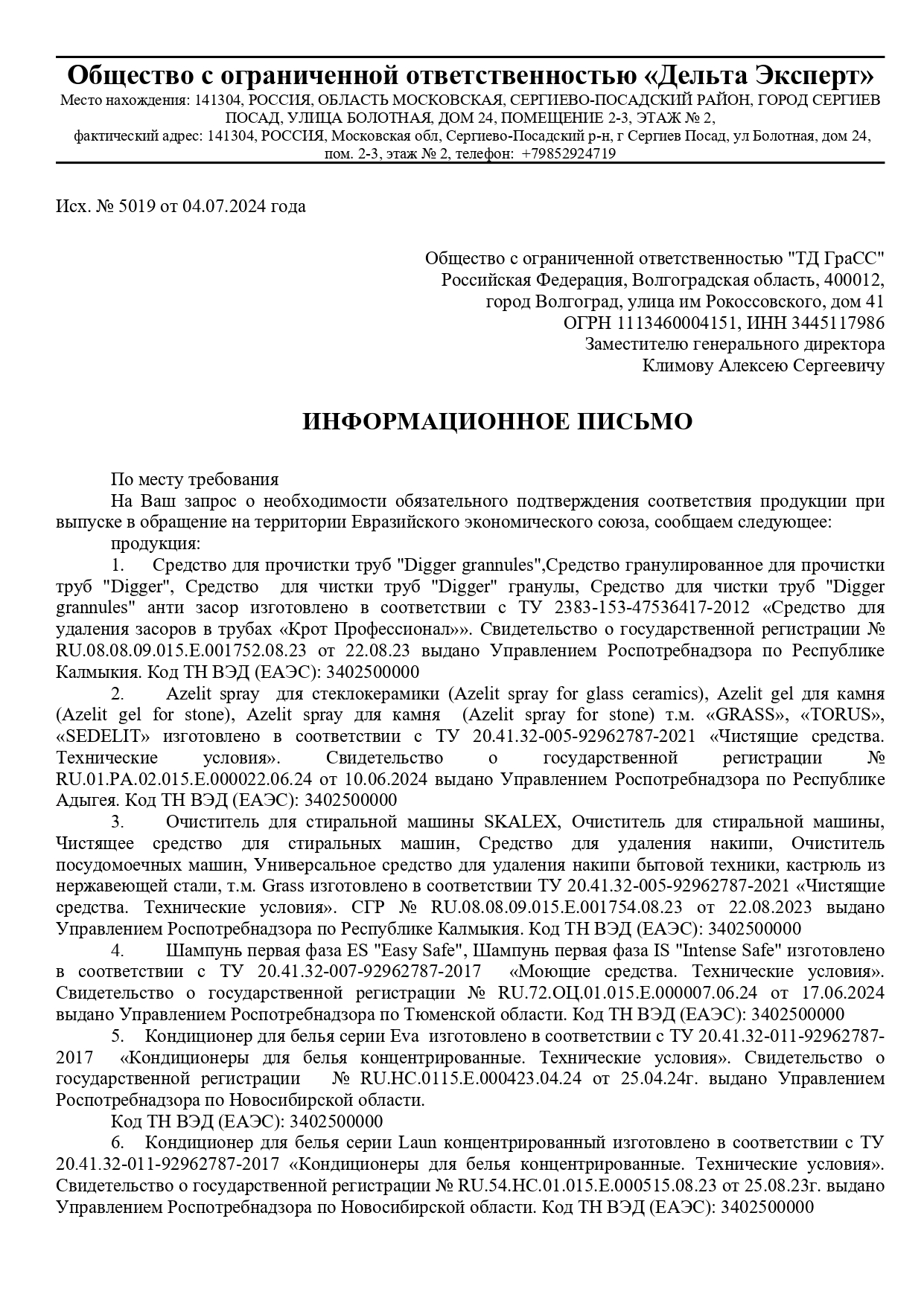 Средство для мытья посуды в посудомоечных машинах/пароконвектоматах 5 л GRASS RESTO PRO RS-3, низкопенное Код товара: 702613 2 348,38 ₽ Купить Производитель:GRASS Концентрированное, низкопенное моющее средство для посудомоечных, таромоечных машин и пароконвектоматов. Безопасен для мытья любой посуды и столовых приборов из стекла, пластика, фарфора, твердых металлов. Полностью растворяется в процессе мойки, легко смывается, не оставляя разводов. Предназначен для использования в профессиональных посудомоечных машинах всех видов. Эффективно работает в воде любой жесткости. Только для профессионального применения. Ключевая особенность – дезинфицирующий и отбеливающий эффект. Состав: не менее 30% очищенная вода; более 15% но меньше 30% комплексообразователи; не менее 5% но меньше 15% гидроксид калия; менее 5% гидроксид натрия; неионогенные ПАВ. Способ применения: настройка подачи через специальные дозирующие системы из показаний датчика электропроводности или по времени, из расчёта концентрации 0,1–0,3%. Оптимальная концентрация зависит от типа и конфигурации посудомоечной машины. Наилучший результат мойки достигается в паре с ополаскивателем Resto Pro RS-4. Использовать строго по назначению! Средство используется через дозирующую станцию, устанавливаемую и обслуживаемую сервисной службой компании GRASS или представителем в регионе. Меры предосторожности: беречь от детей! Хранить вдали от пищевых продуктов. При попадании в глаза немедленно промыть водой. При чувствительной коже и повреждениях кожи избегать длительного контакта со средством.Производство: РоссияТип товара: средство для мытья посуды в ПММФорма выпуска: жидкостьОбъём: 5000 млРазрешено для детских учреждений: даОбласть применения: государственные учреждения, пищевая промышленность, предприятия общественного питания, производственные компании, санаторно-курортные учреждения, сфера услуг, торговые учреждения, учреждения образования (школьные, дошкольные, средние, высшие)pH: 13Тип упаковки: канистраСрок годности: 24 месВес: 6,4 кгРазмер упаковки: 29.4 × 17.6 × 12.9 смОбъём: 0.0077 м3Промежуточная упаковка: 4 штТранспортная упаковка: 4 штШтрих-код: 4670113612726 Сертификат-1.jpg Сертификат-2.jpg