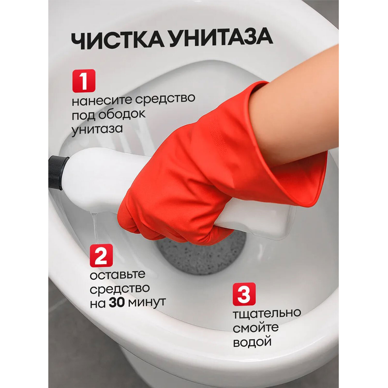 • Унитаз: нанесите под ободок унитаза и оставьте на 30 минут, затем смойте водой.